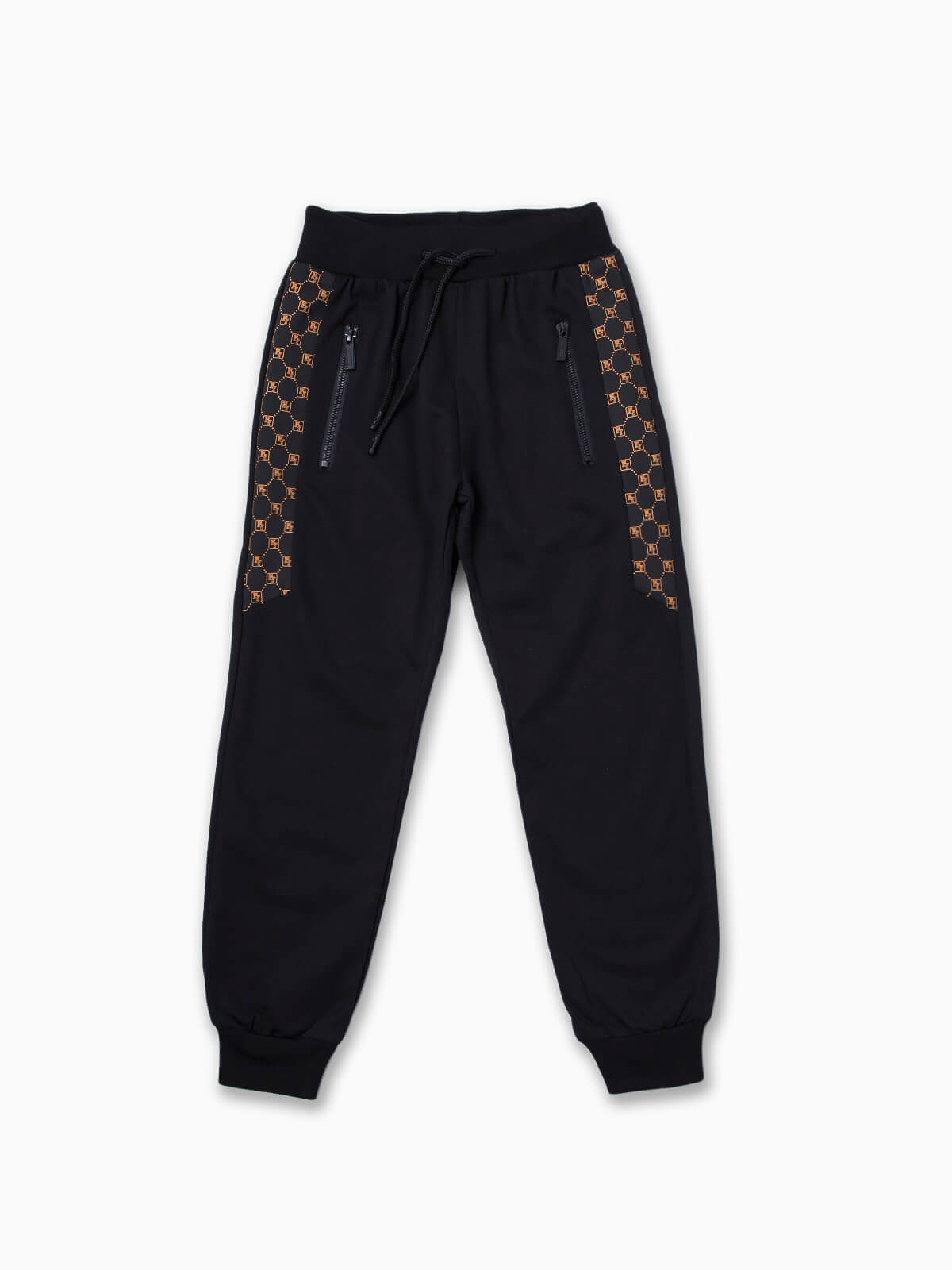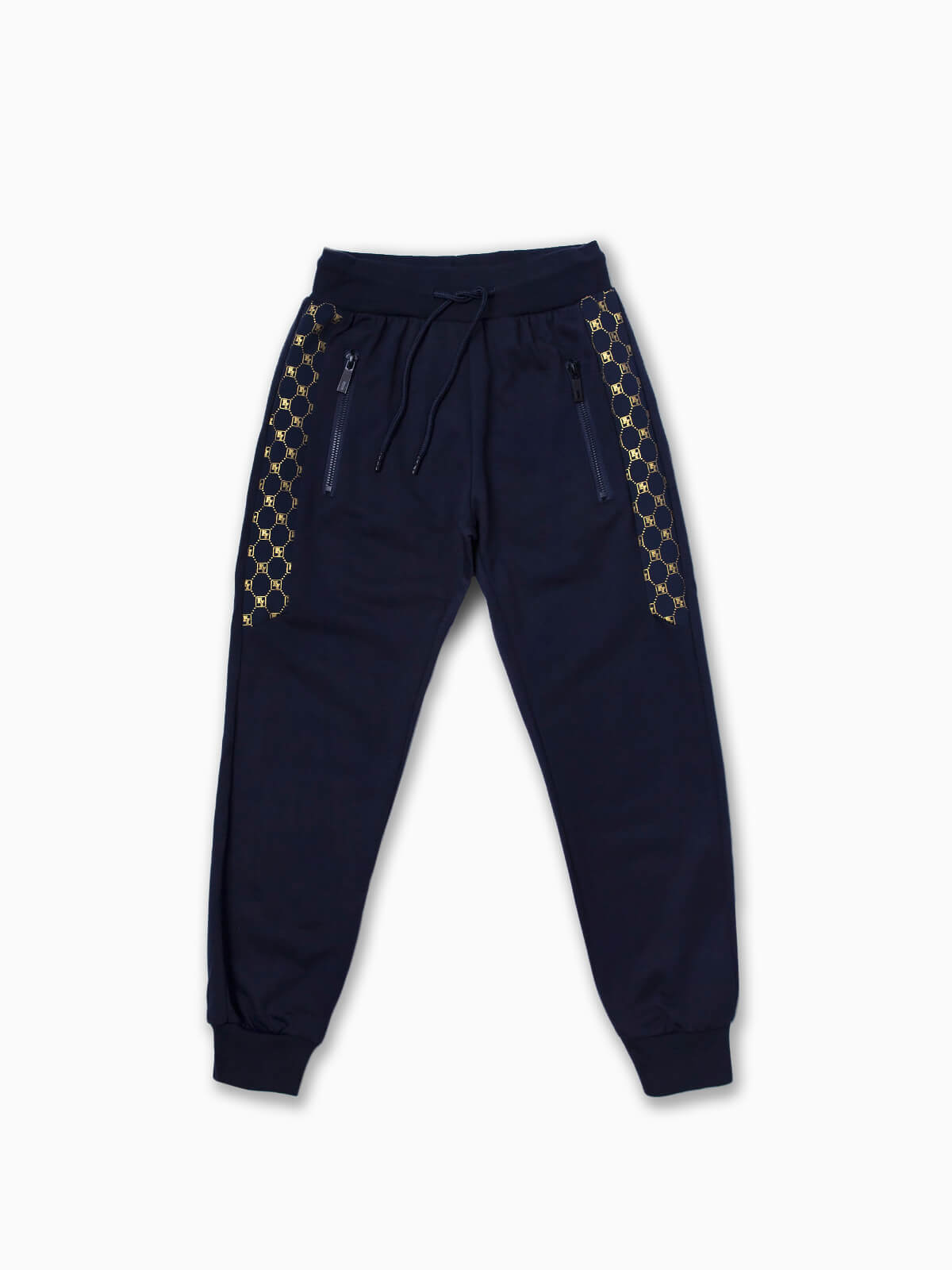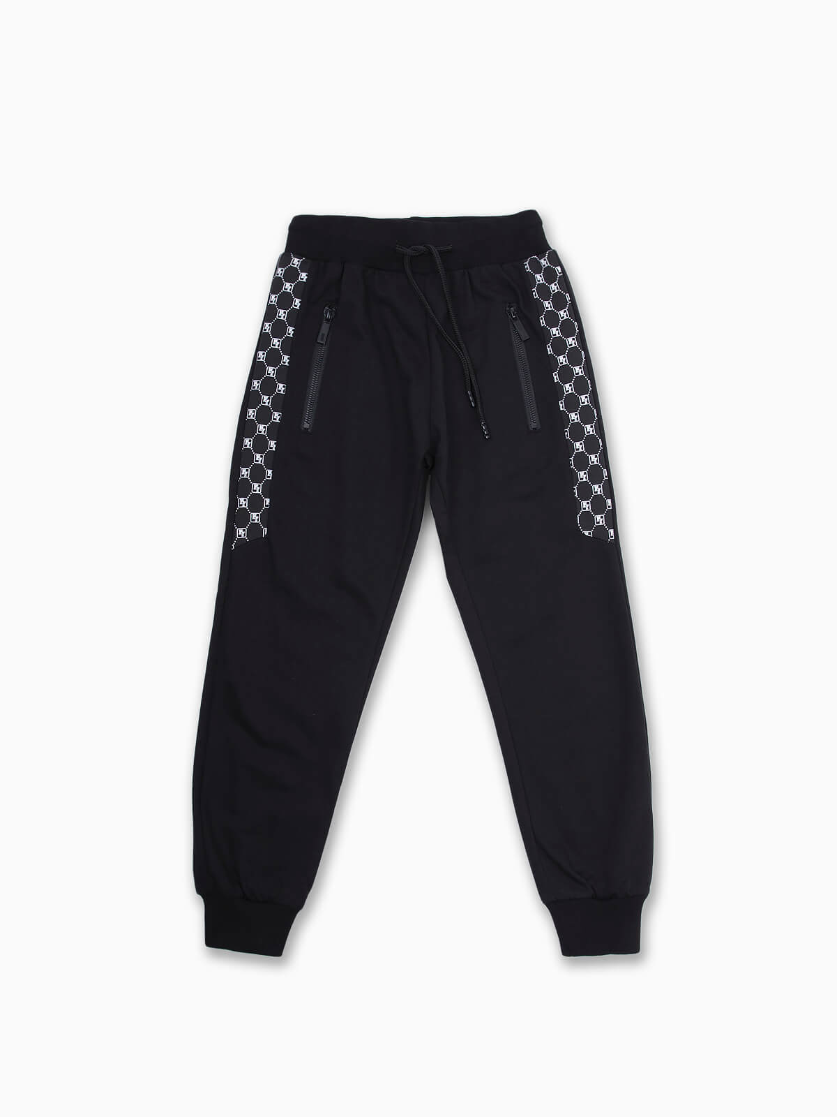 Calças jogger com bandas laterais estampadas para menino. Calças desportivas com cordão na cintura para ajustar. 2 bolsos com zíper. Acabamentos elásticos.