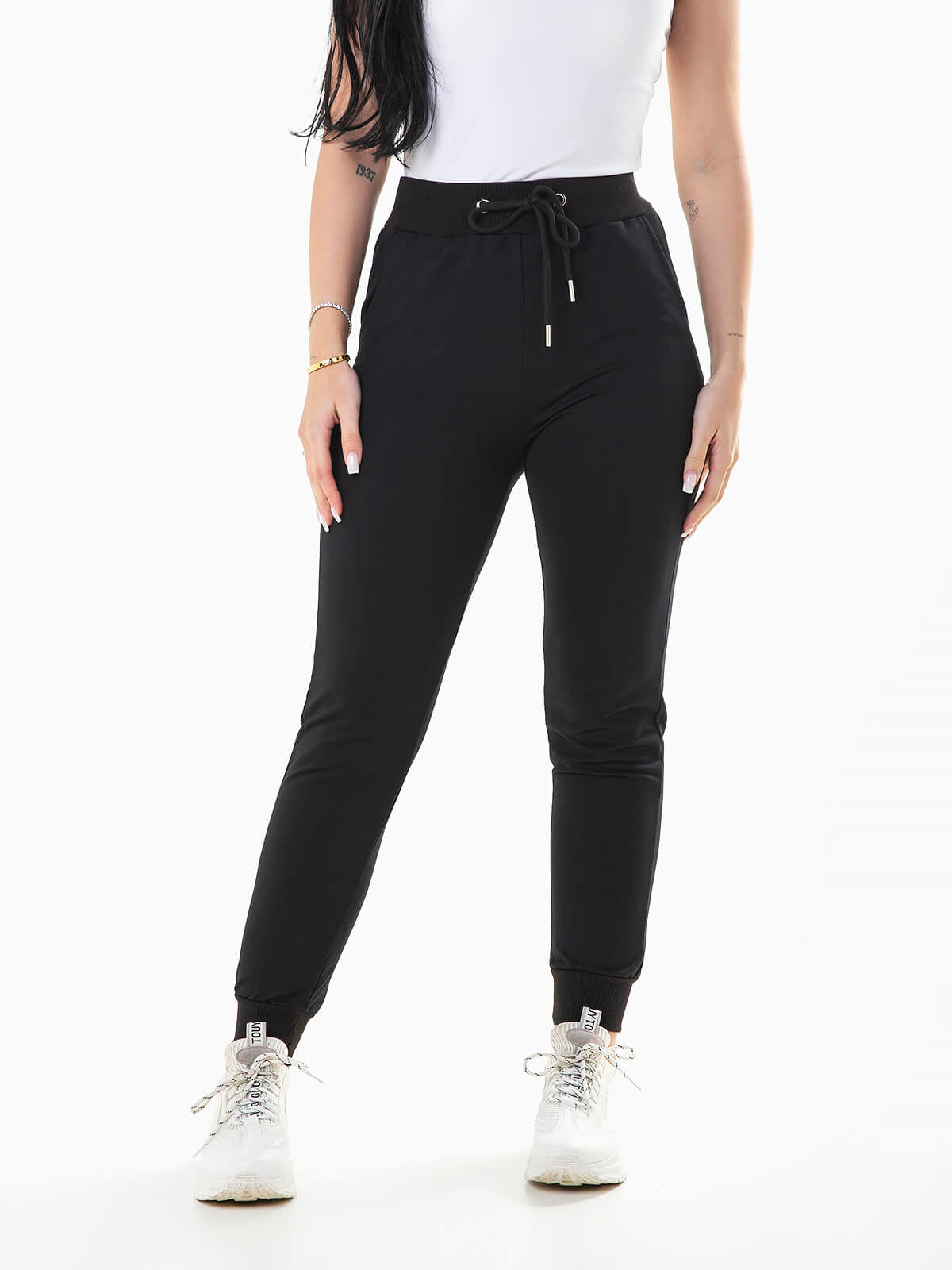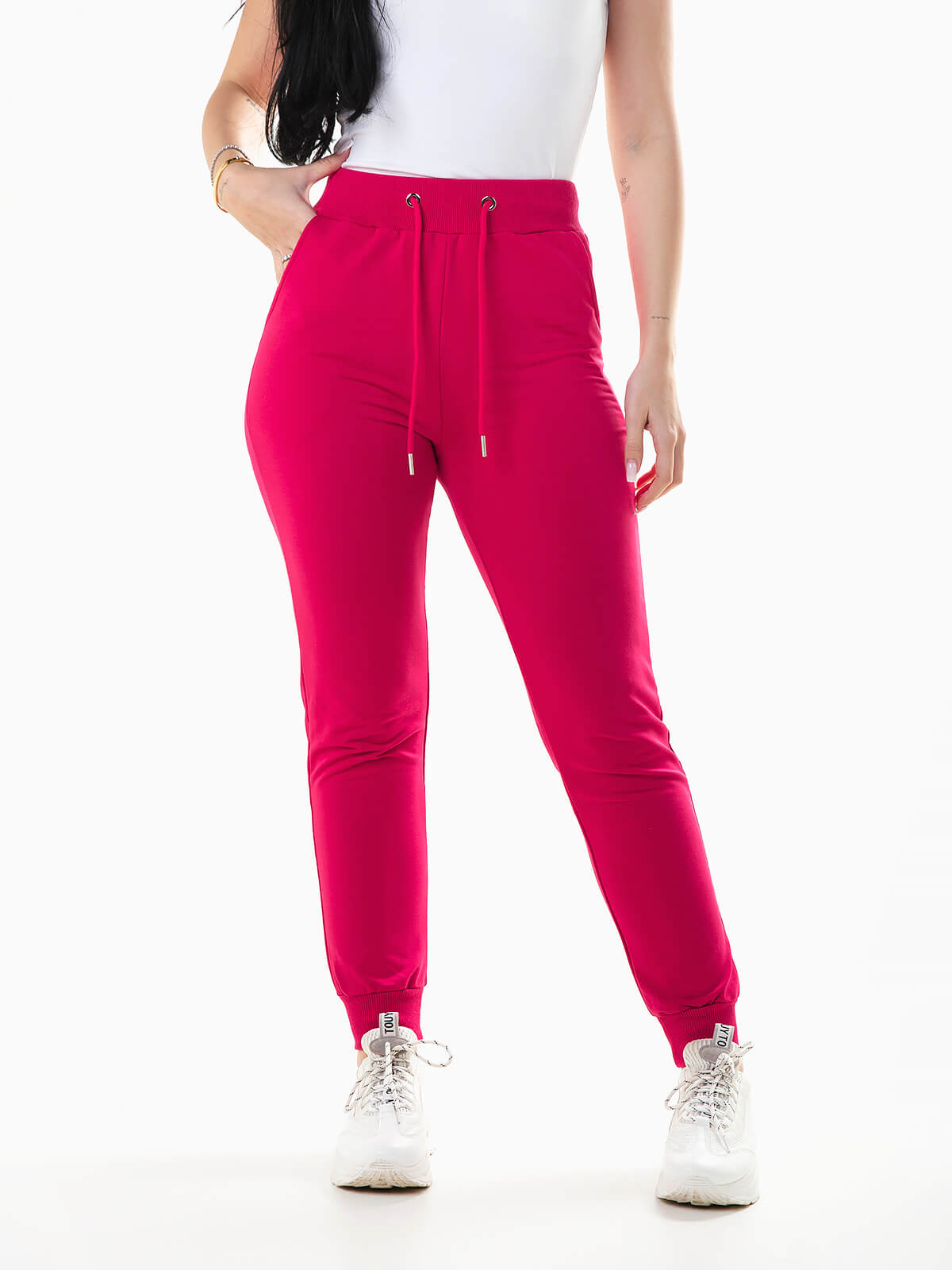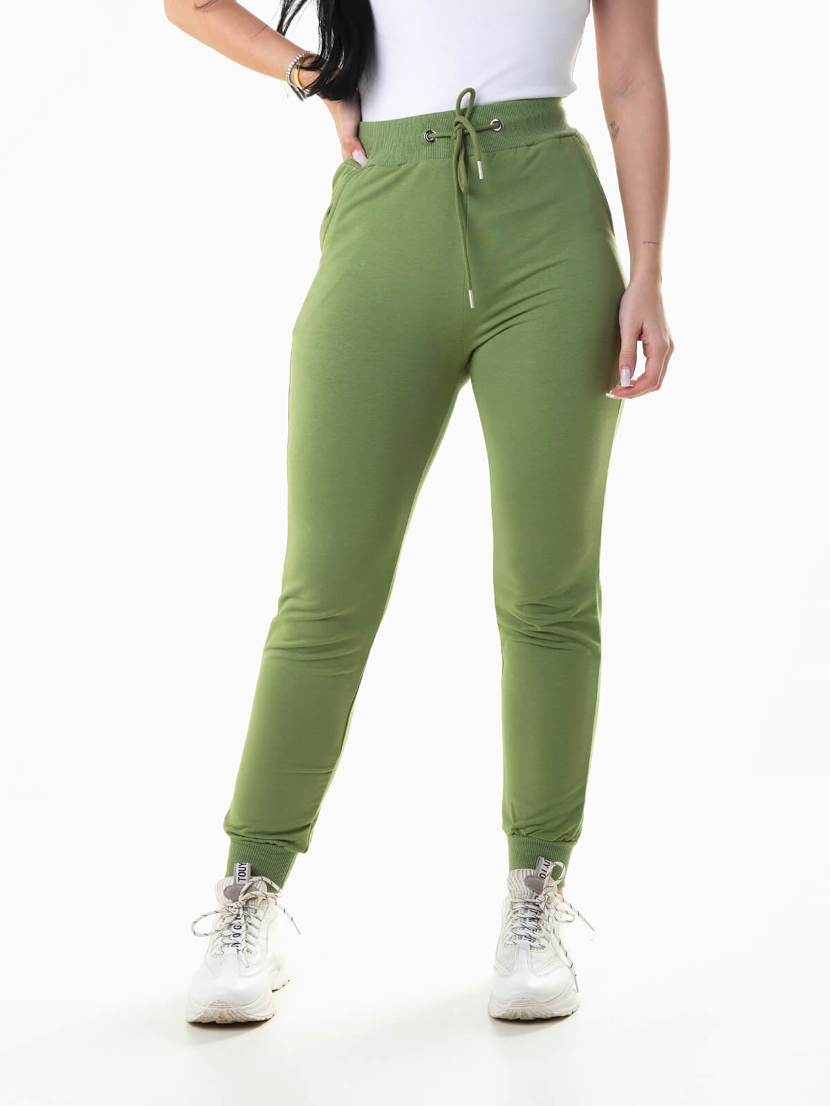Calças jogger em felpa com mistura de algodão para maior conforto e suavidade. Calças fato treino com cintura alta e cordão para ajustar. 2 bolsos.