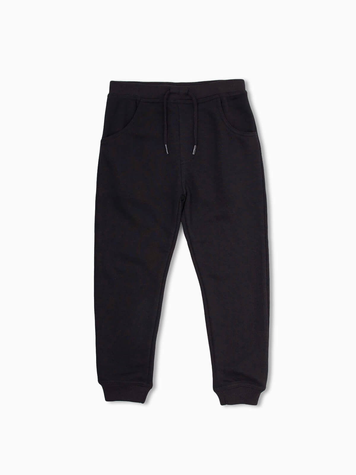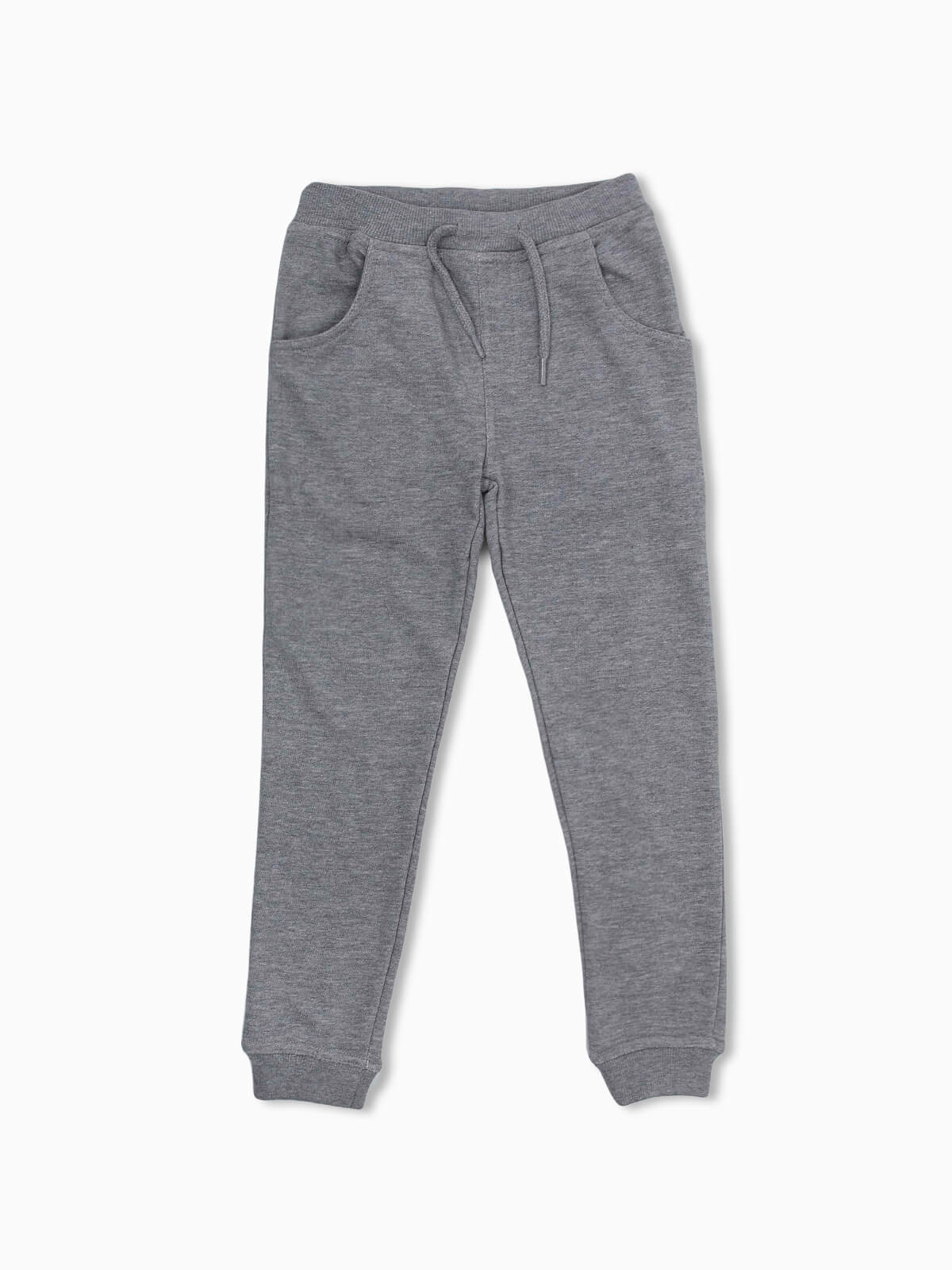 Calças jogger em felpa de algodão para menino. Calças com cintura e punhos elásticos. Ajustador no interior. 2 bolsos.