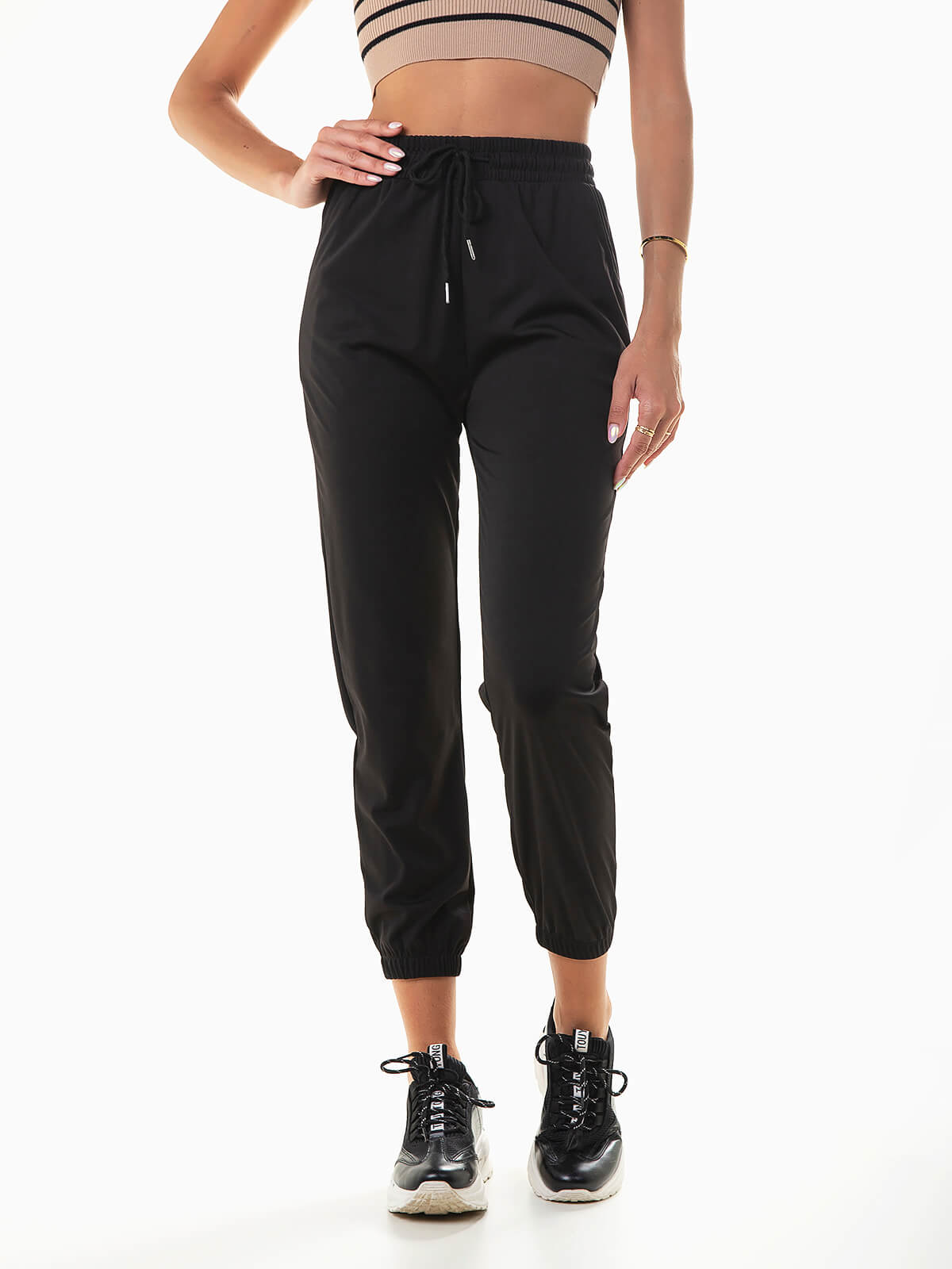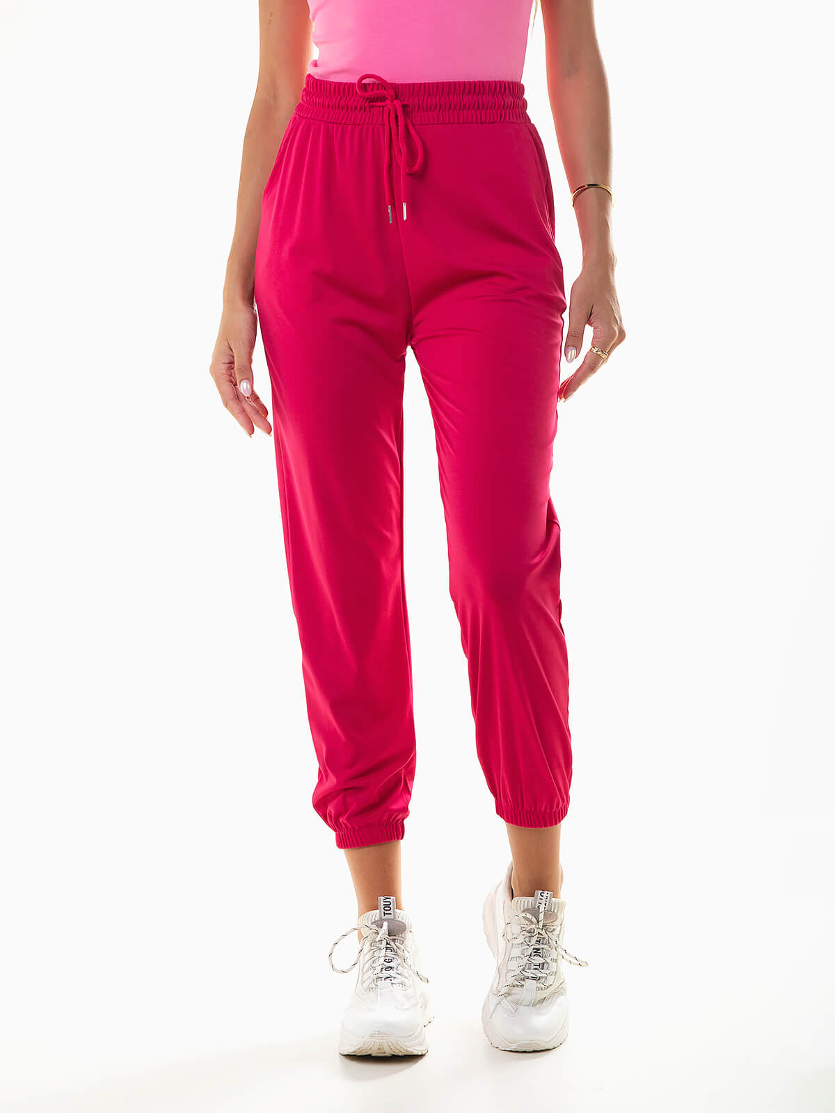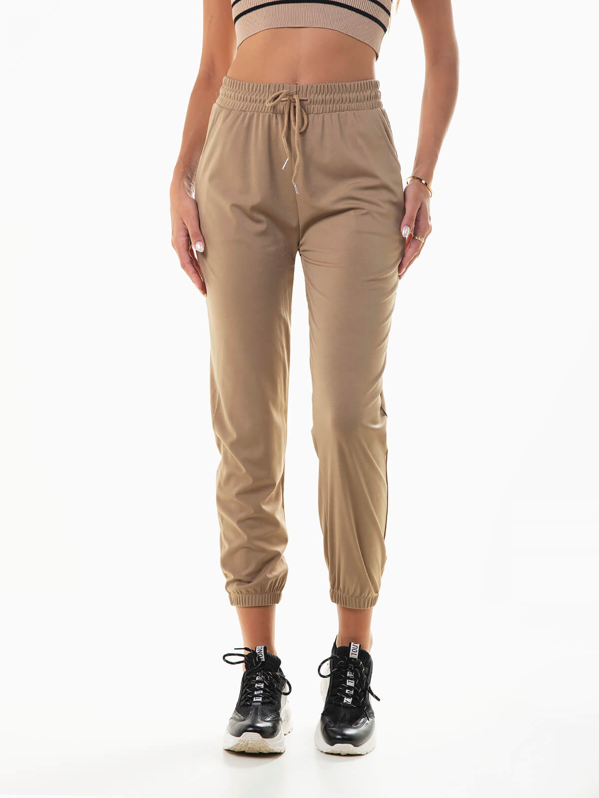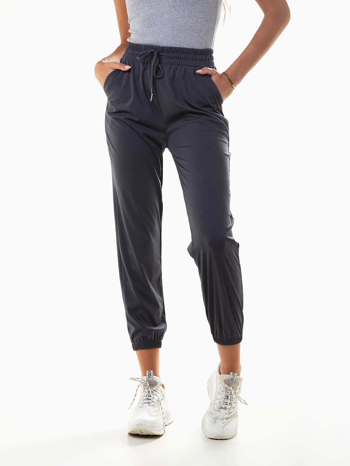 Calças jogger em tecido poliamida, respirável e confortável. Calças desportivas com cintura alta elástica e cordão para ajustar. 2 bolsos.