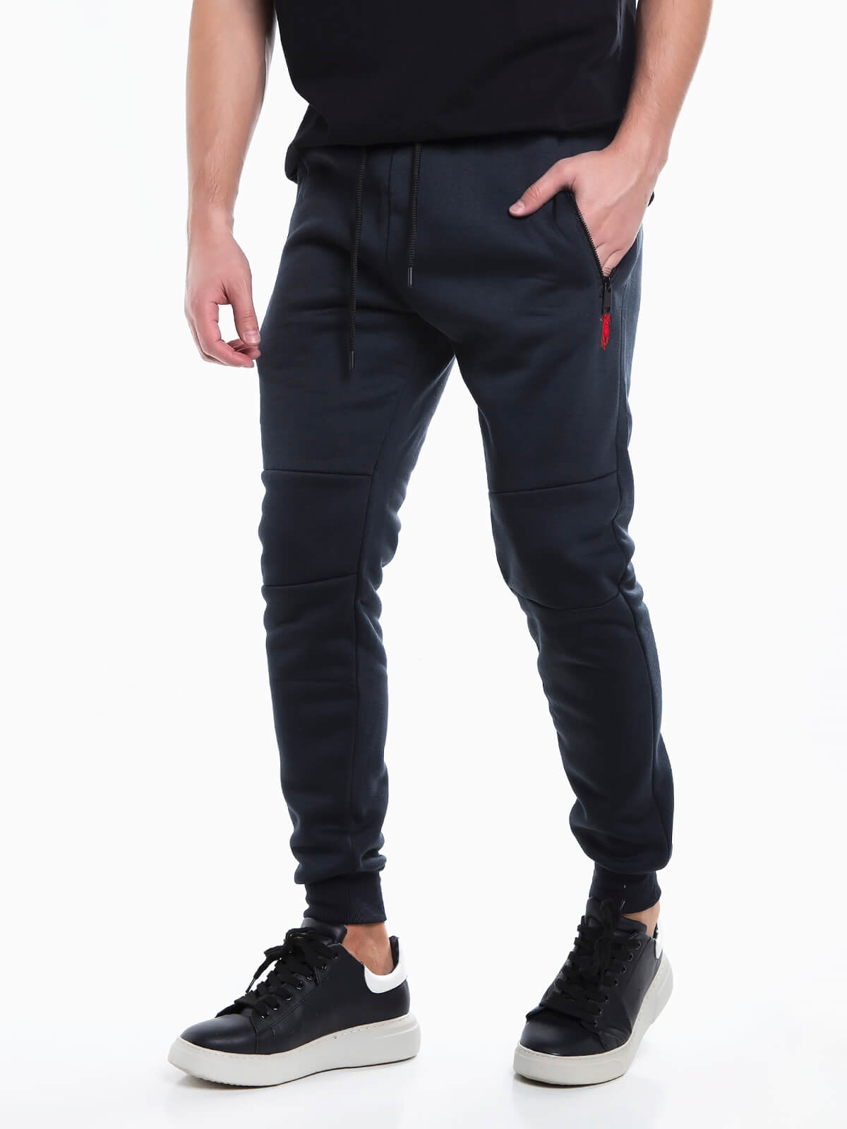 Calças jogger felpa com símbolo bordado. Calças desportivas com cintura elástica e cordão para ajustar. Interior cardado. Costuras reforçadas nos joelhos.