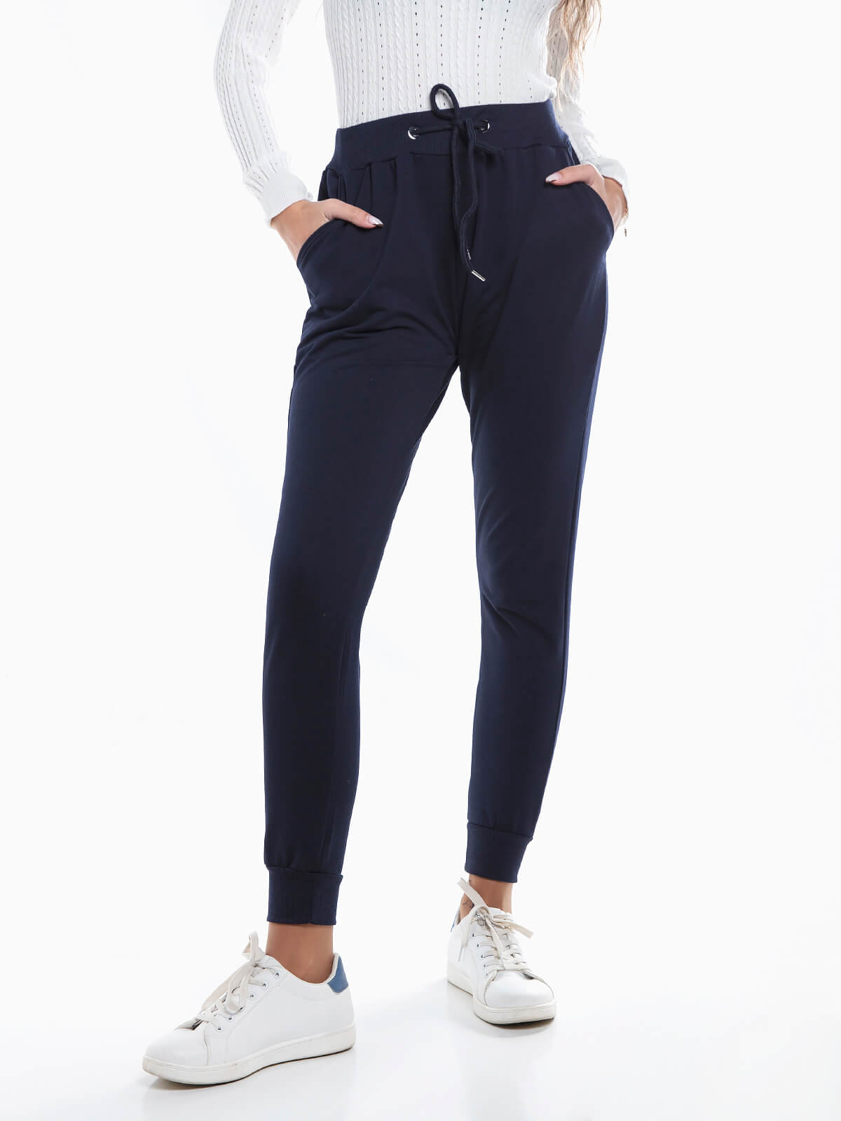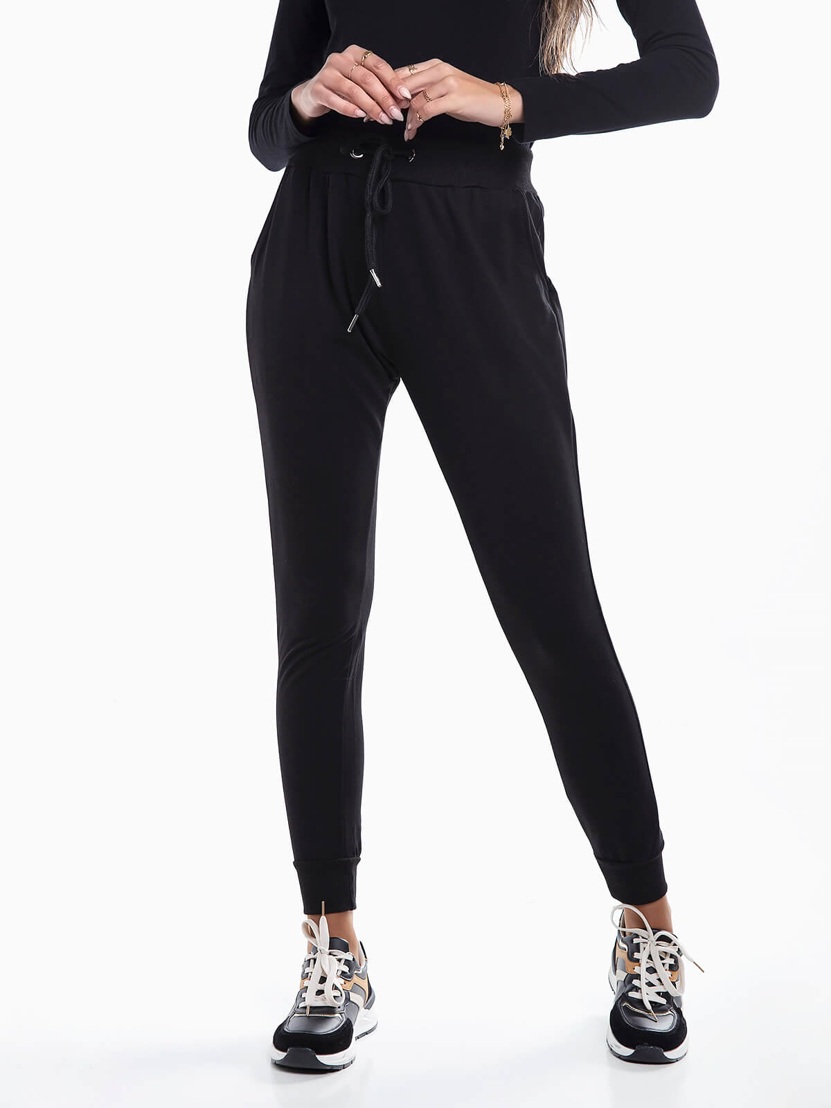Calças jogger com interior cardado para mulher. Calças cintura alta com cordão para ajustar. 2 bolsos.