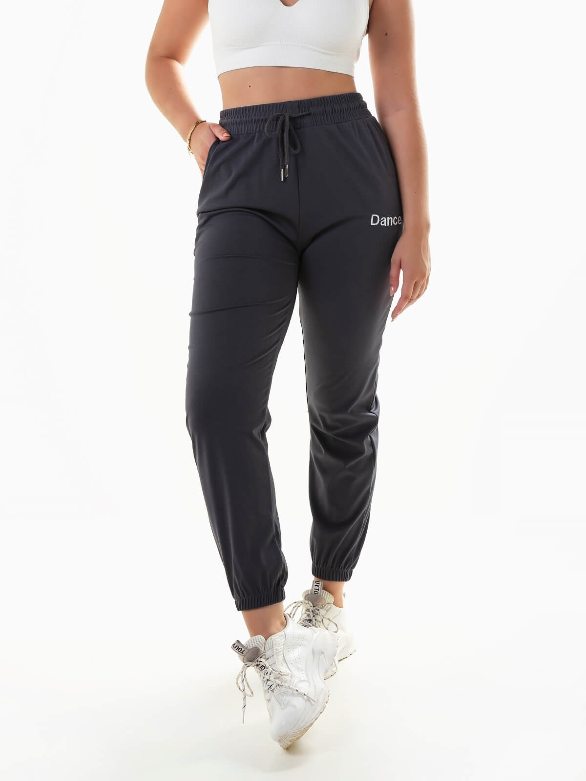 Calças jogger em tecido poliamida, respirável e confortável com letras bordadas. Calças desportivas com cintura alta elástica e cordão para ajustar. 2 bolsos.