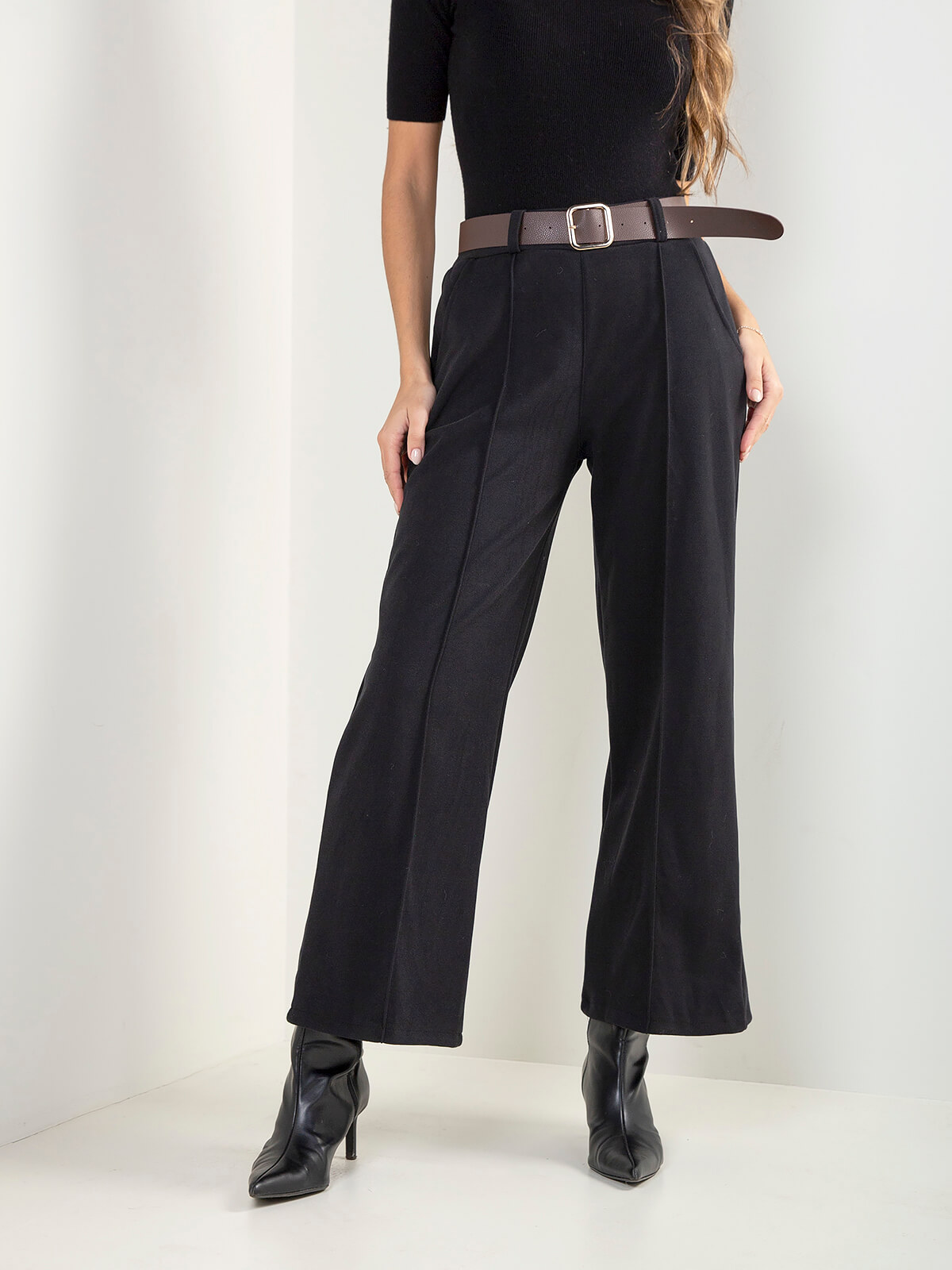 Calças largas em tecido estilo fazenda, encorpado e com estrutura para maior elegância. Modelo com vinco frontal, cintura alta e 2 bolsos. Peça confortável, versátil e perfeita para looks de dia a dia ou ocasiões mais formais.