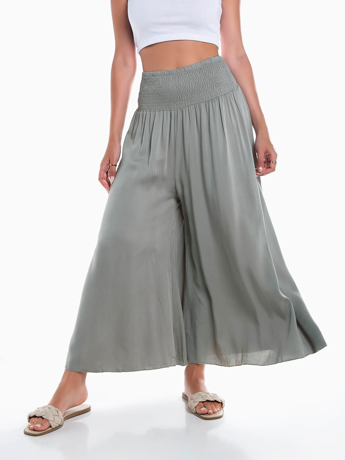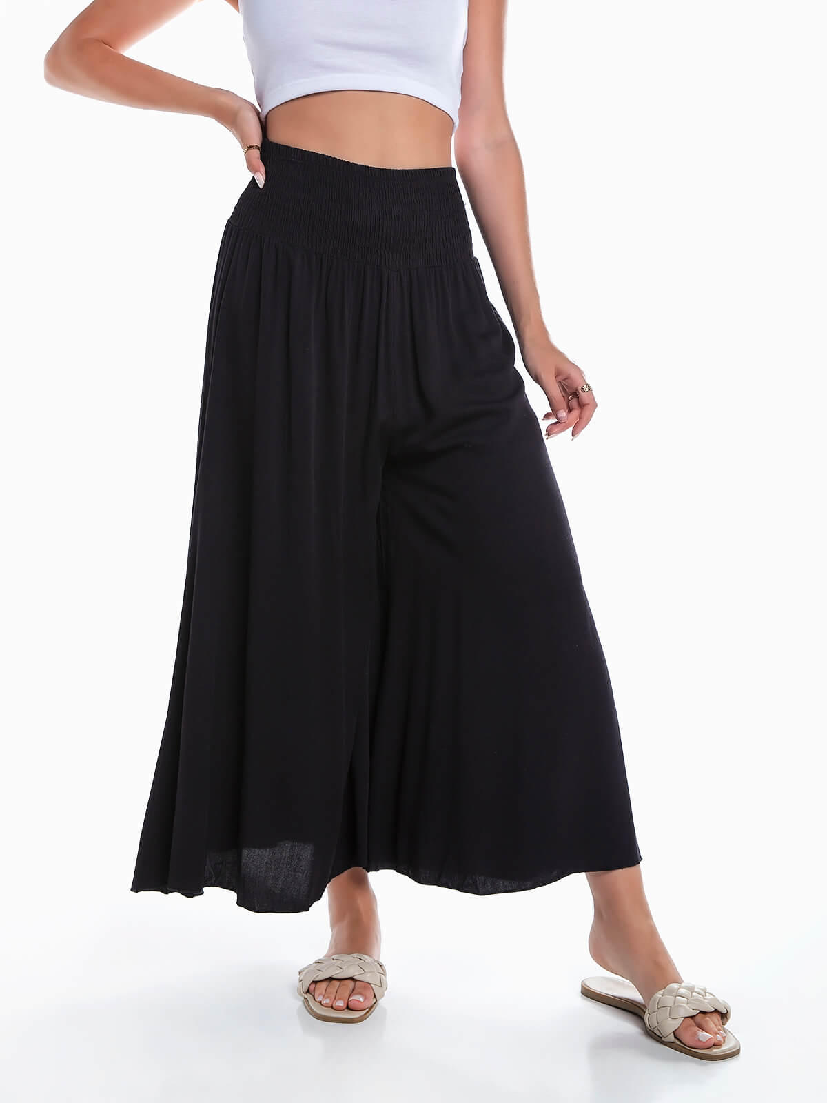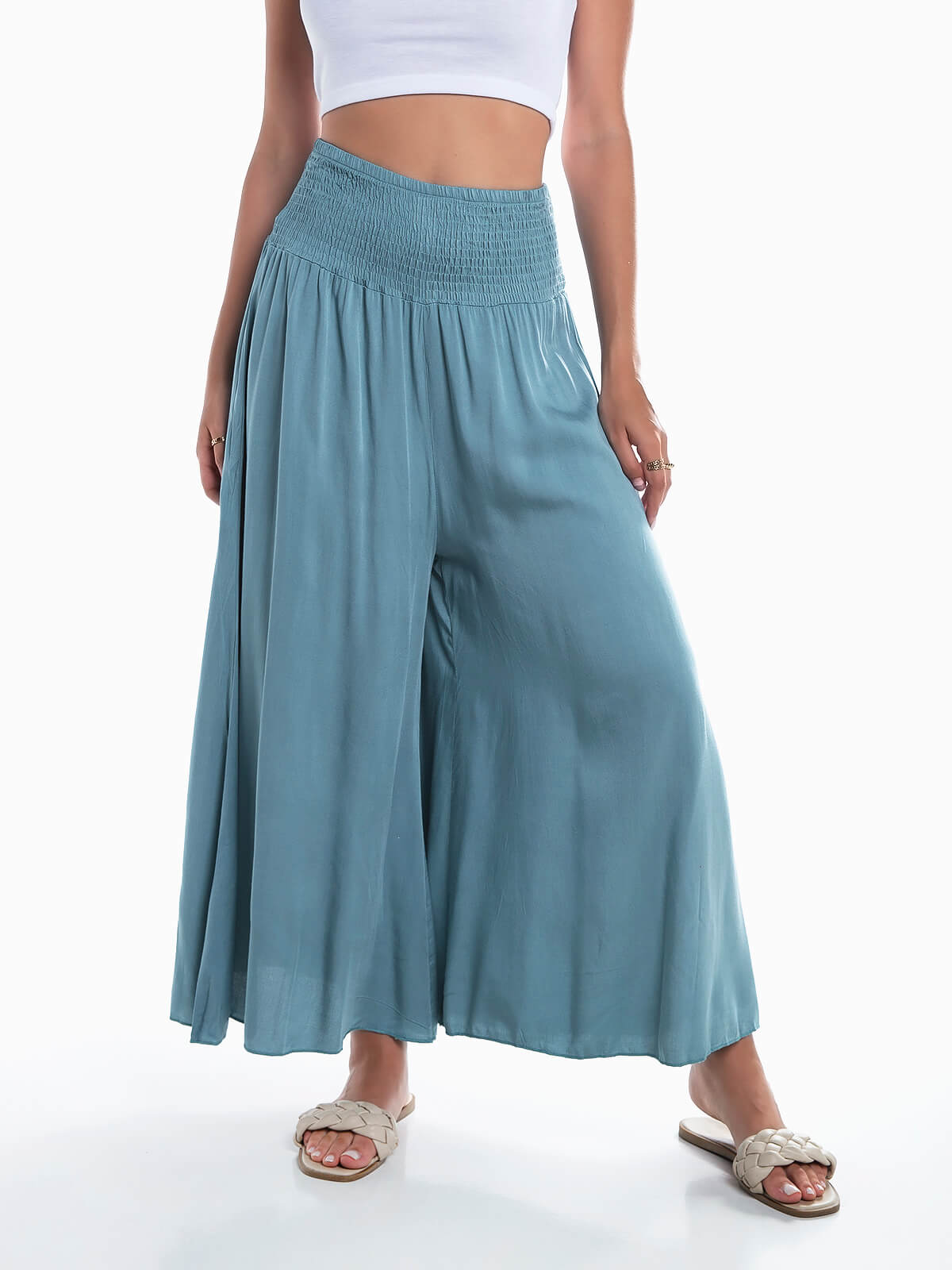 Calças palazzo cintura elástica