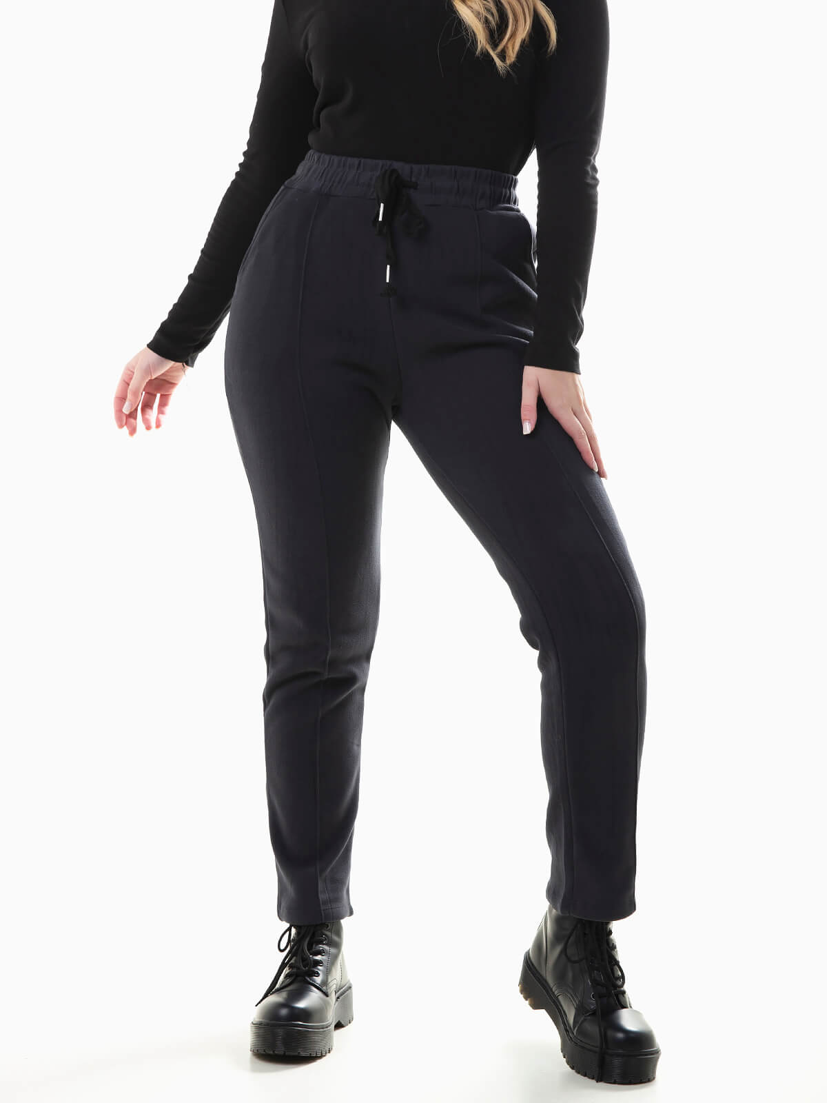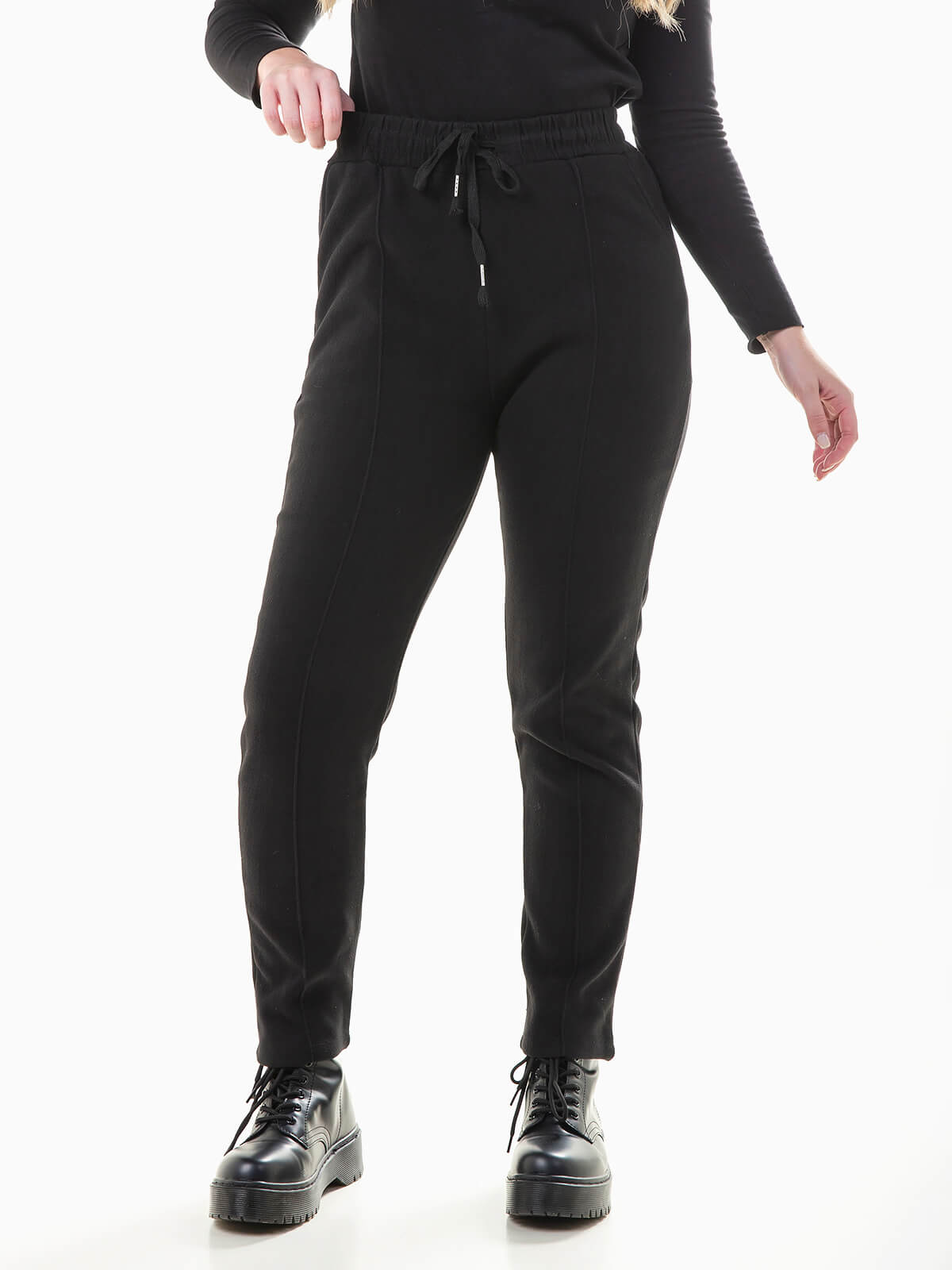 Calças polares com costuras reforçadas à frente. Calças cintura alta com cordão para ajustar e 2 bolsos. Interior polar para maior conforto térmico.