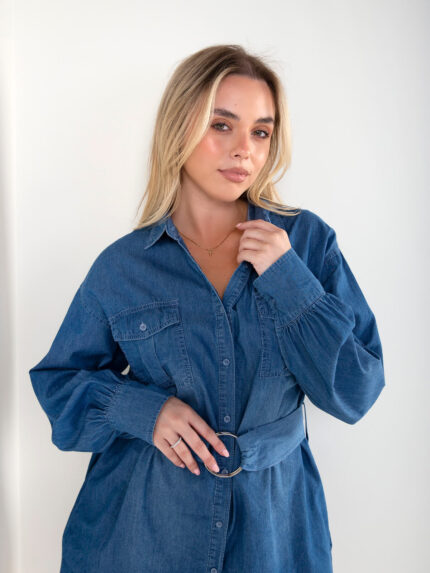 Vestido de ganga curto com cinto 19,99 €