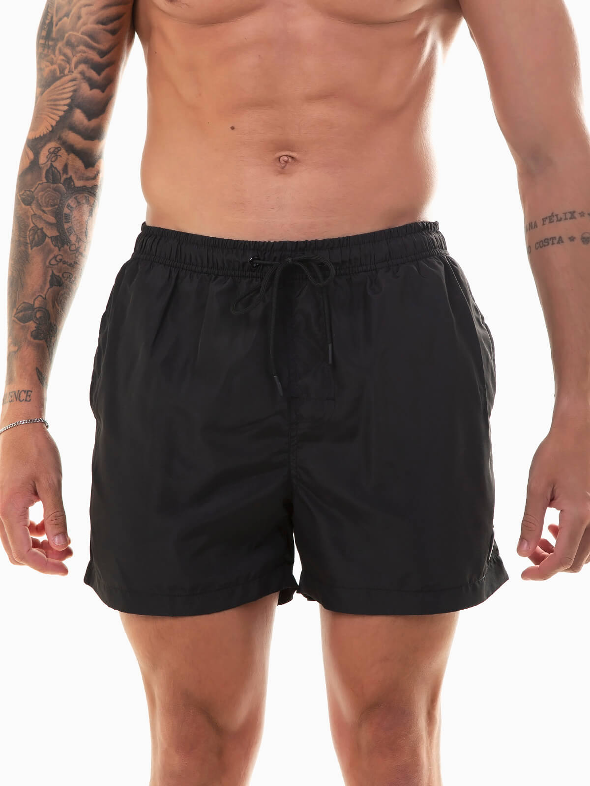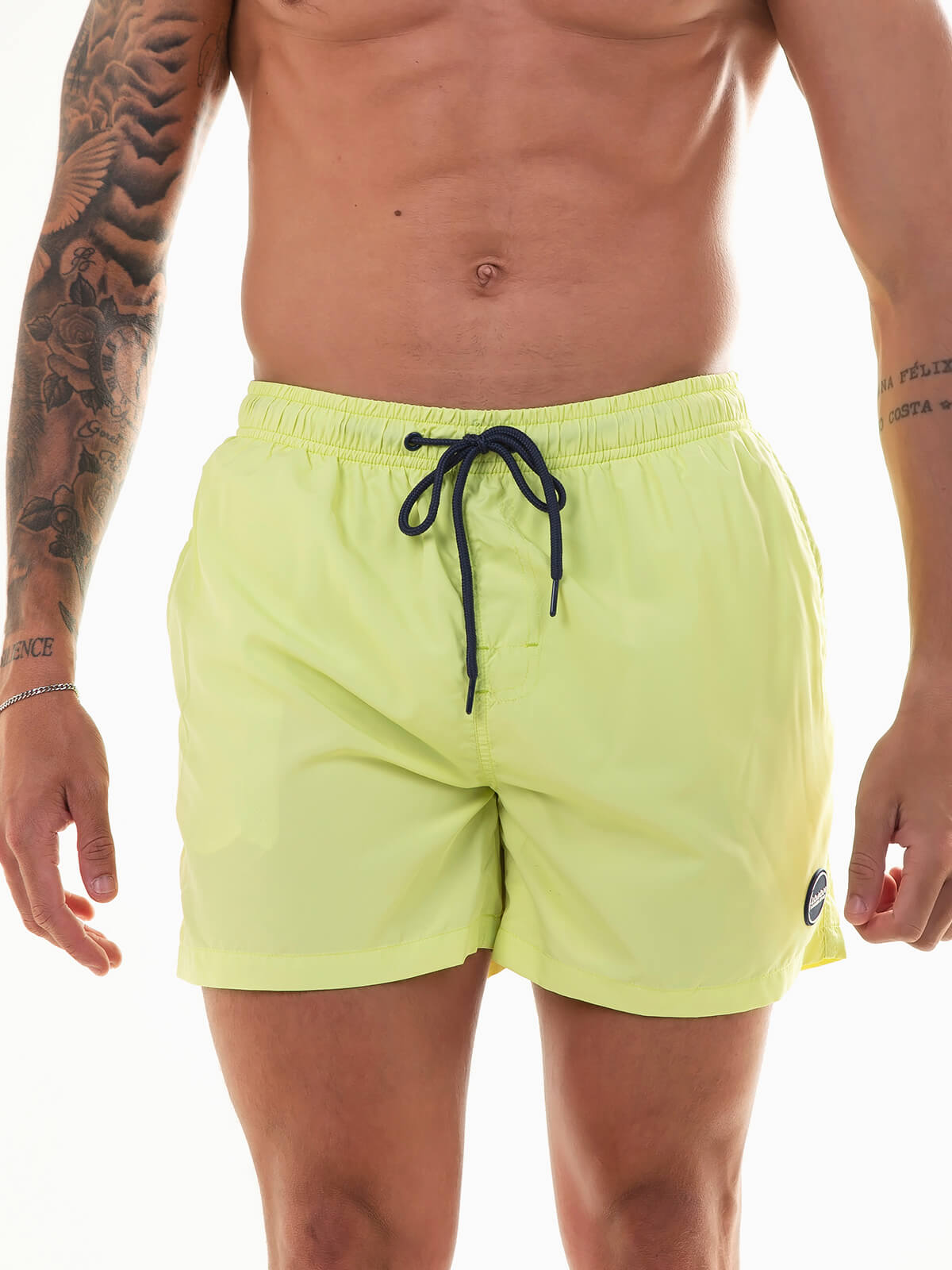 Calções de banho lisos para homem com símbolo aplicado. Calções em tecido de secagem rápida com cintura elástica e cordão para ajustar. 2 bolsos laterais e 1 na parte posterior.