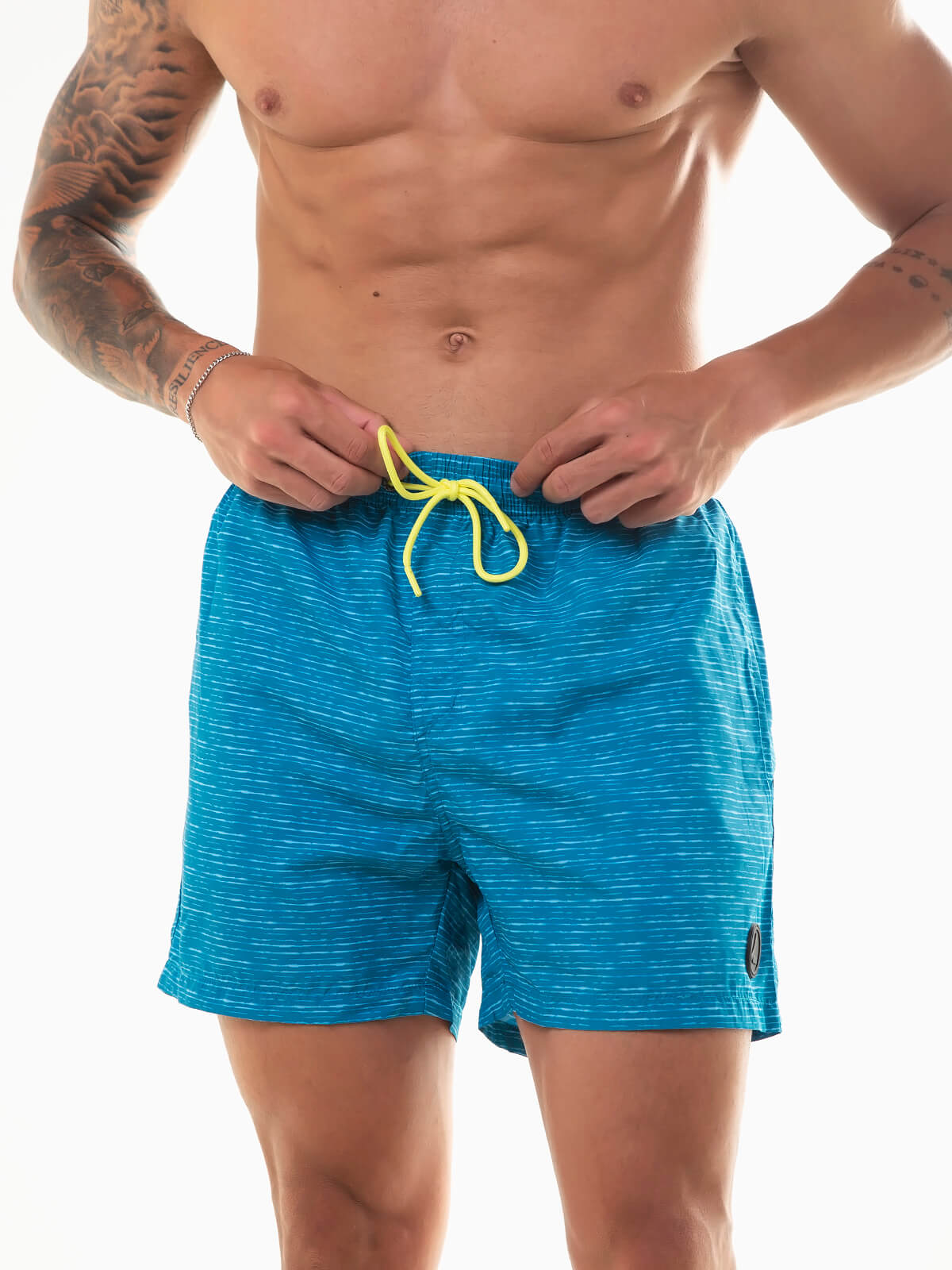 Calções banho veres com estampado de riscas para homem. Calções em tecido de secagem rápida com cintura elástica e cordão para ajustar em contraste. 2 bolsos laterais e 1 atrás com velcro. Forro interior respirável.