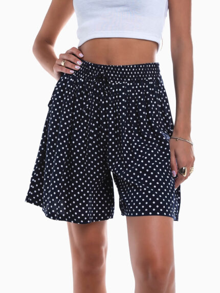 Calções brancos em tecido 100% algodão bordado inglês. Calções curtos de cintura alta elástica com cordão para laço. Interior forrado. 2 bolsos. Base recortada.