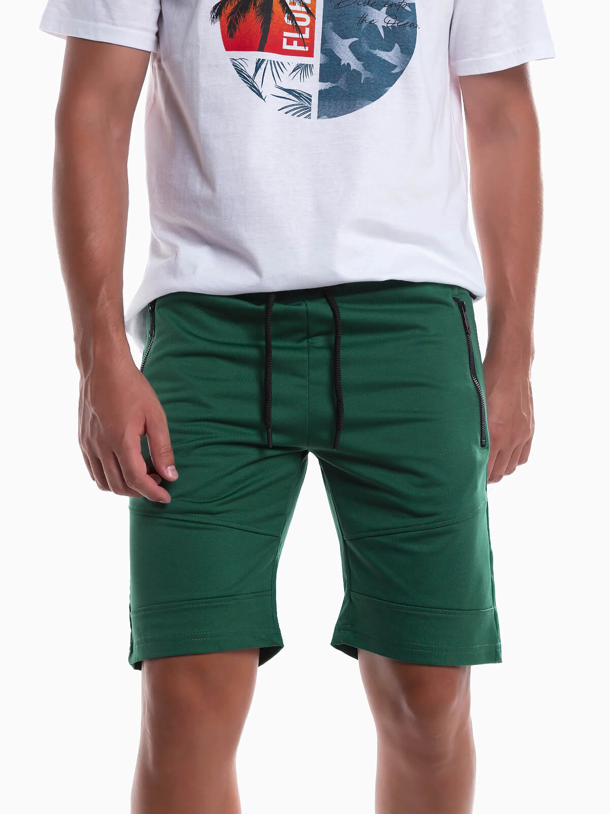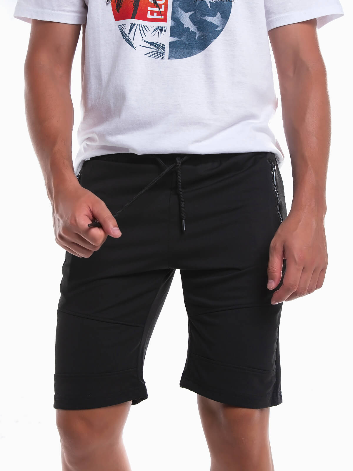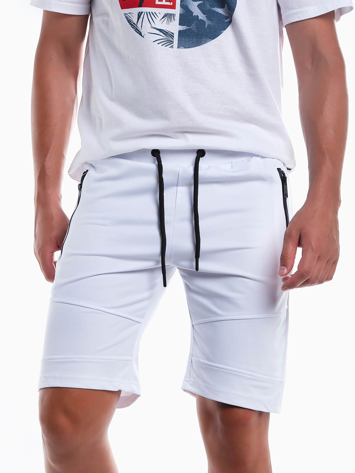 Calções fato de treino básicos para homem. Calções desportivos com cintura elástica e cordão para ajustar. 2 bolsos com fecho zíper.