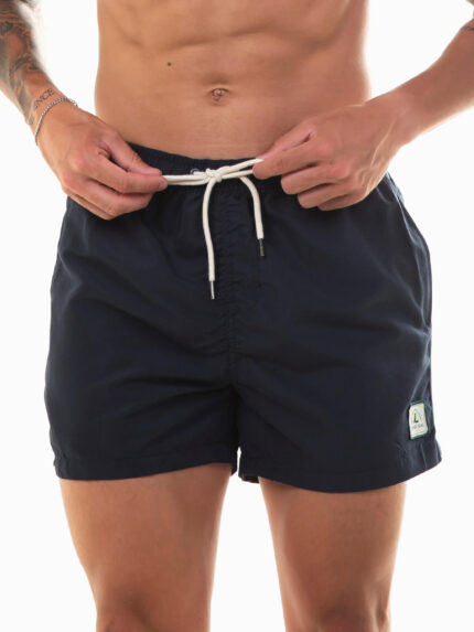 Calções de ganga pretos para homem com dobra na base. Calções denim com 5 bolsos. Aperto de fecho éclair e botão.