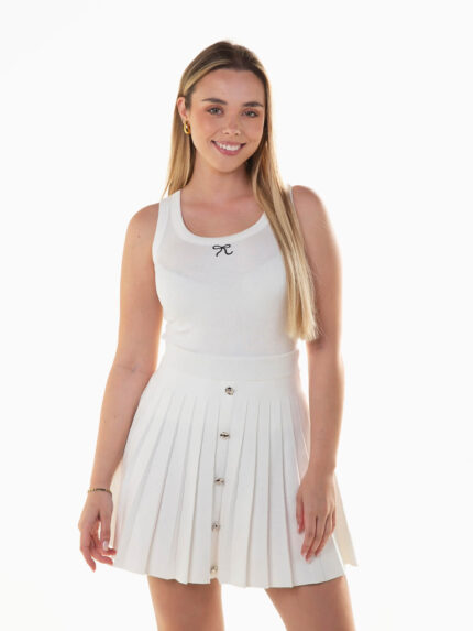 Calções curtos de cintura alta paperbag com botões decorativos na frente. Modelo prático e confortável com dois bolsos laterais. Ideal para looks de verão descontraídos com um toque feminino.