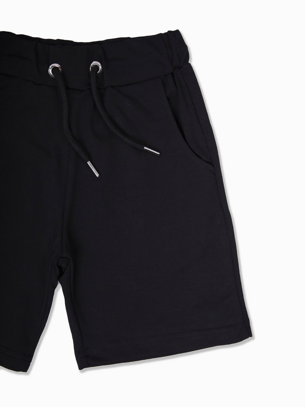 Calções pretos desportivos em tecido de algodão para menino. Calções de cintura elástica com cordão para ajustar. 2 bolsos.