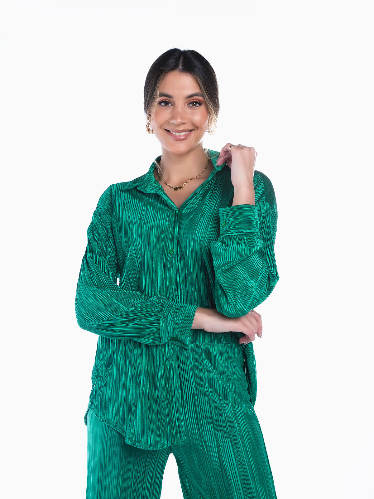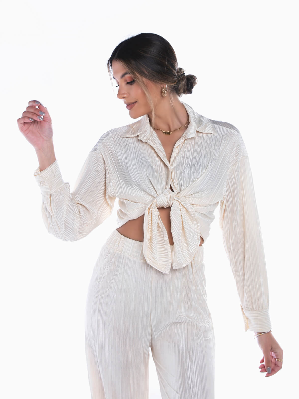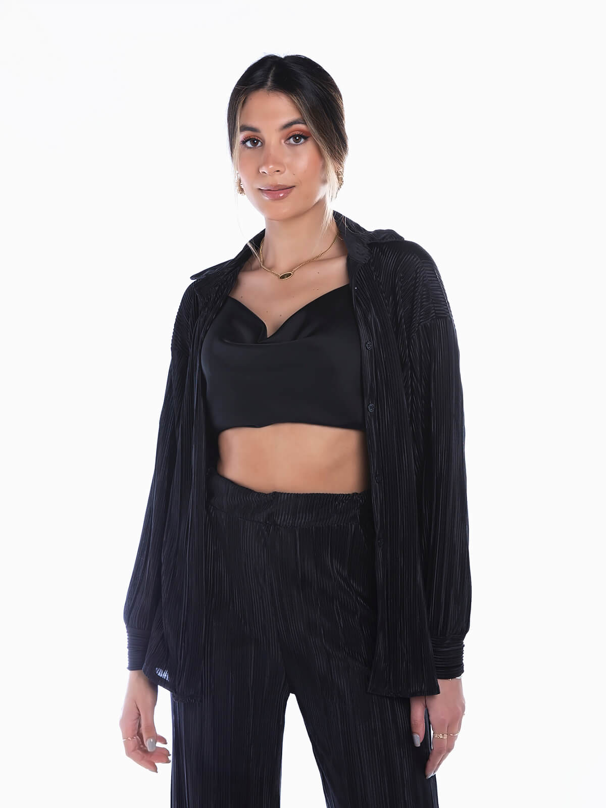 Camisa acetinada plissada