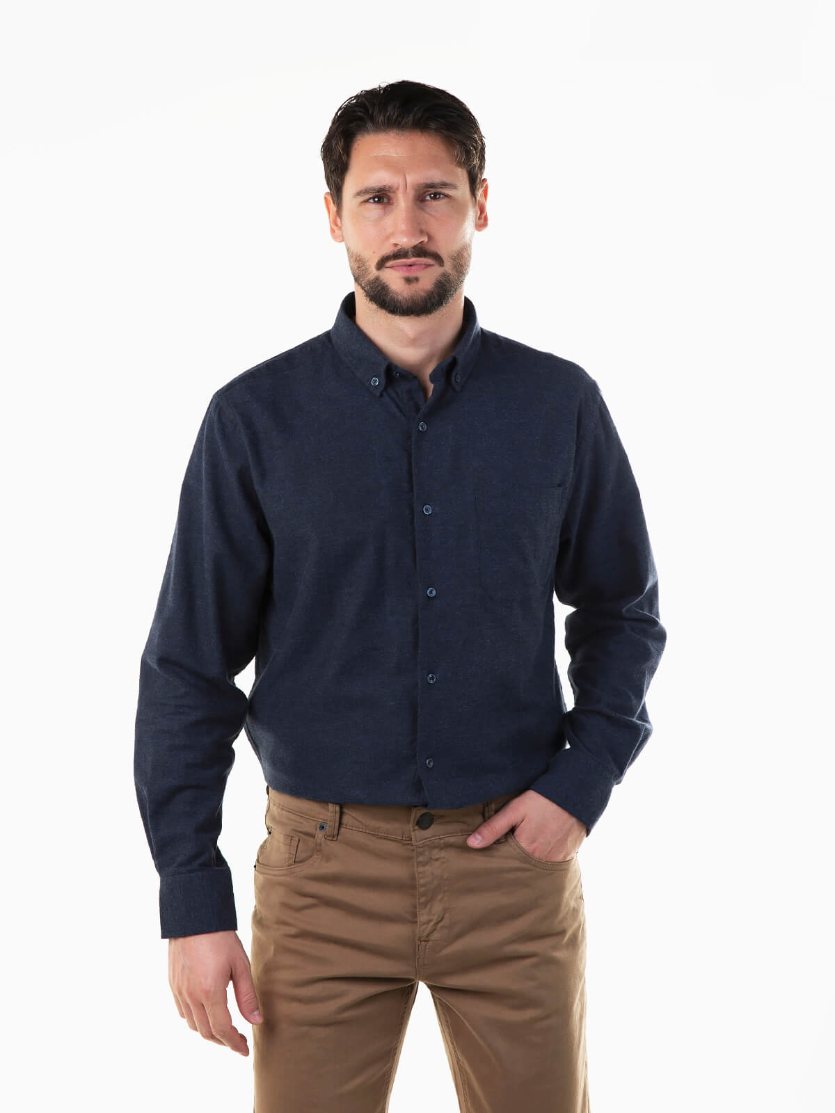 Camisa de flanela fina, agradável ao toque com bolso no peito para homem. Camisa de manga comprida com punhos abotoados e colarinho americano. Aperto frontal de botões.