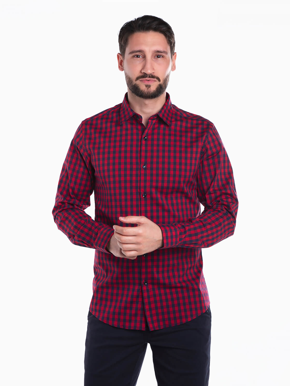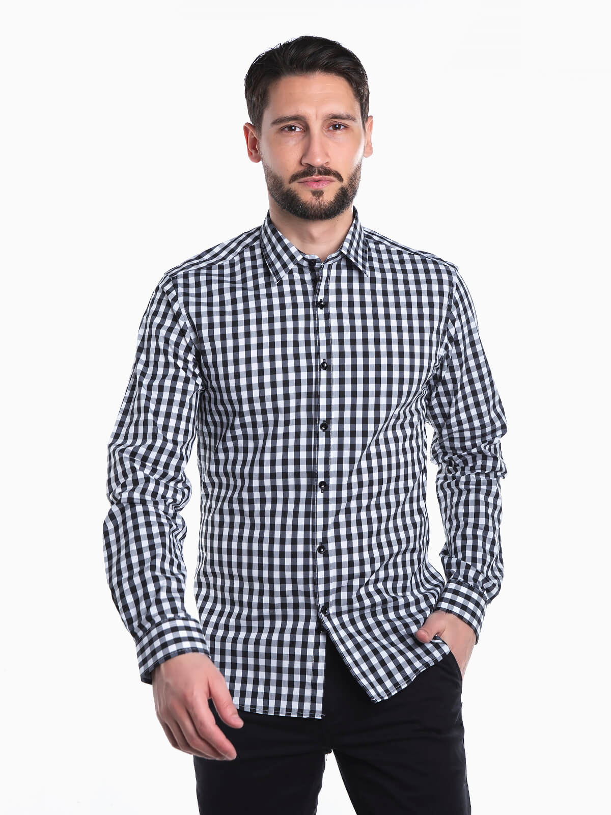 Camisa de manga comprida aos quadrados para homem. Camisa com punhos abotoados. Aperto frontal de botões.