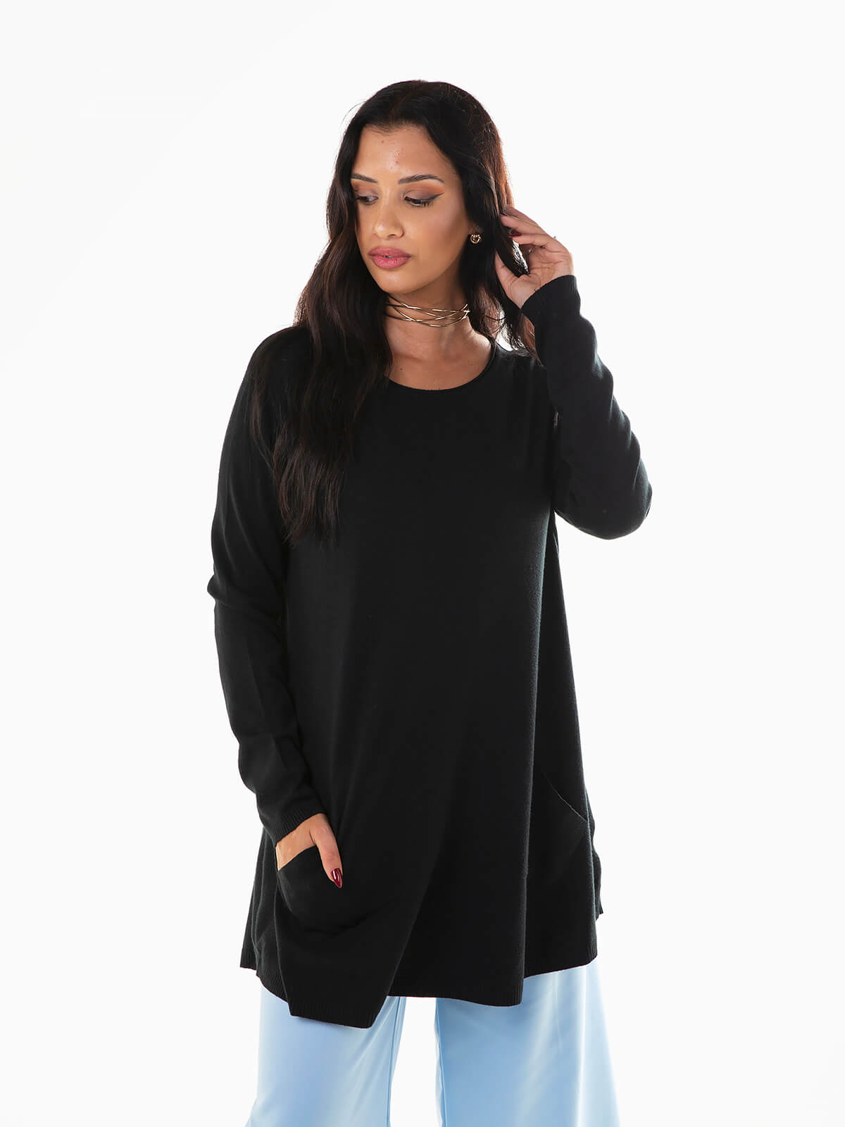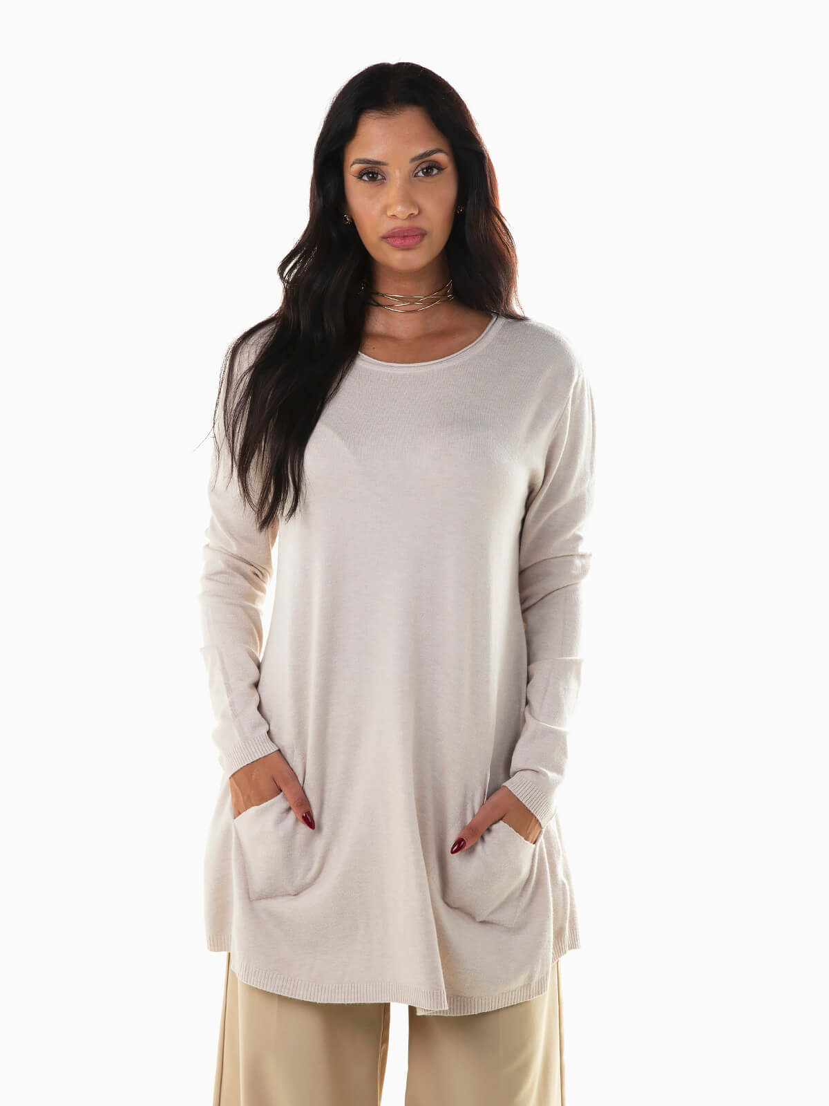 Início Mulher Malhas Camisolas Camisola comprida malha com bolsos