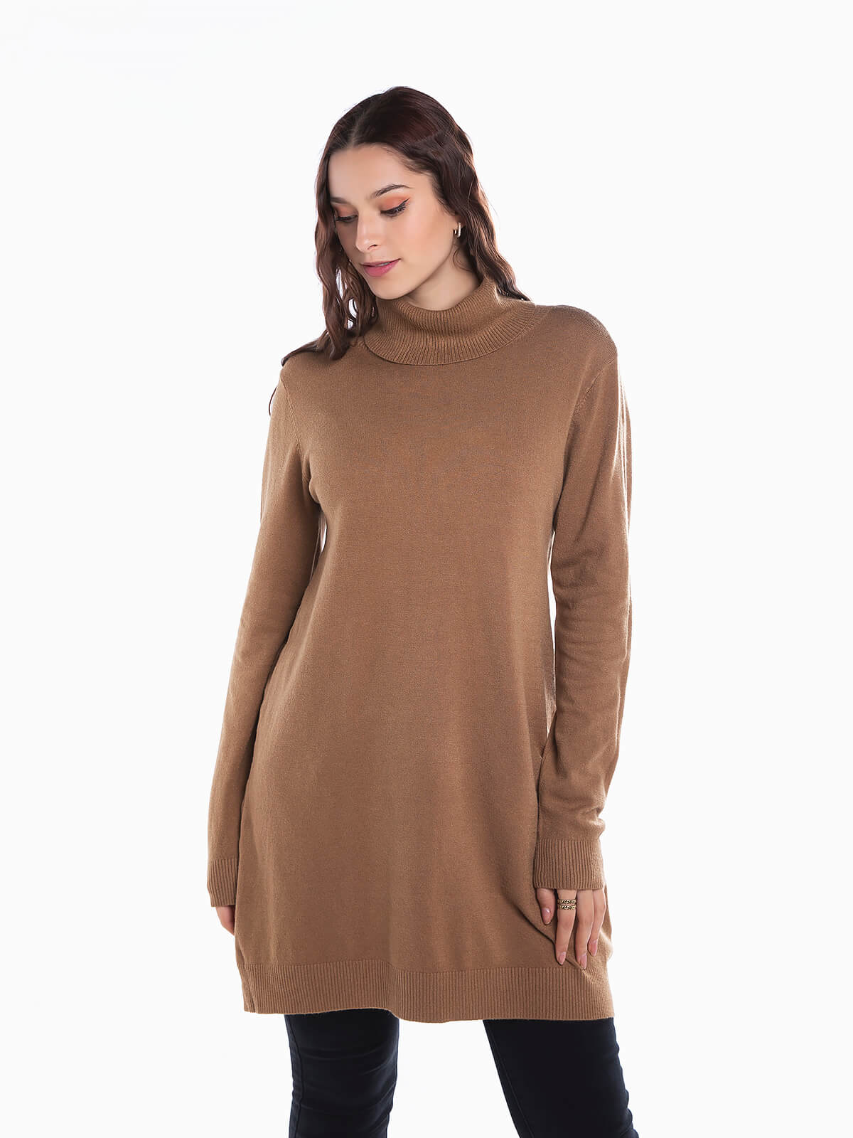 Início Mulher Malhas Camisolas Camisola comprida malha gola alta