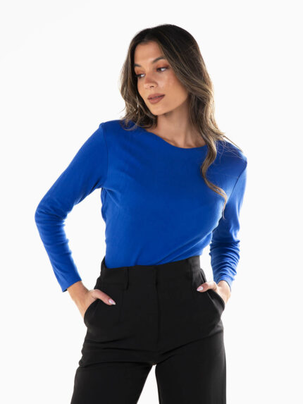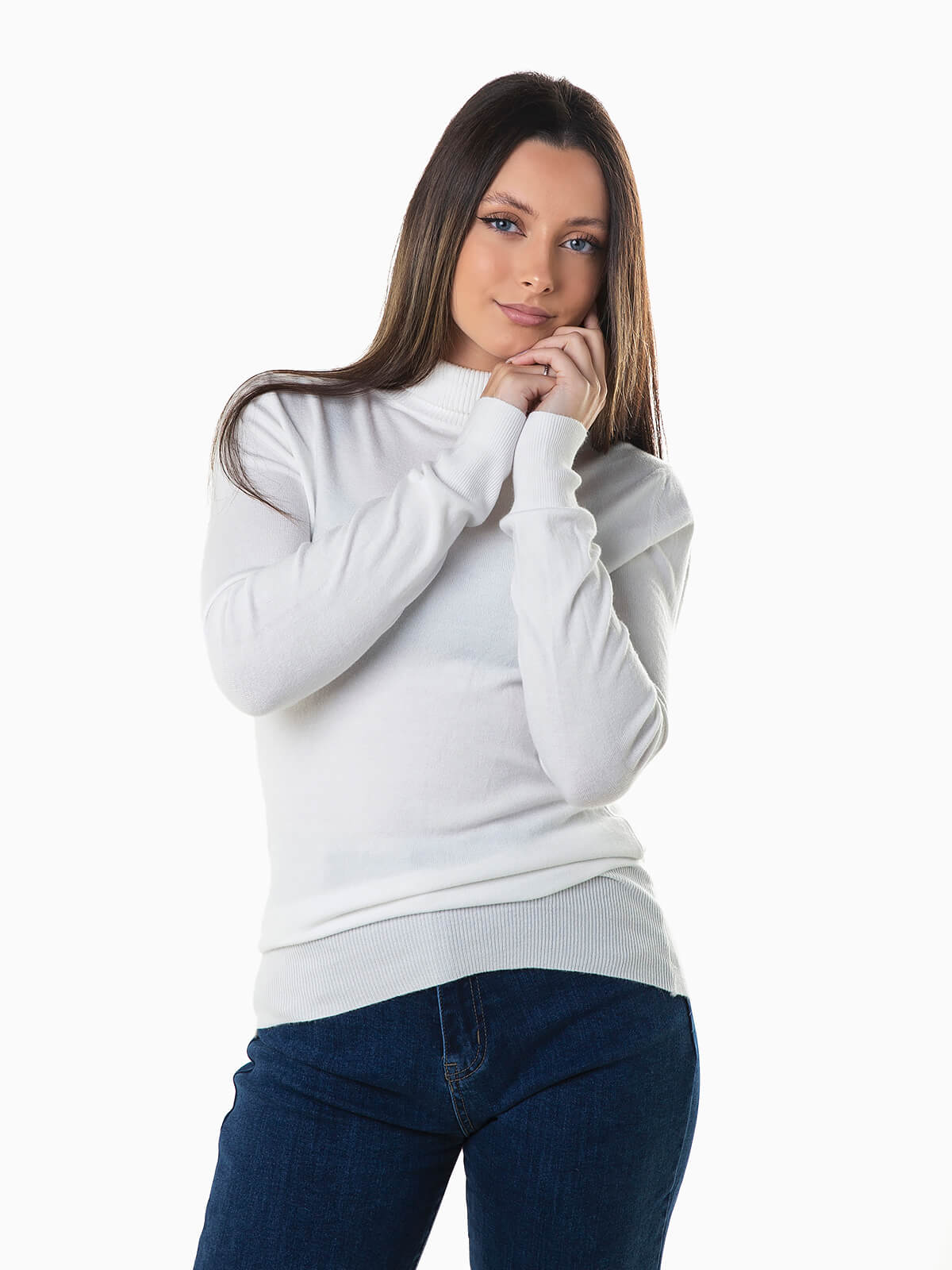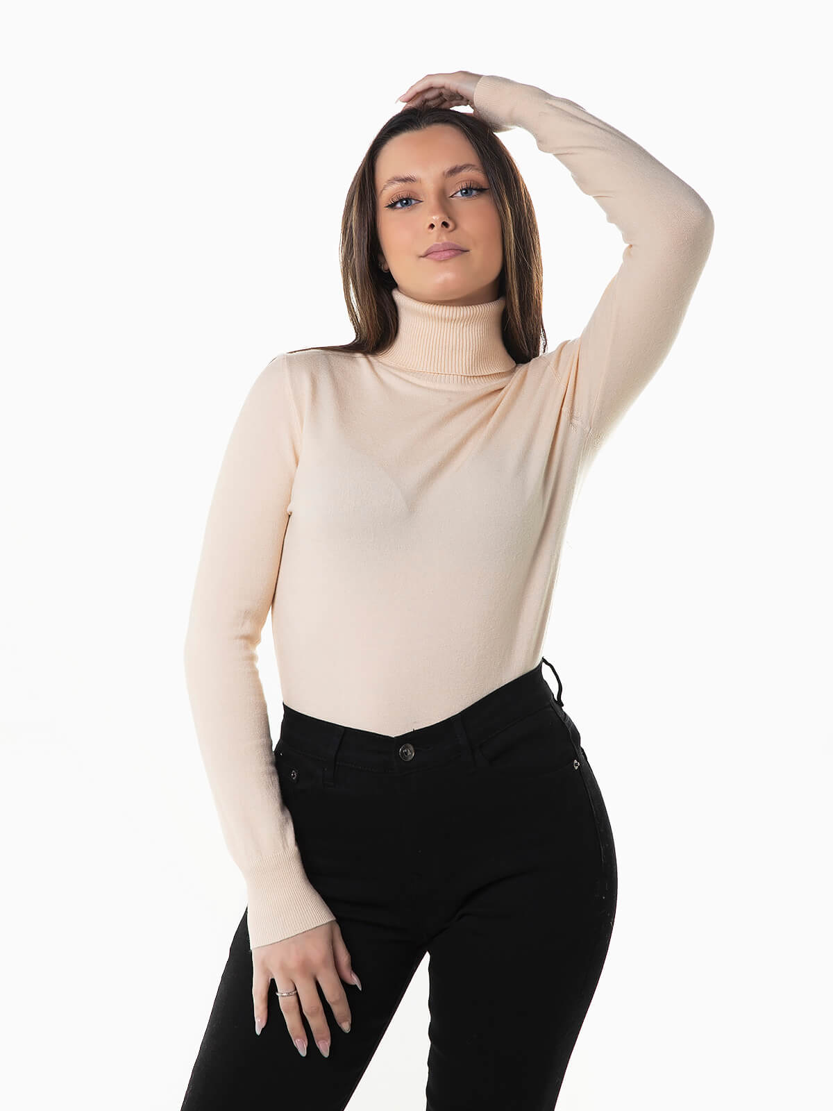Camisola de gola alta em malha fina com mistura de viscose para maior conforto. Camisola de manga comprida.