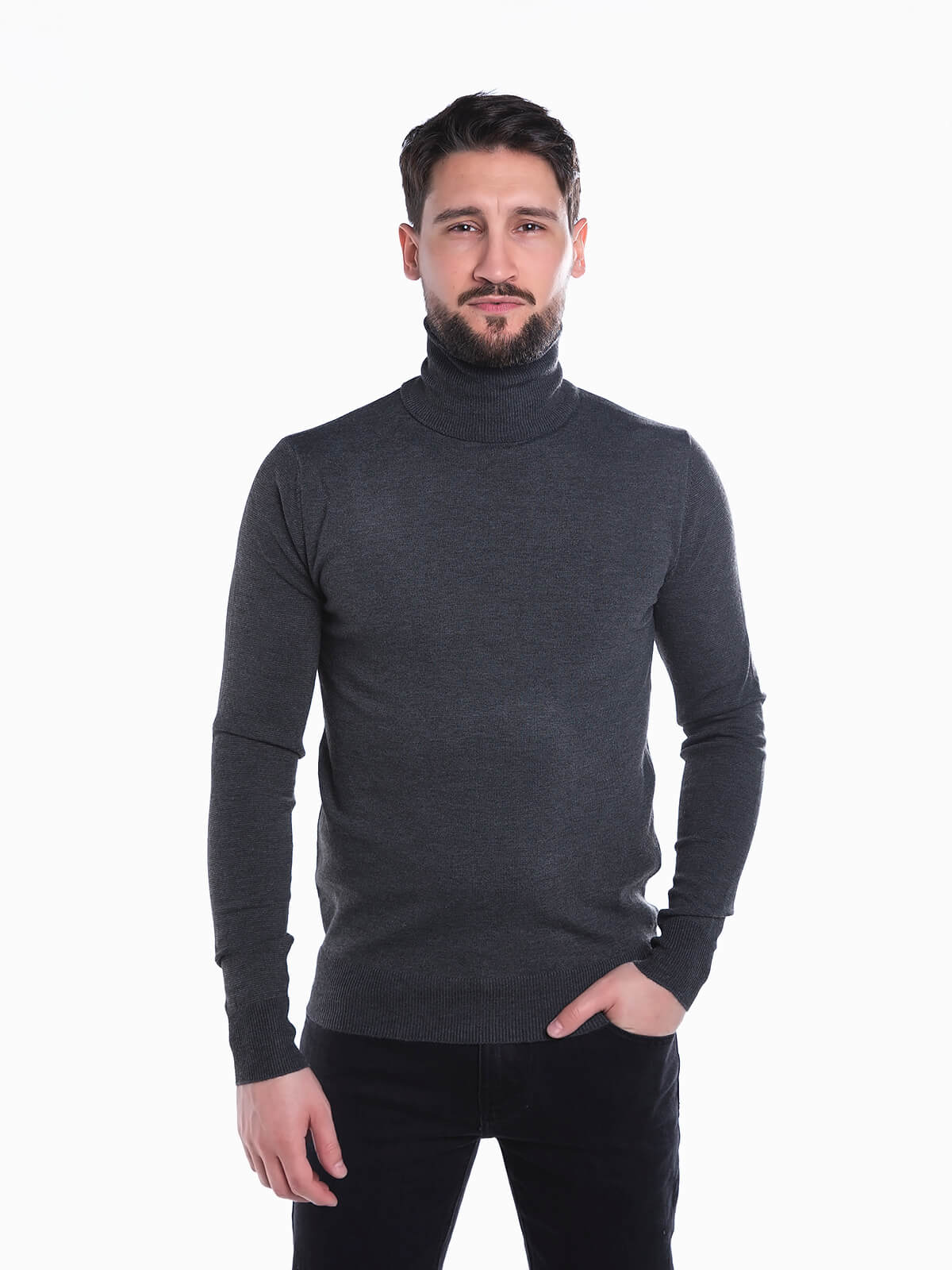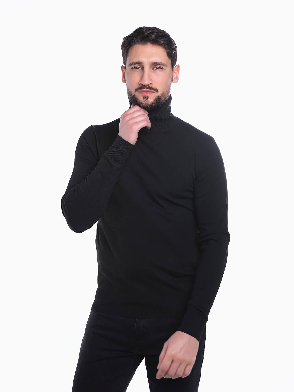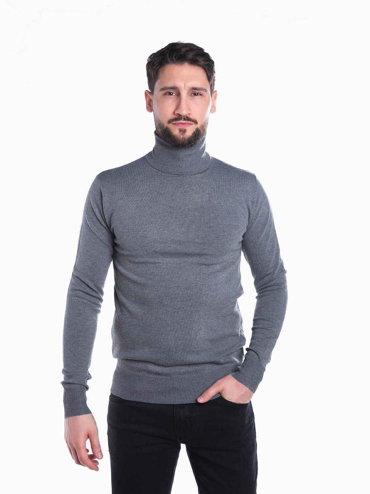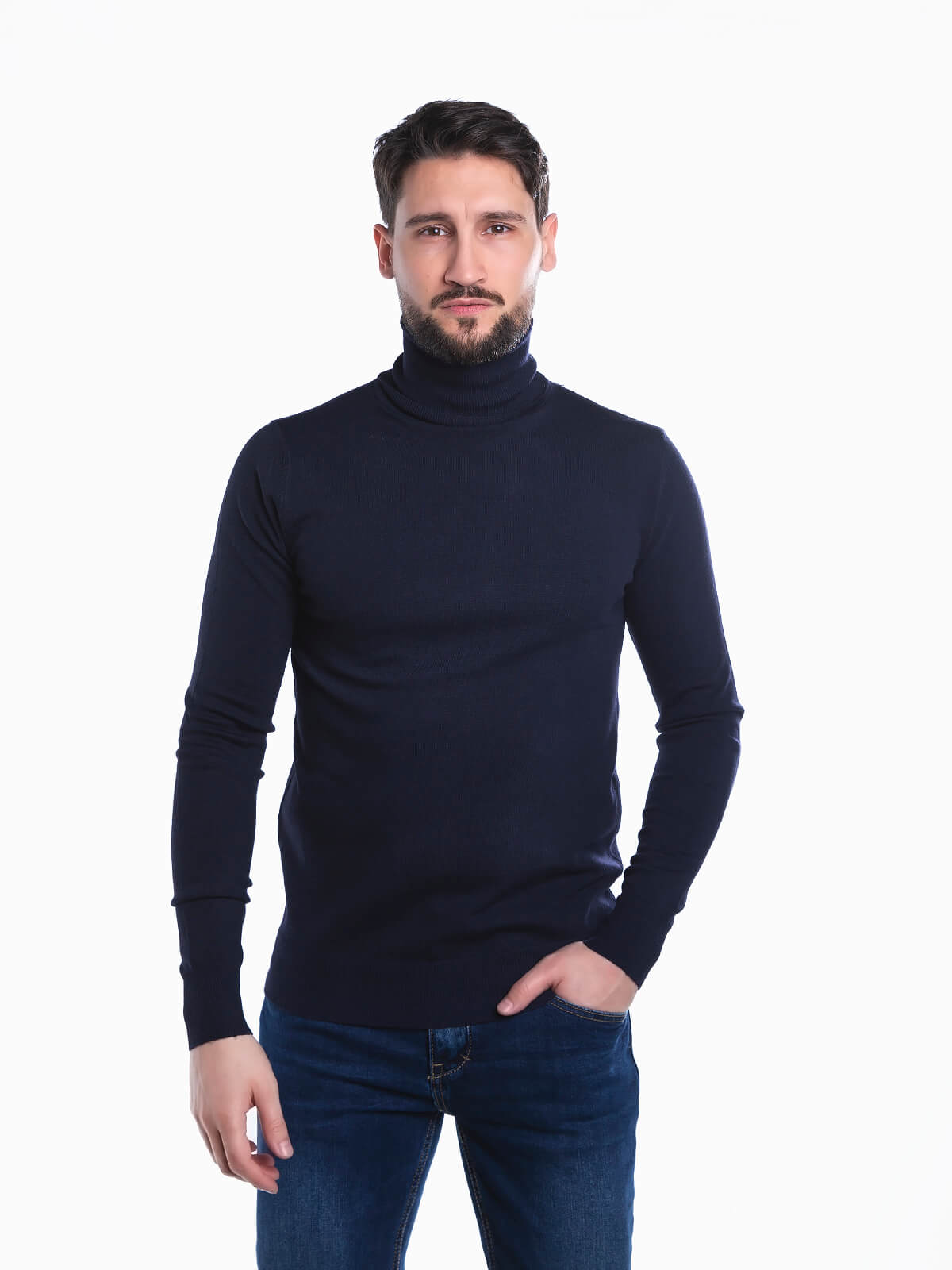 Camisola de gola alta em malha para senhora. Camisola lisa de manga comprida com extremidades caneladas.