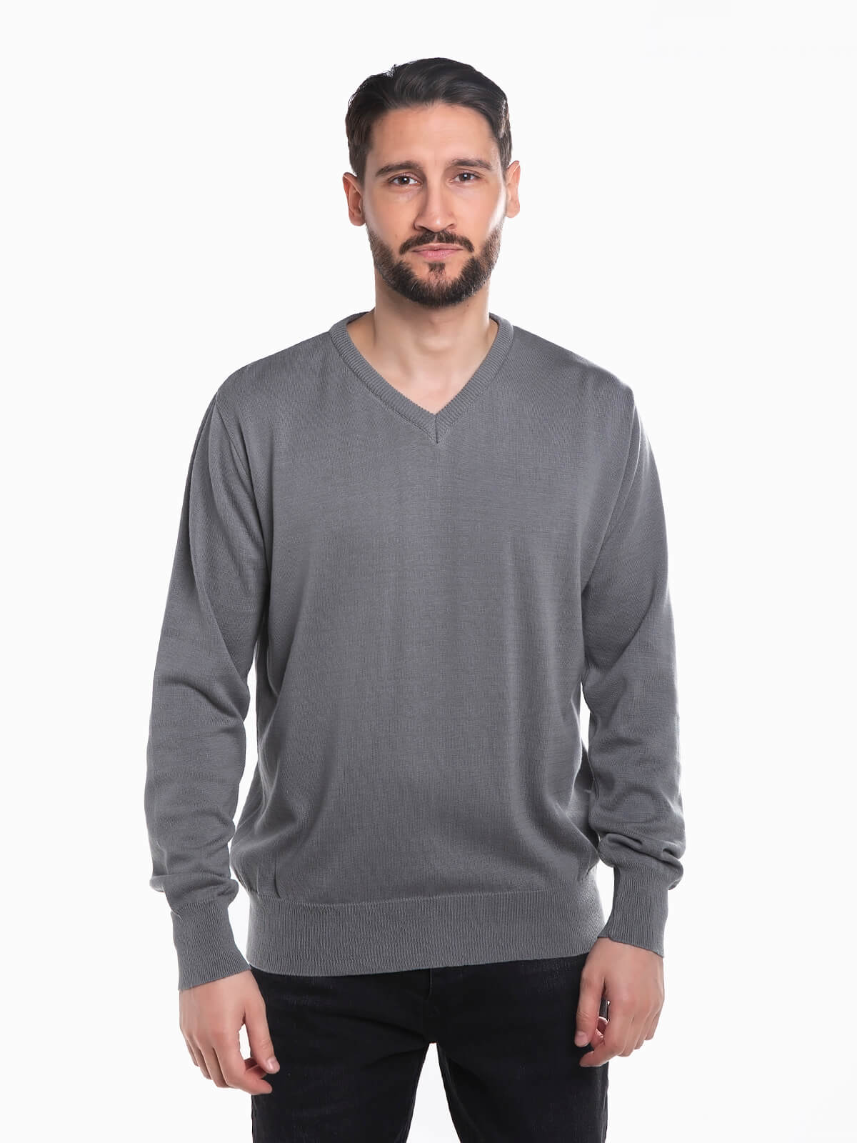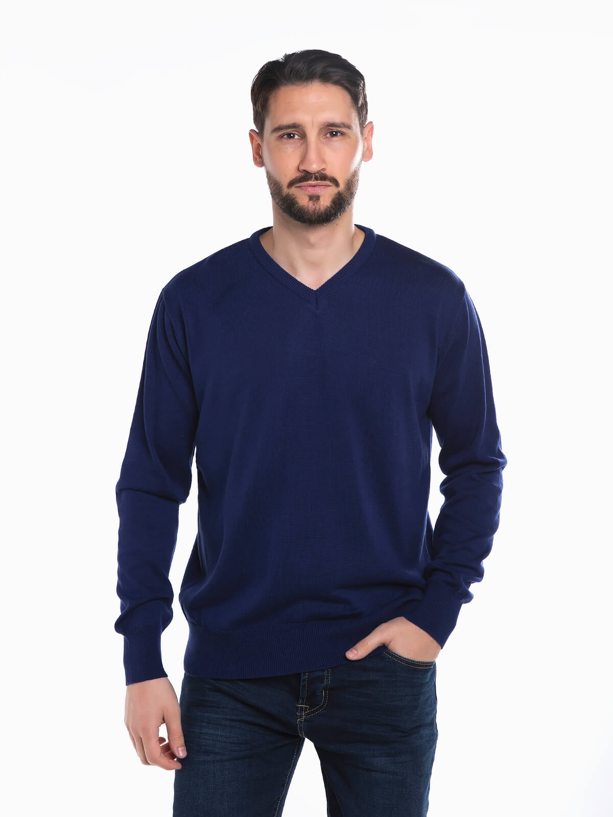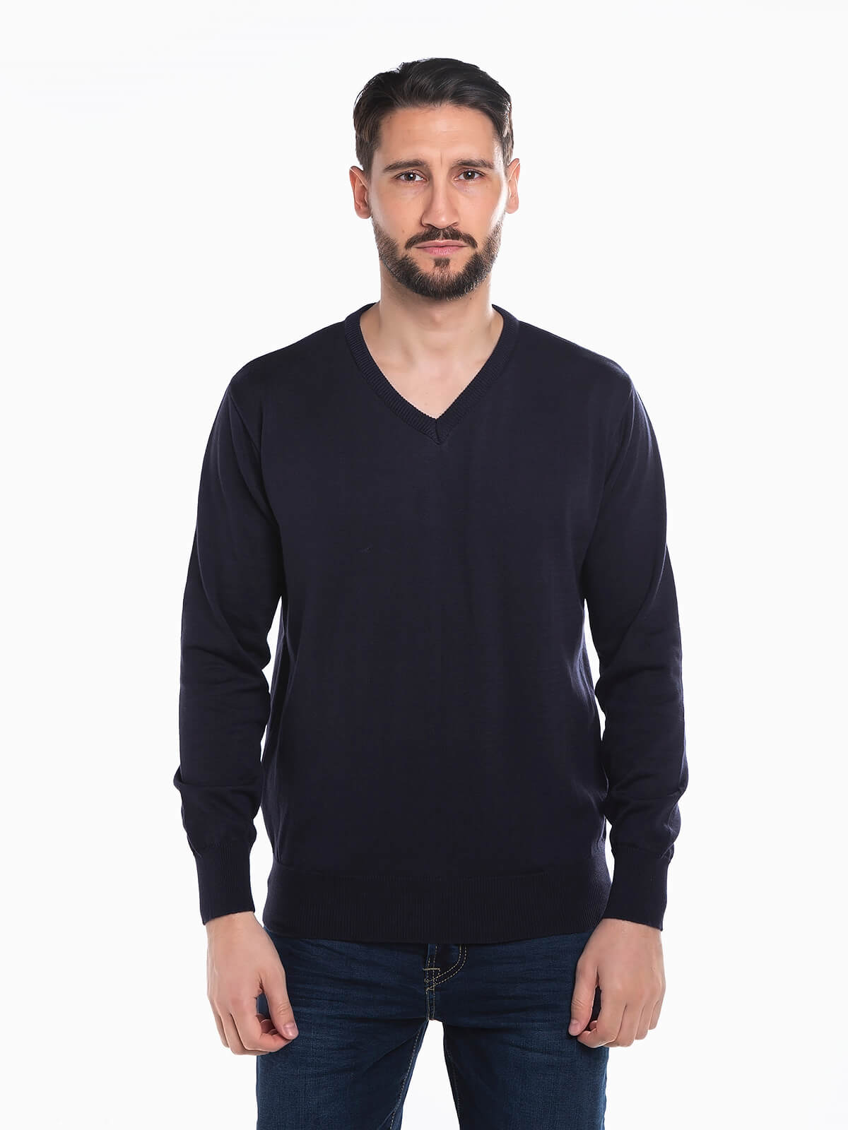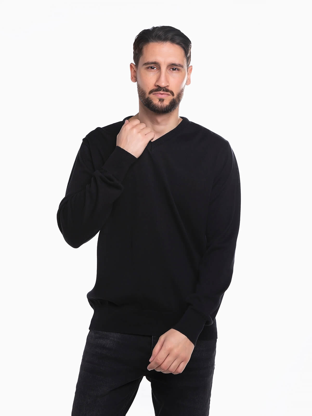 Camisola em malha 100% algodão para maior conforto e respirabilidade. Camisola para homem com decote em V e acabamentos canelados. Manga comprida.