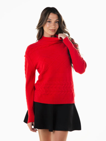 Camisola malha bege com mistura de lã para maior conforto térmico. Camisola oversize manga comprida com animal print em contraste. Acabamentos canelados. Decote redondo.