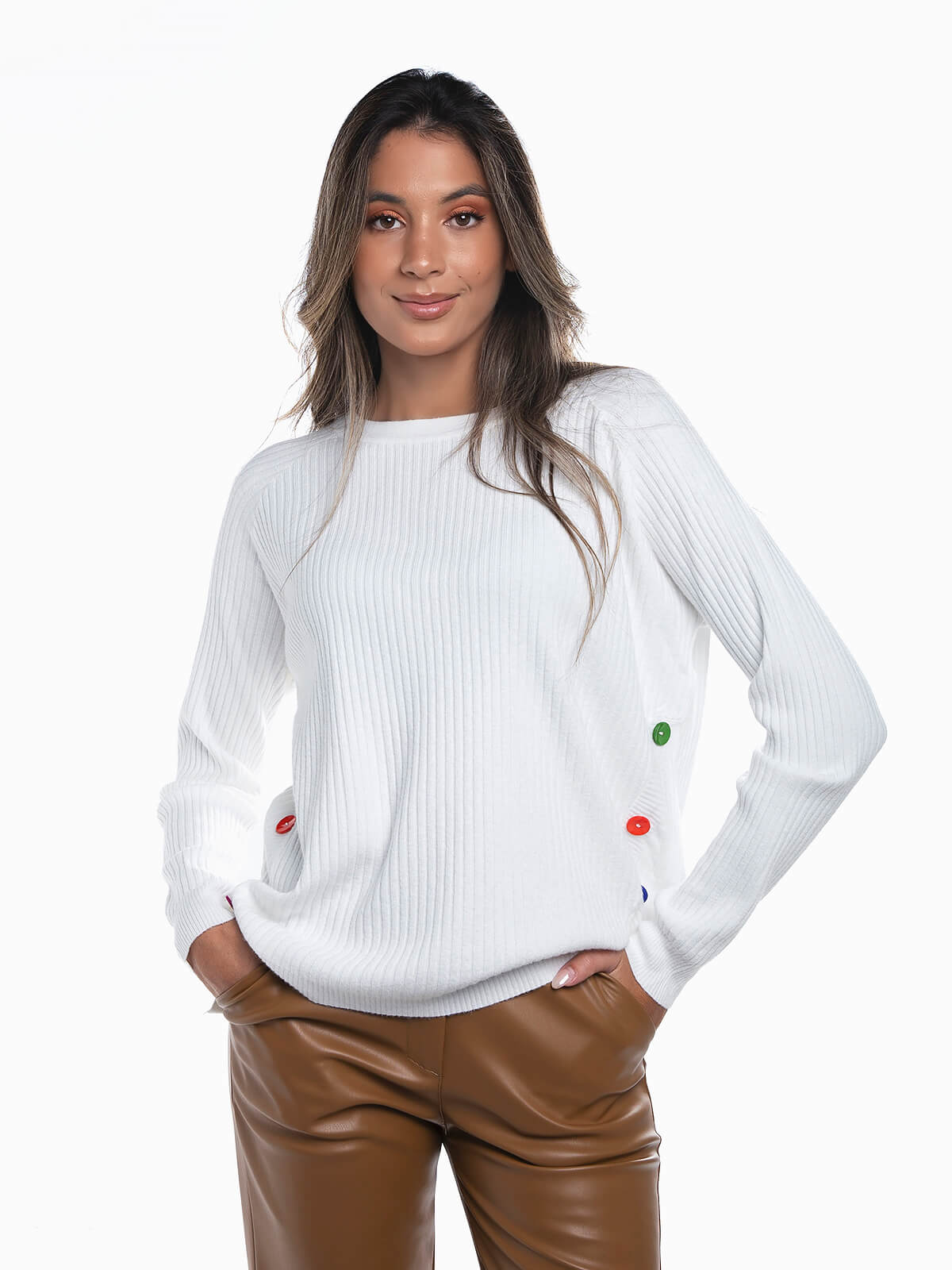 Camisola malha botões coloridos