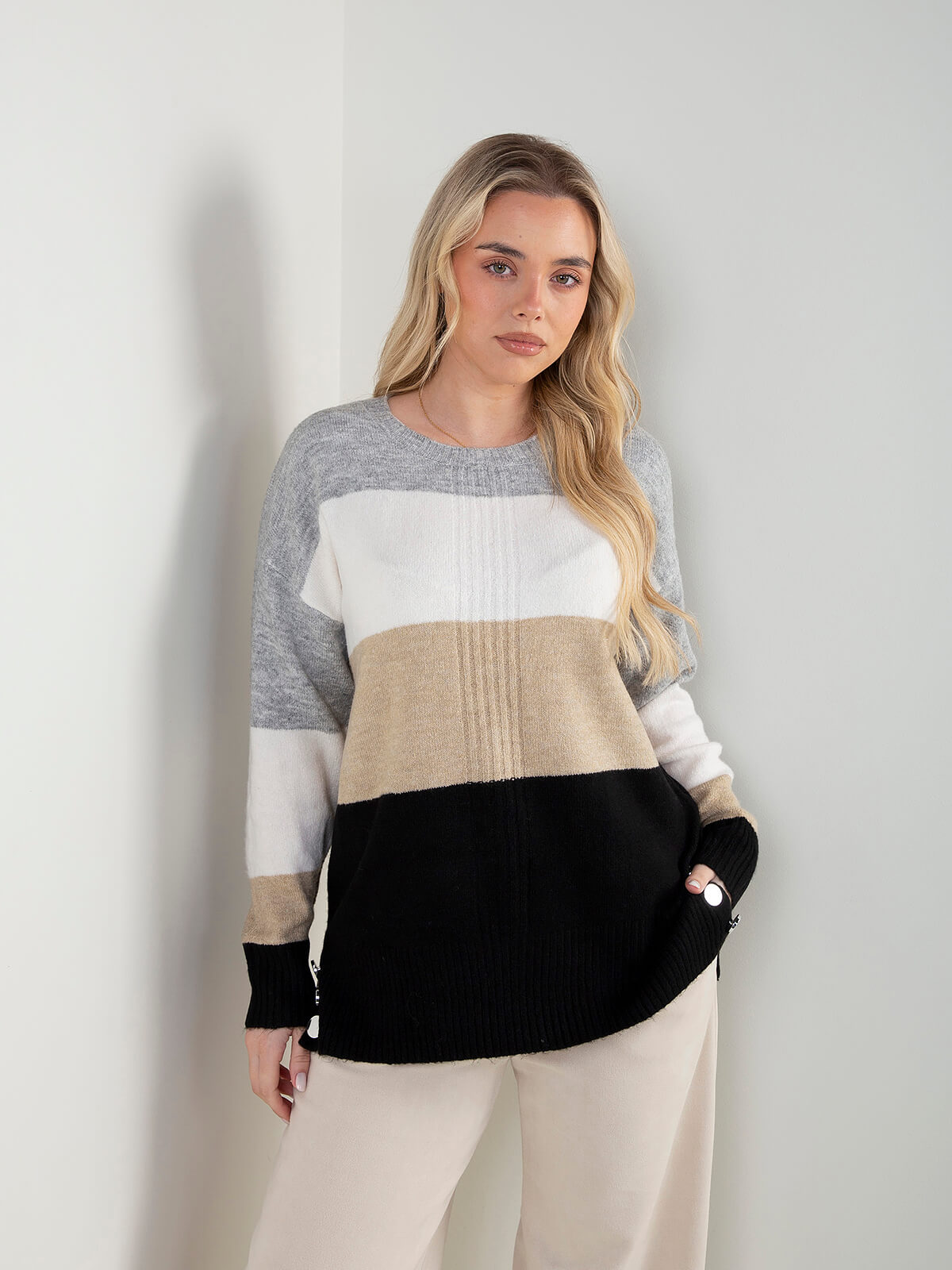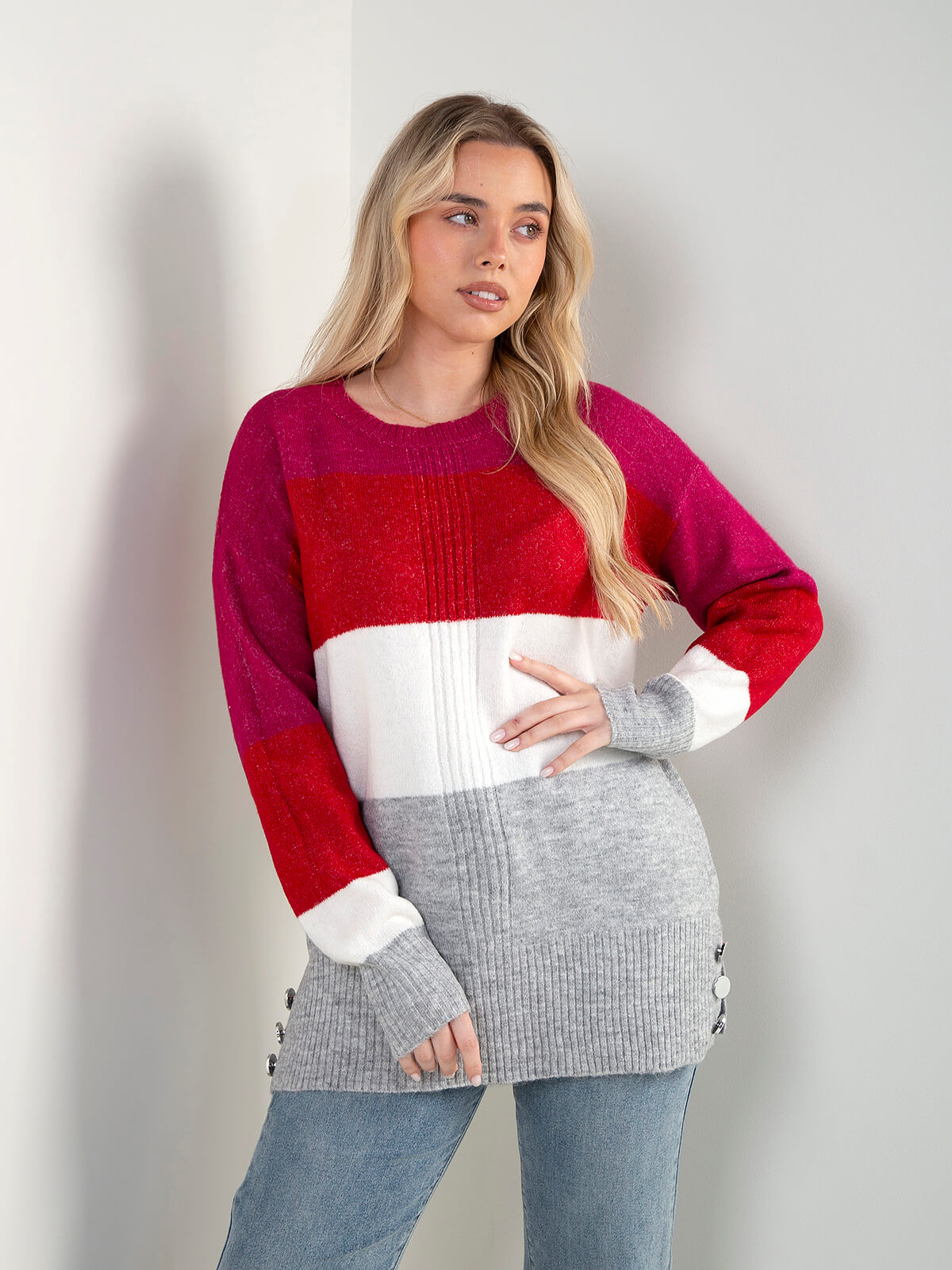 Início Mulher Malhas Camisolas Camisola malha color block com botões