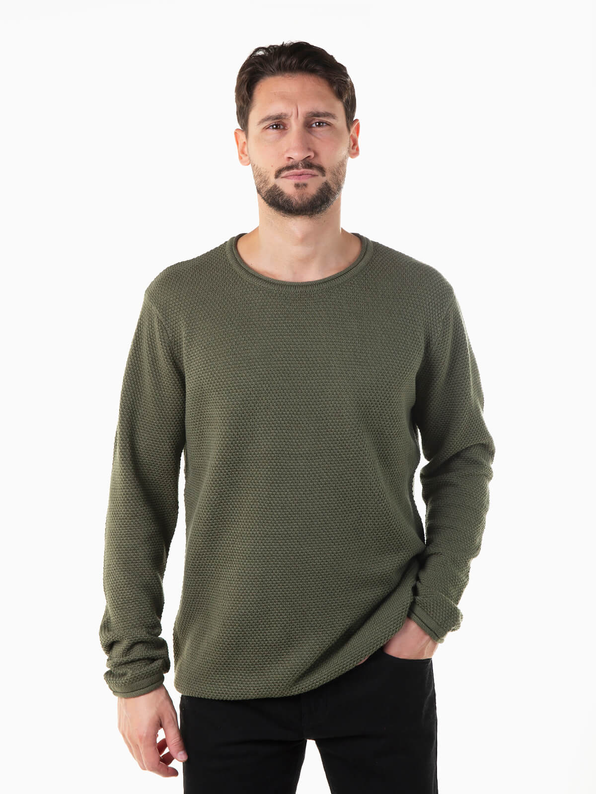Camisola em malha estruturada 100% algodão para maior conforto. Camisola manga comprida para homem com gola redonda e acabamento rolling.