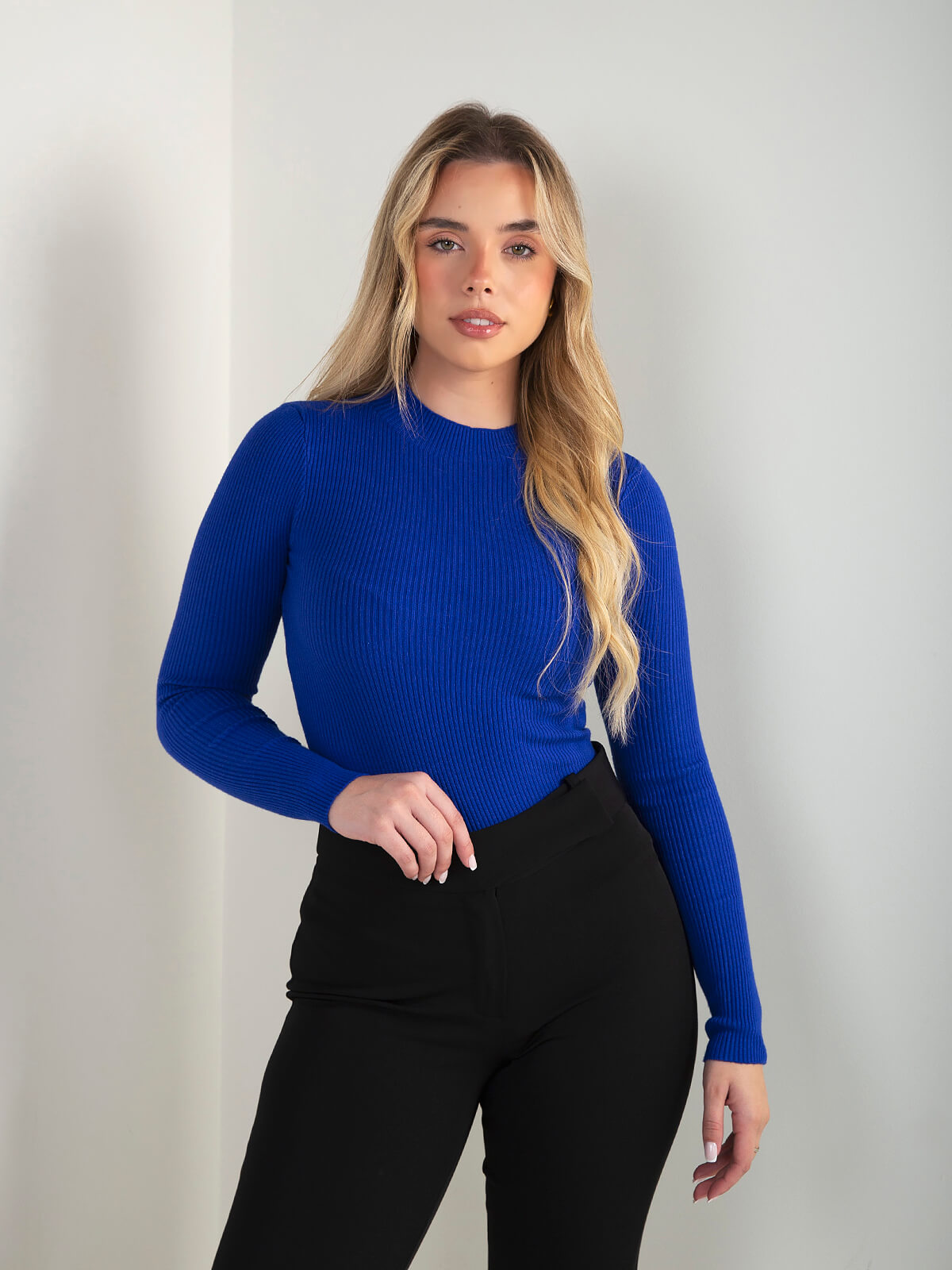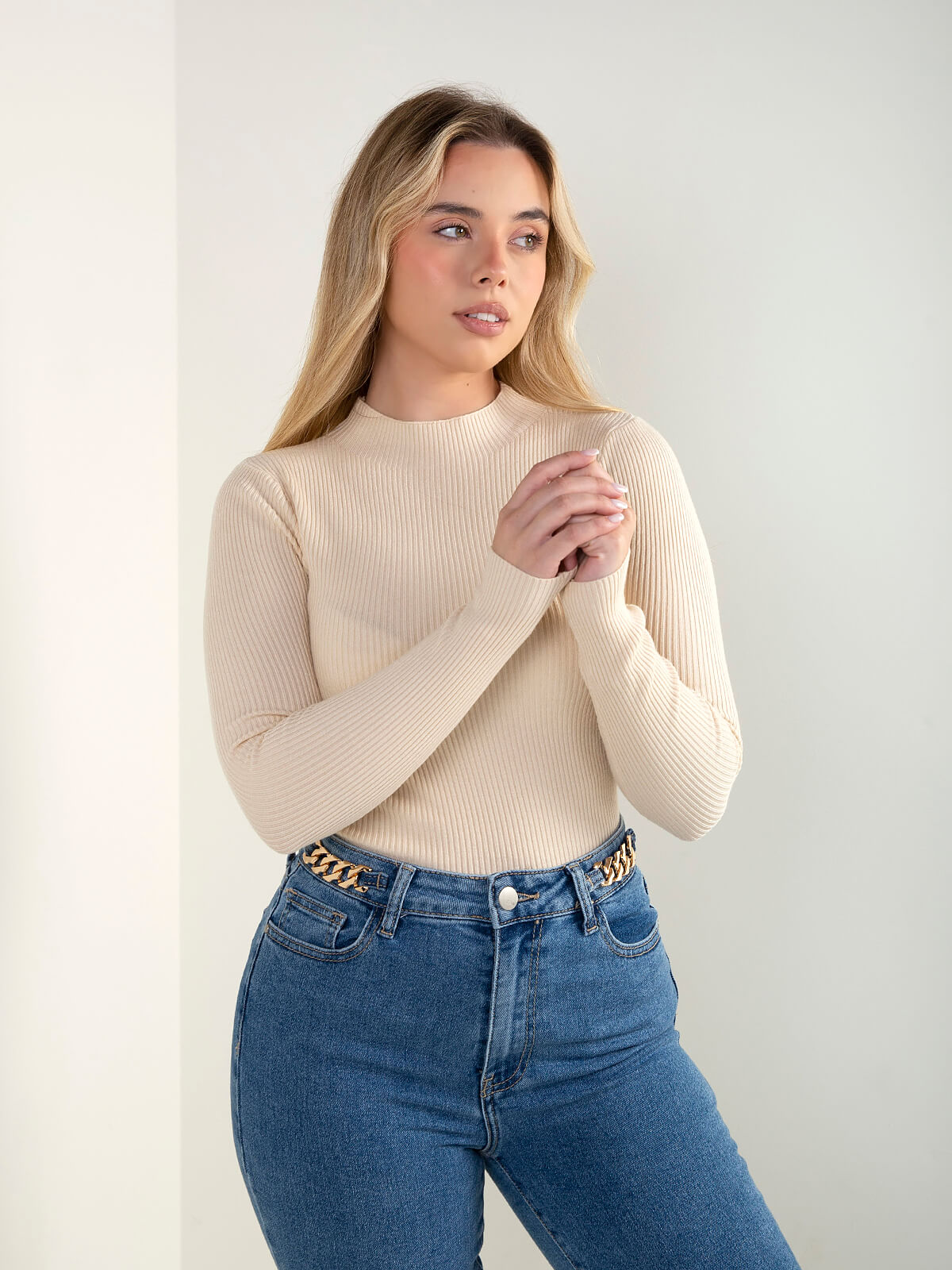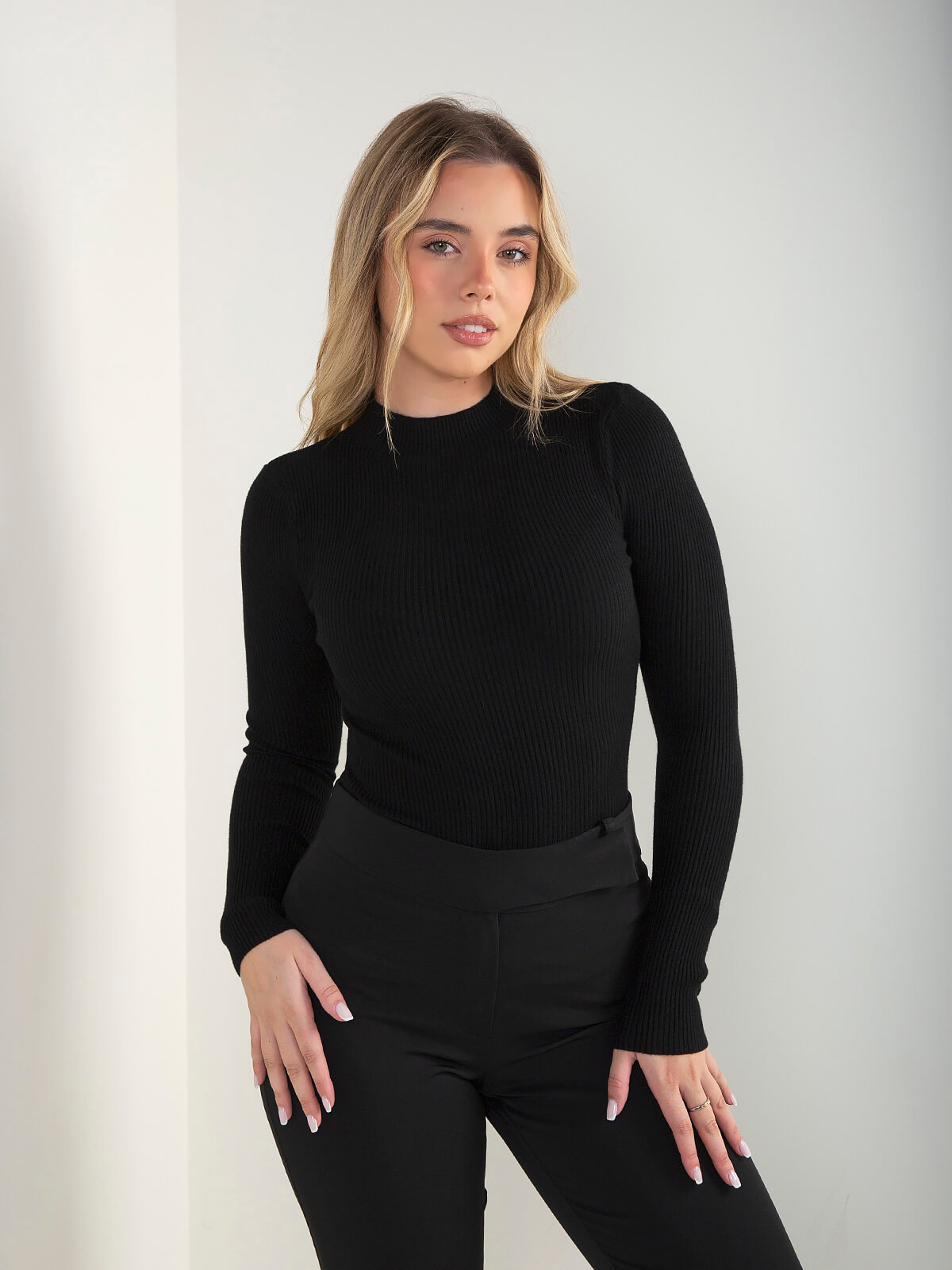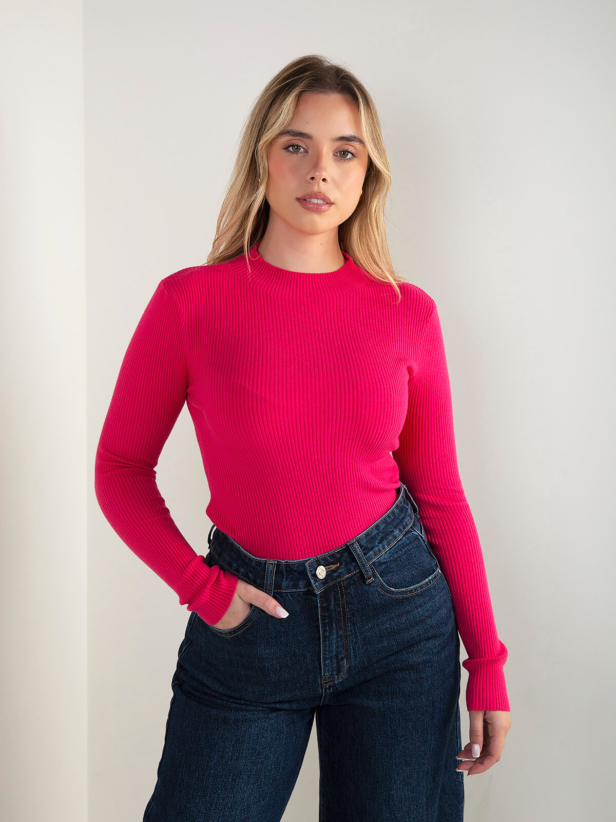 Camisola malha canelada com gola perkins e manga comprida. Modelo justo e confortável, ideal para looks simples e urbanos no dia a dia.