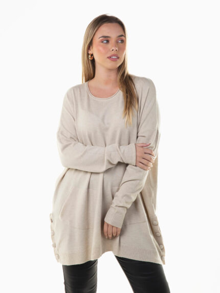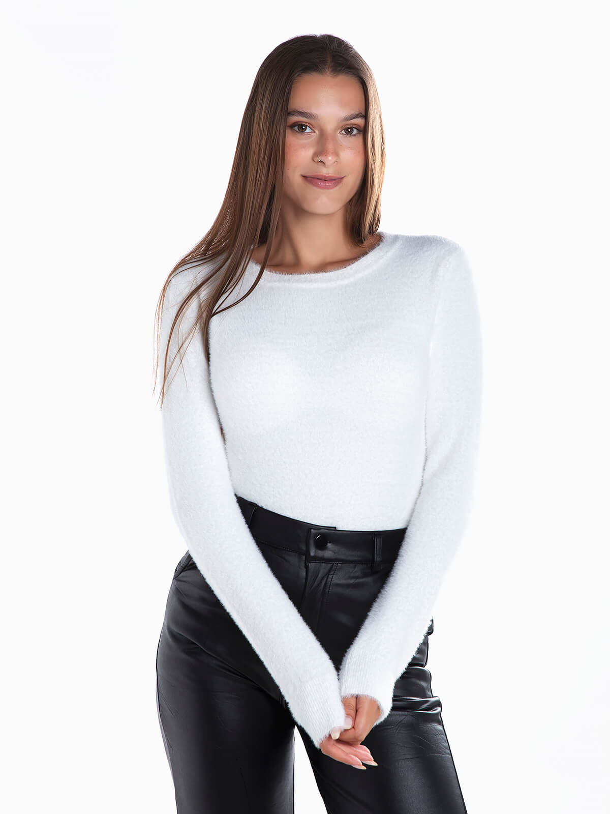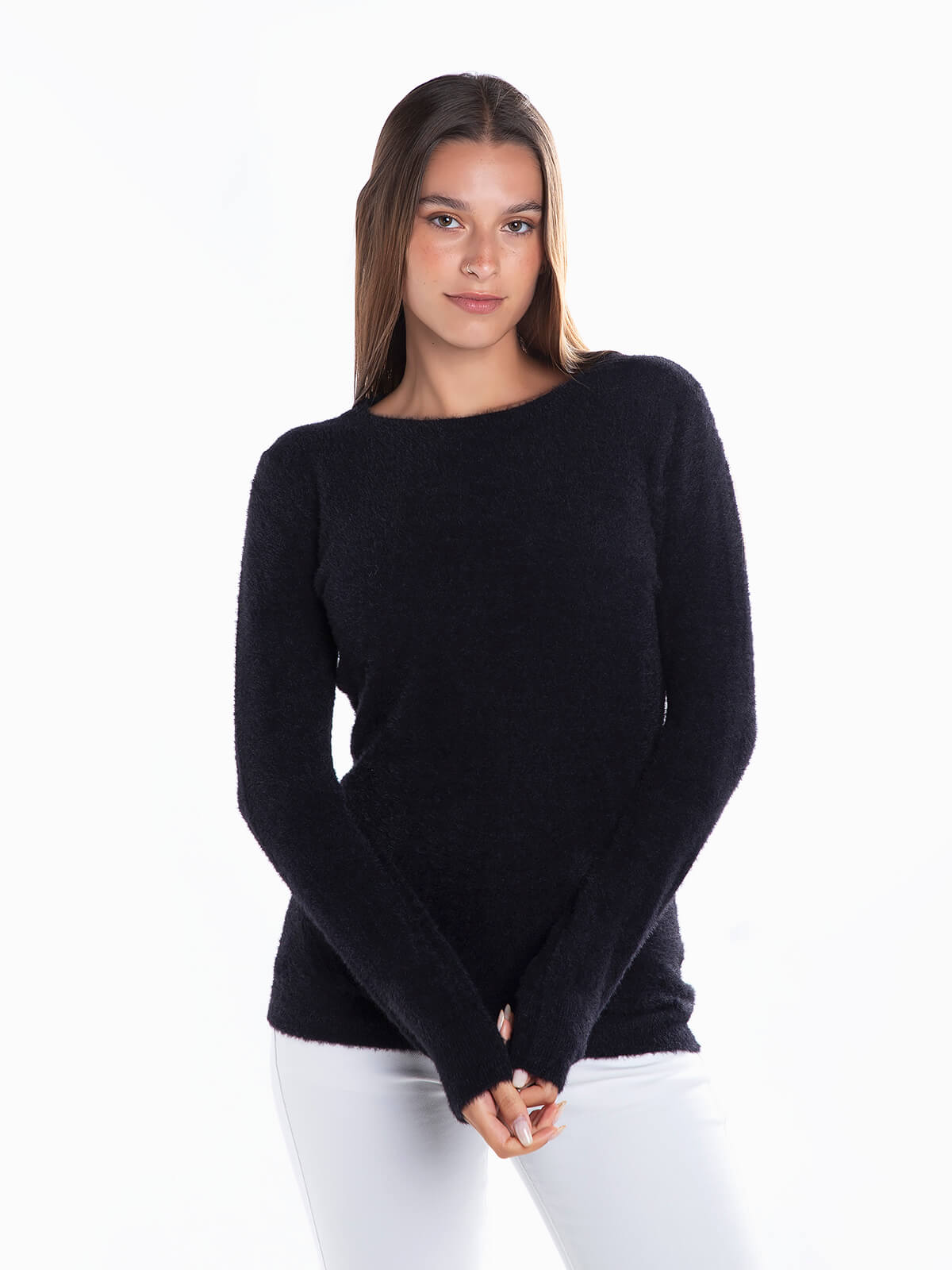 Camisola em malha com pelo de toque suave. Camisola manga comprida com decote redondo.