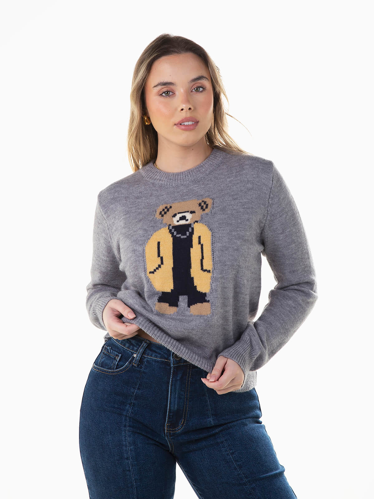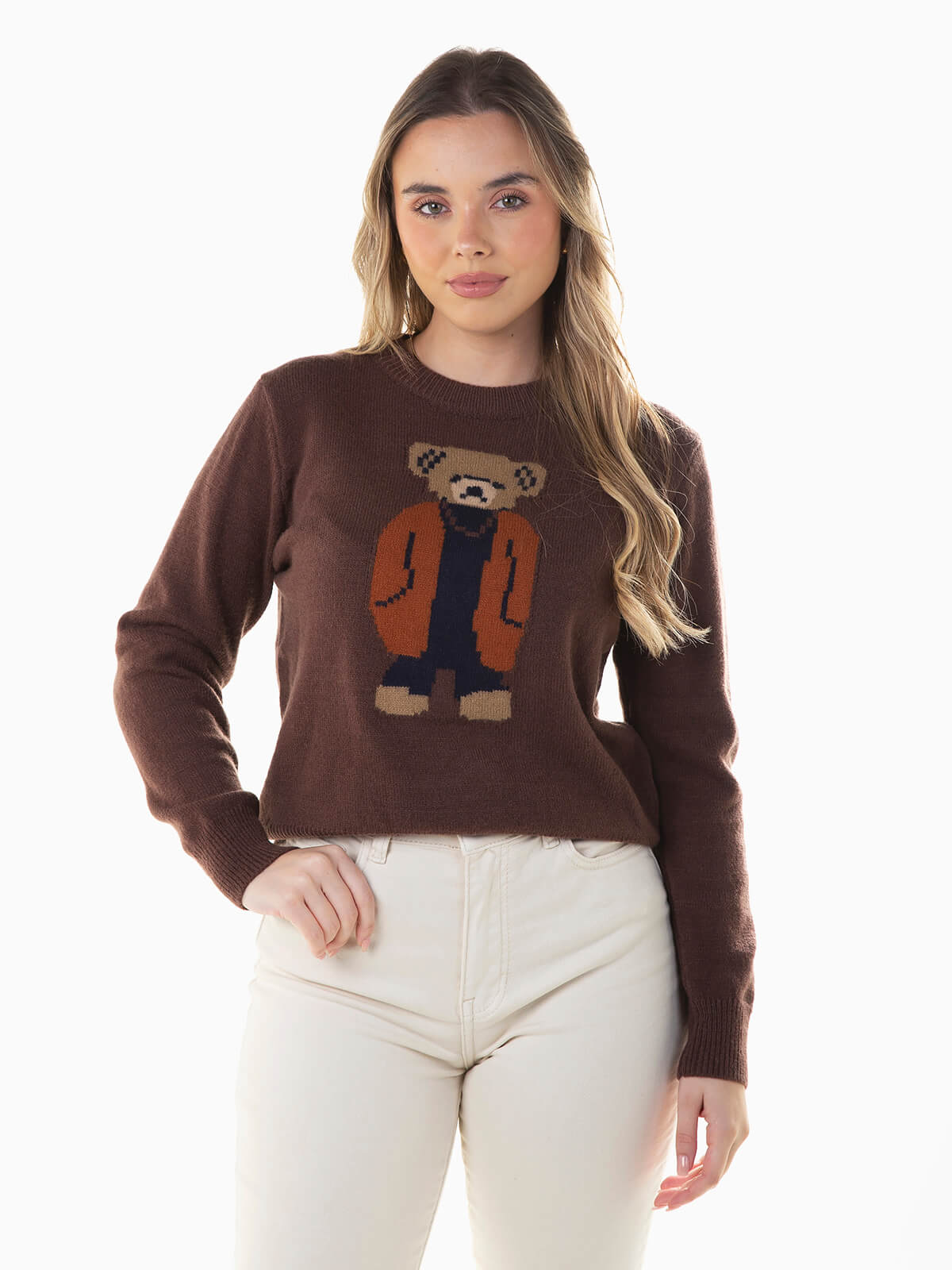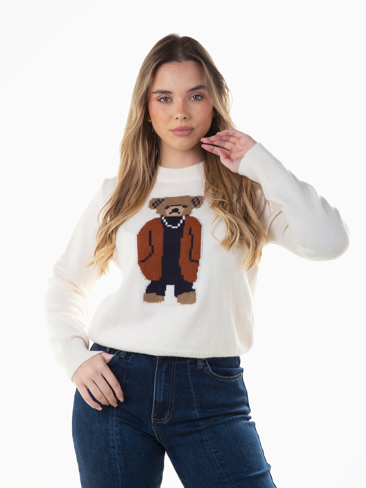 Camisola de malha com mistura de viscose para maior conforto. Camisola para mulher com urso no peito. Acabamentos canelados. Decote redondo.