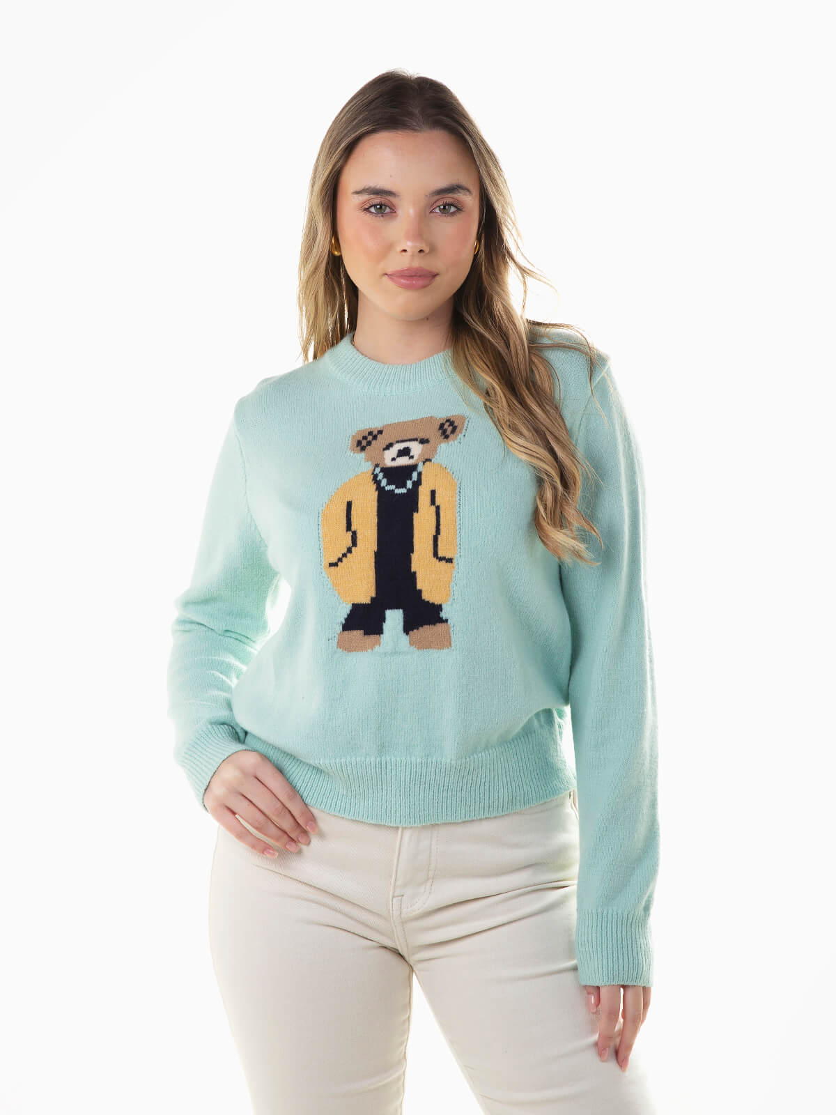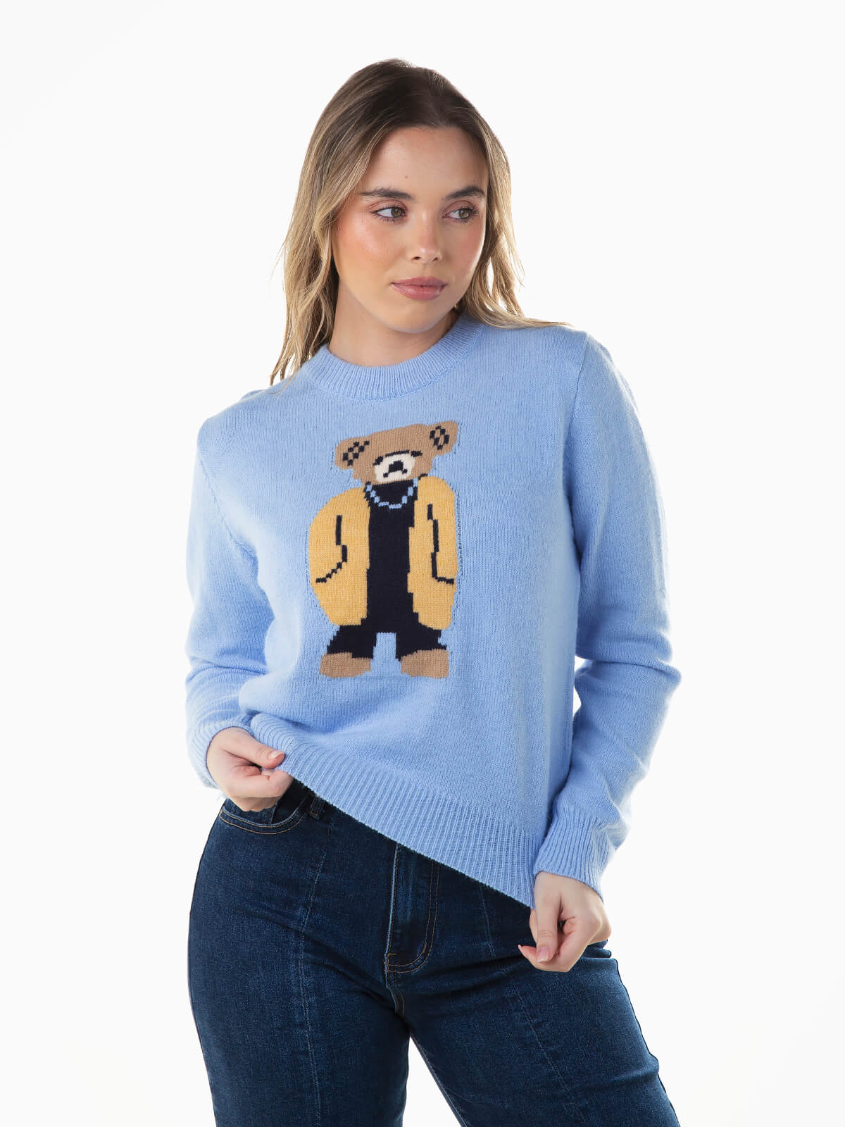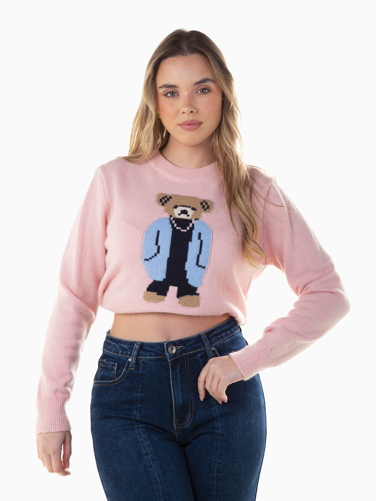 Camisola de malha com mistura de viscose para maior conforto. Camisola para mulher com urso no peito. Acabamentos canelados. Decote redondo.