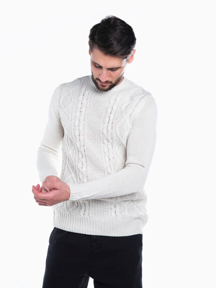 Camisola de malha combinada com relevo para homem. Camisola de manga comprida com gola redonda. Acabamentos em nervuras.