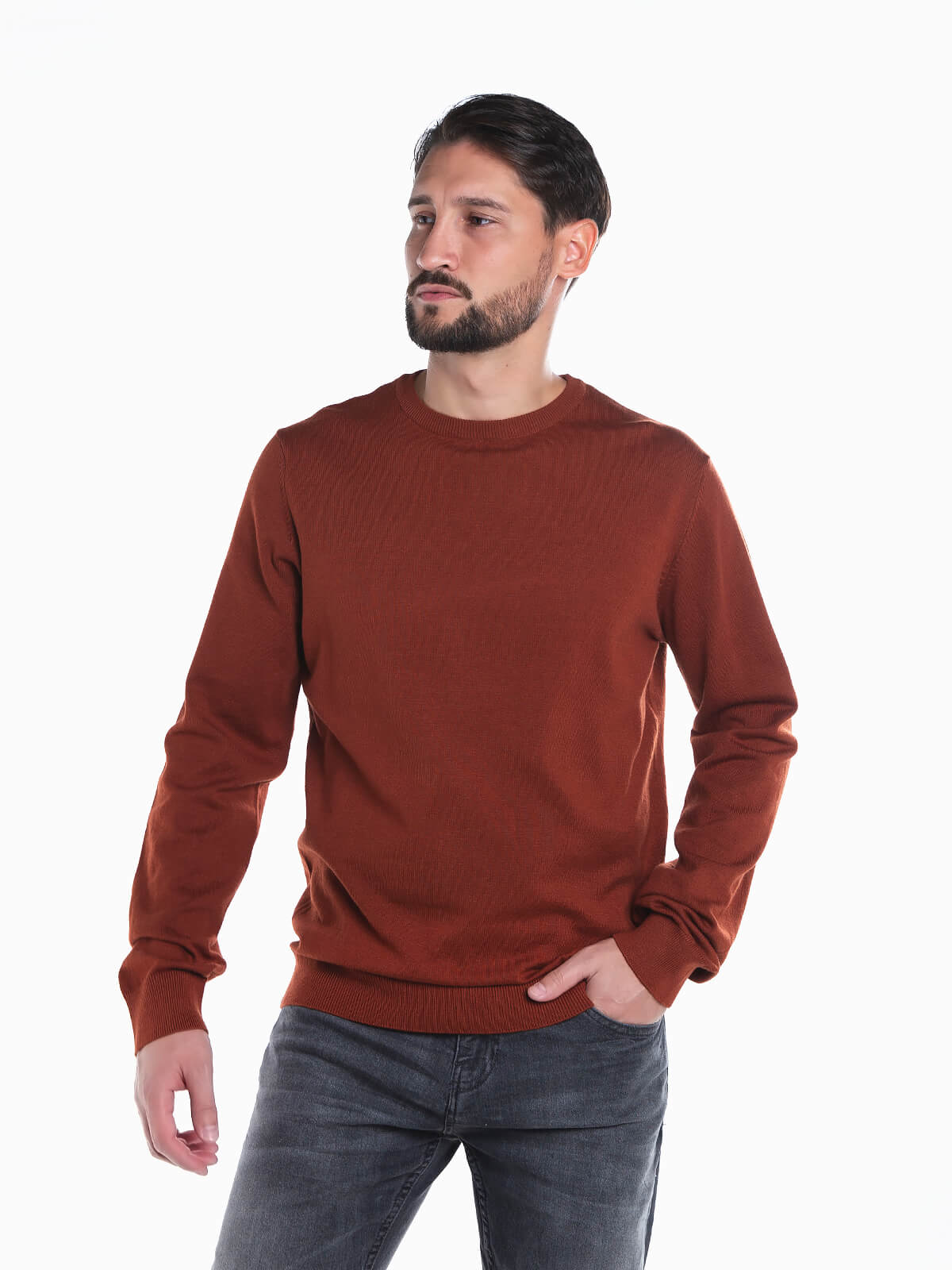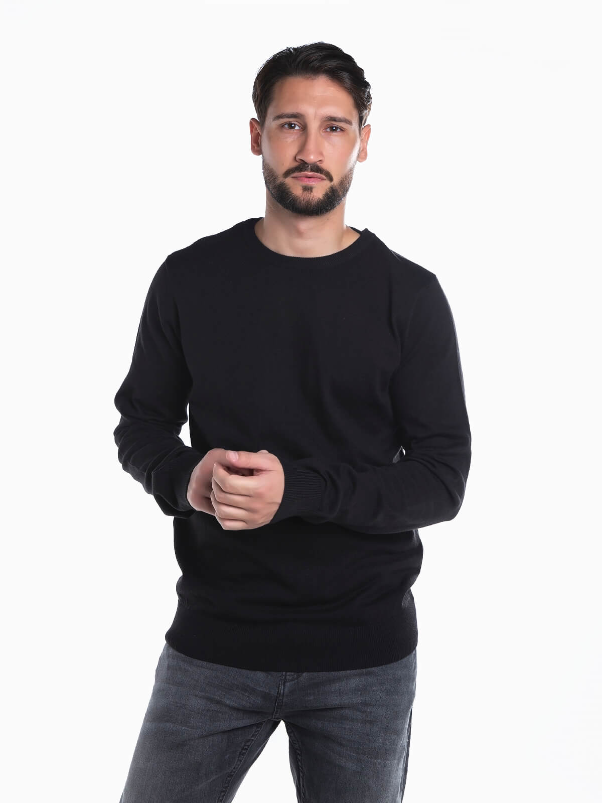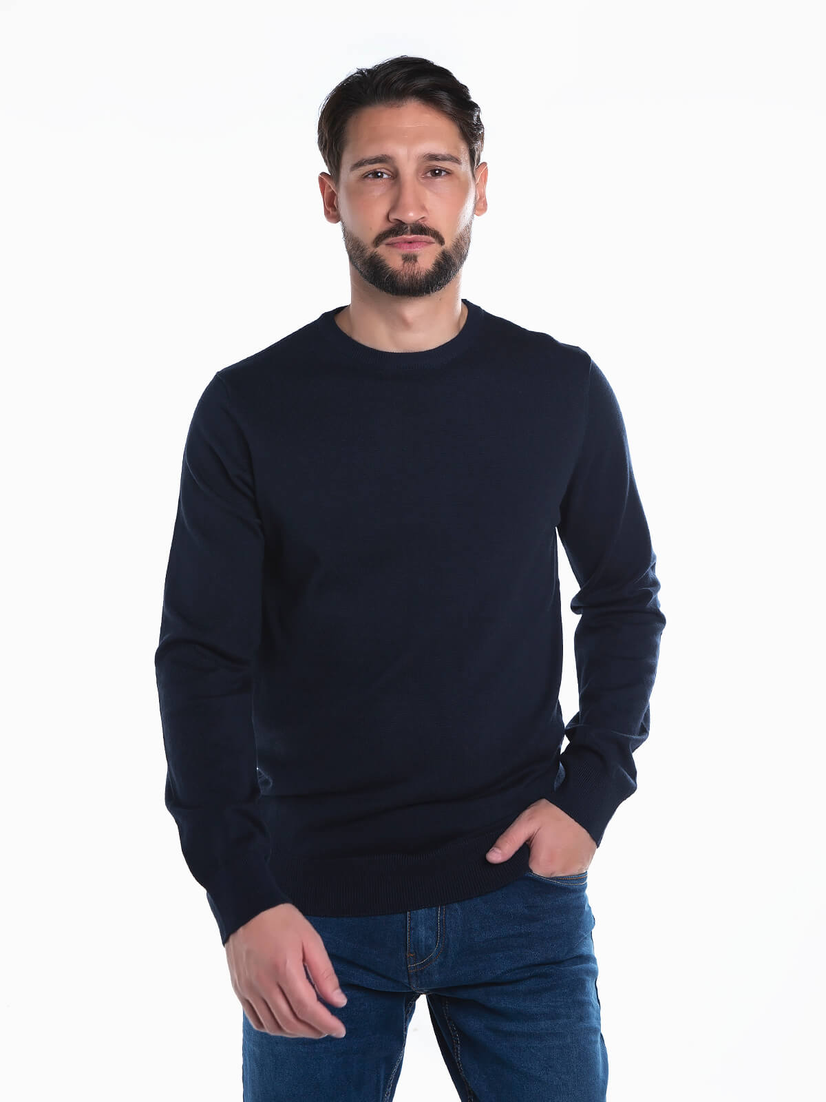 Camisola de malha com decote redondo para homem. Camisola manga comprida com acabamentos canelados.