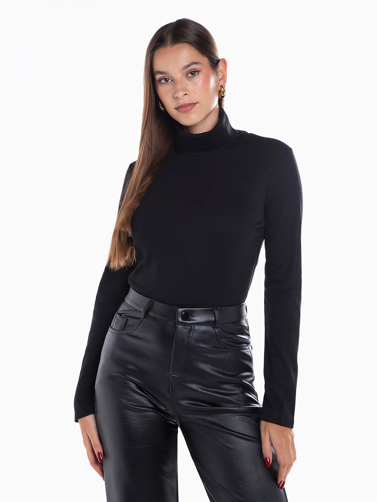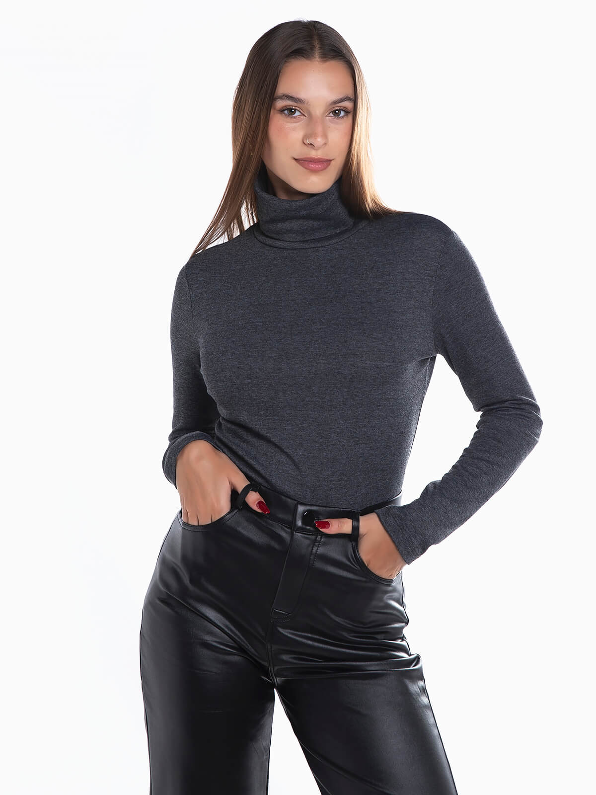 Camisola malha elástica gola alta