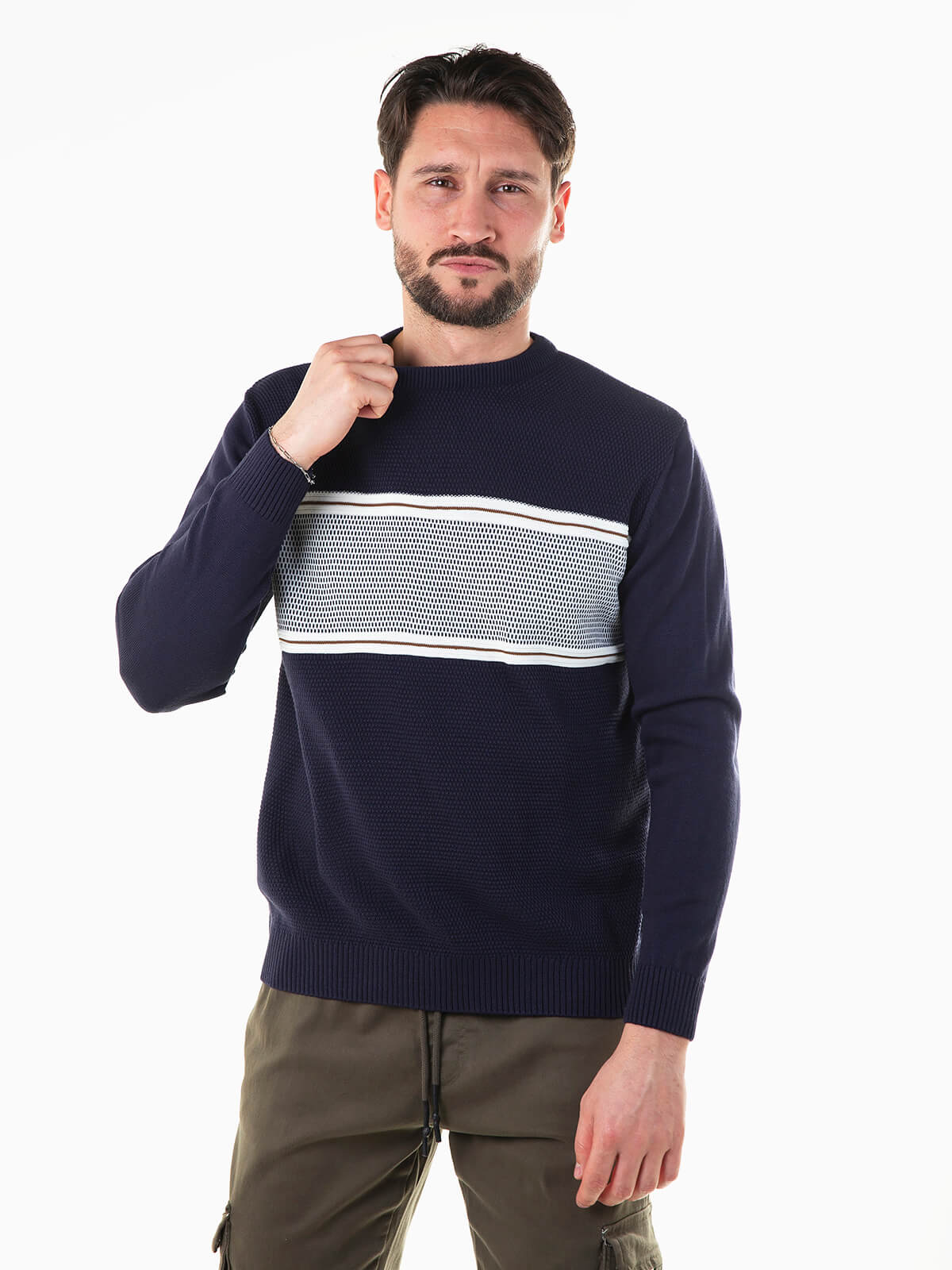 Camisola malha estruturada com color block para homem. Camisola de manga comprida com acabamentos canelados. Gola redonda.