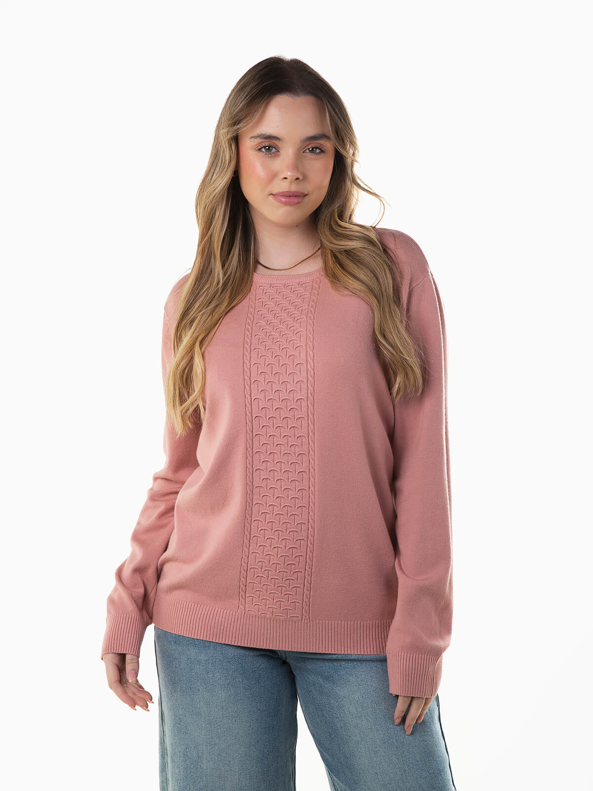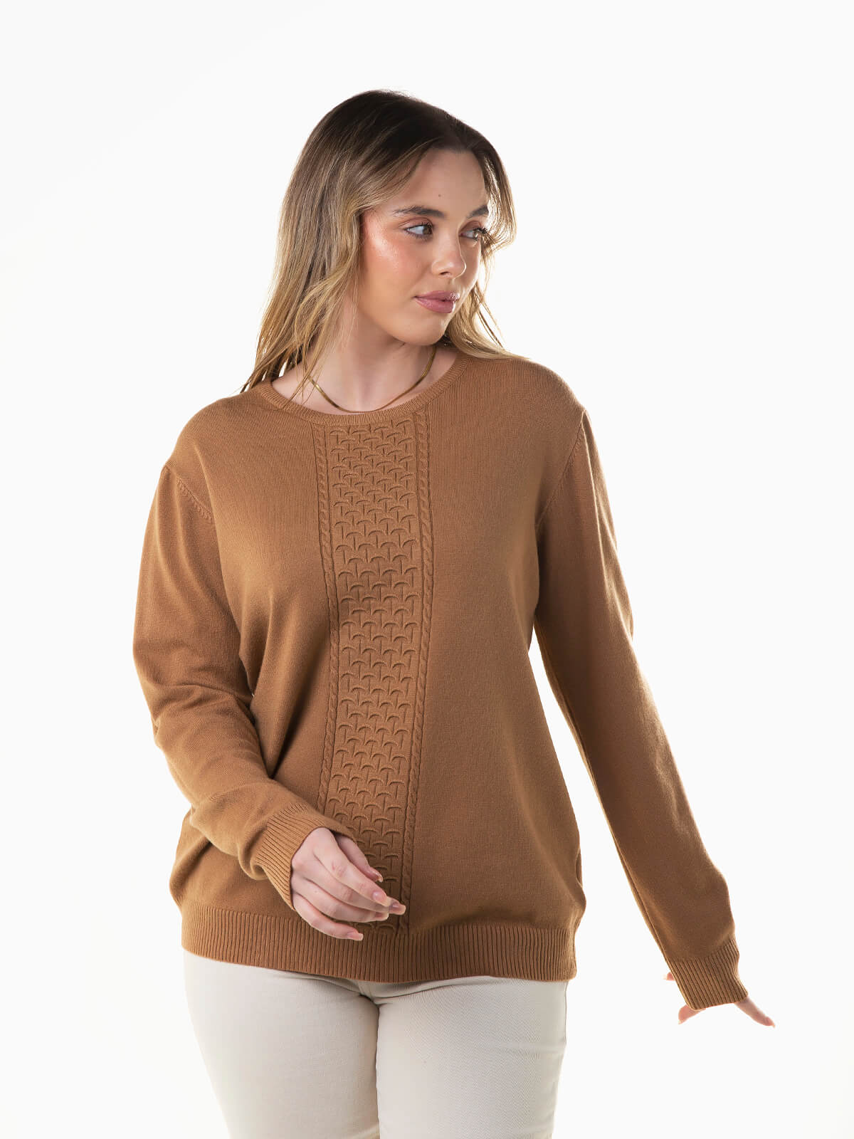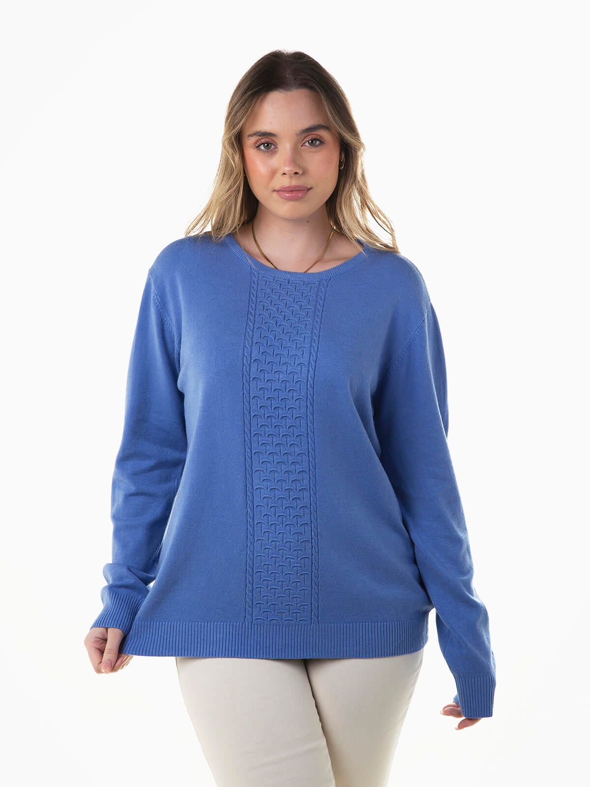 Camisola em malha fina estruturada com mistura de viscose para maior conforto e durabilidade. Camisola de manga comprida para senhora com decote redondo e acabamentos canelados.