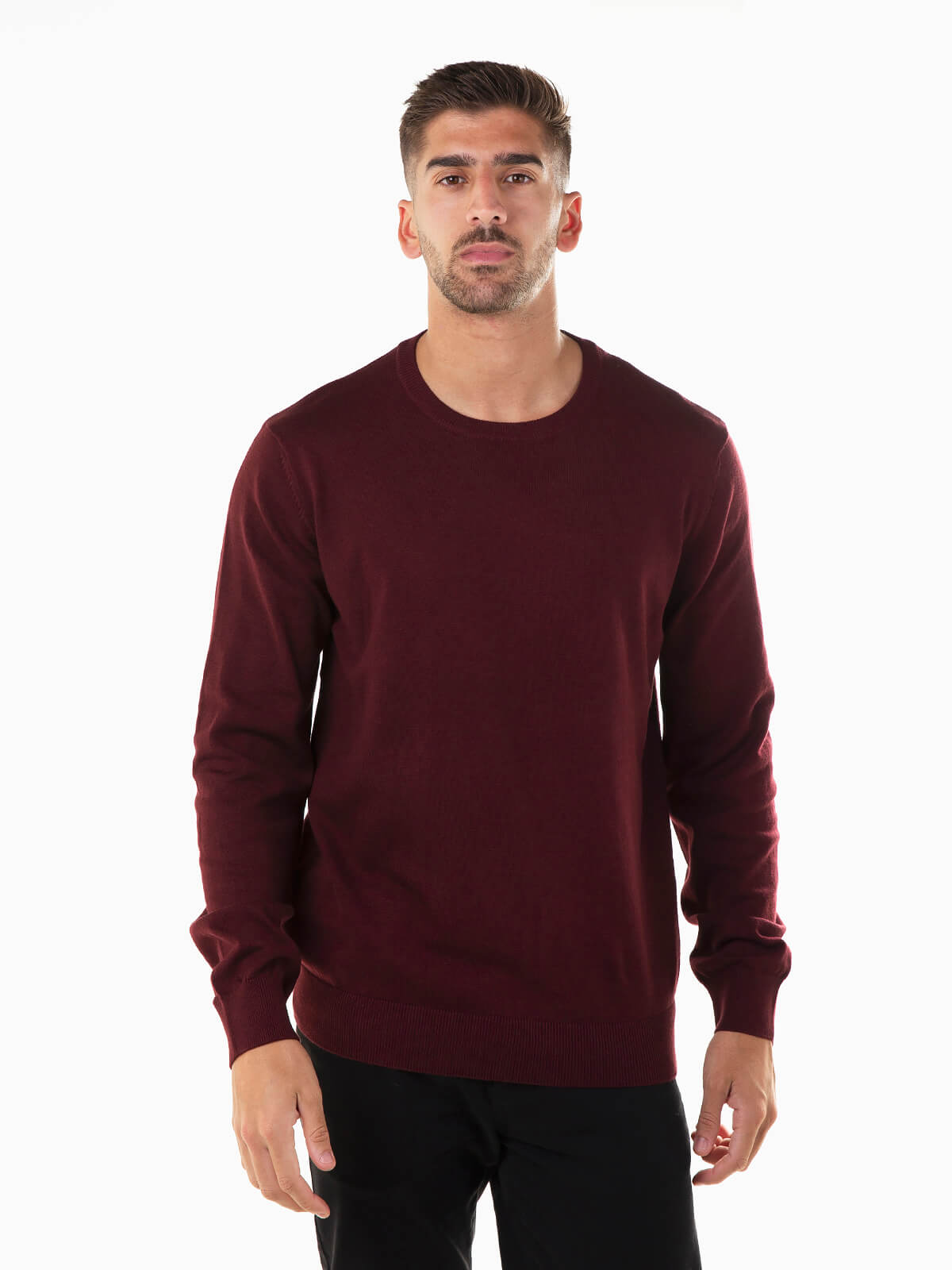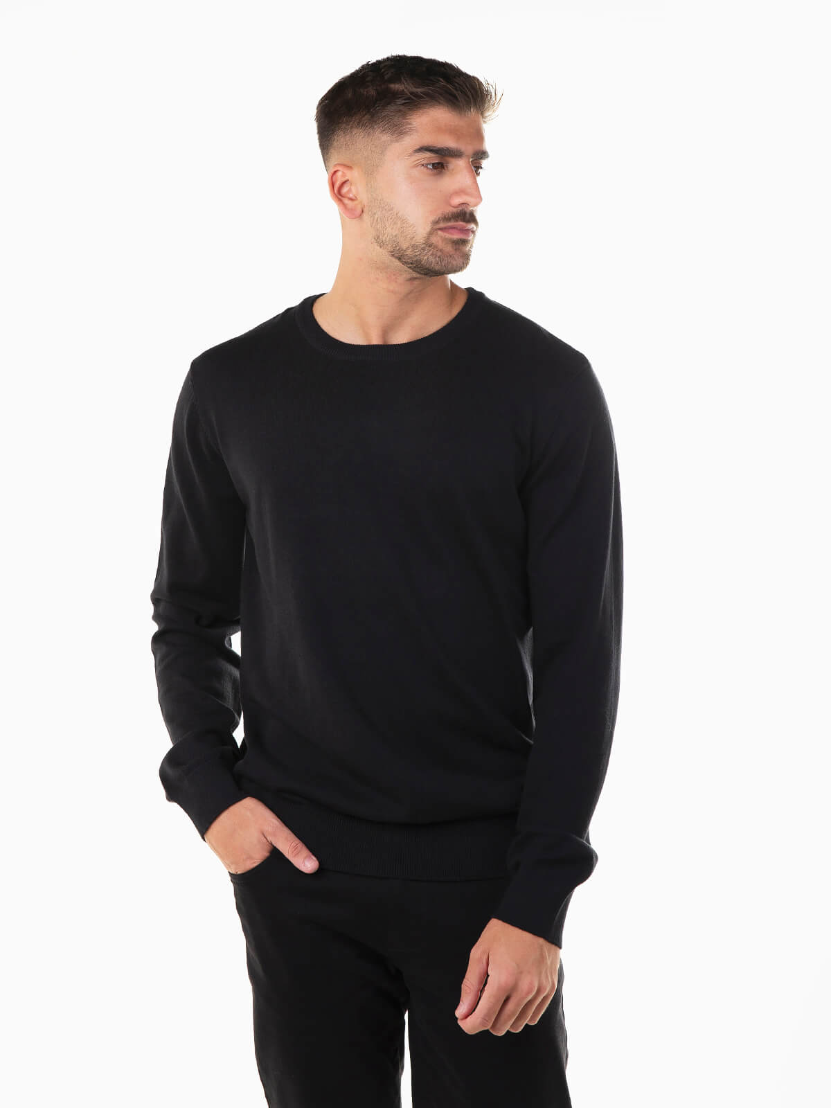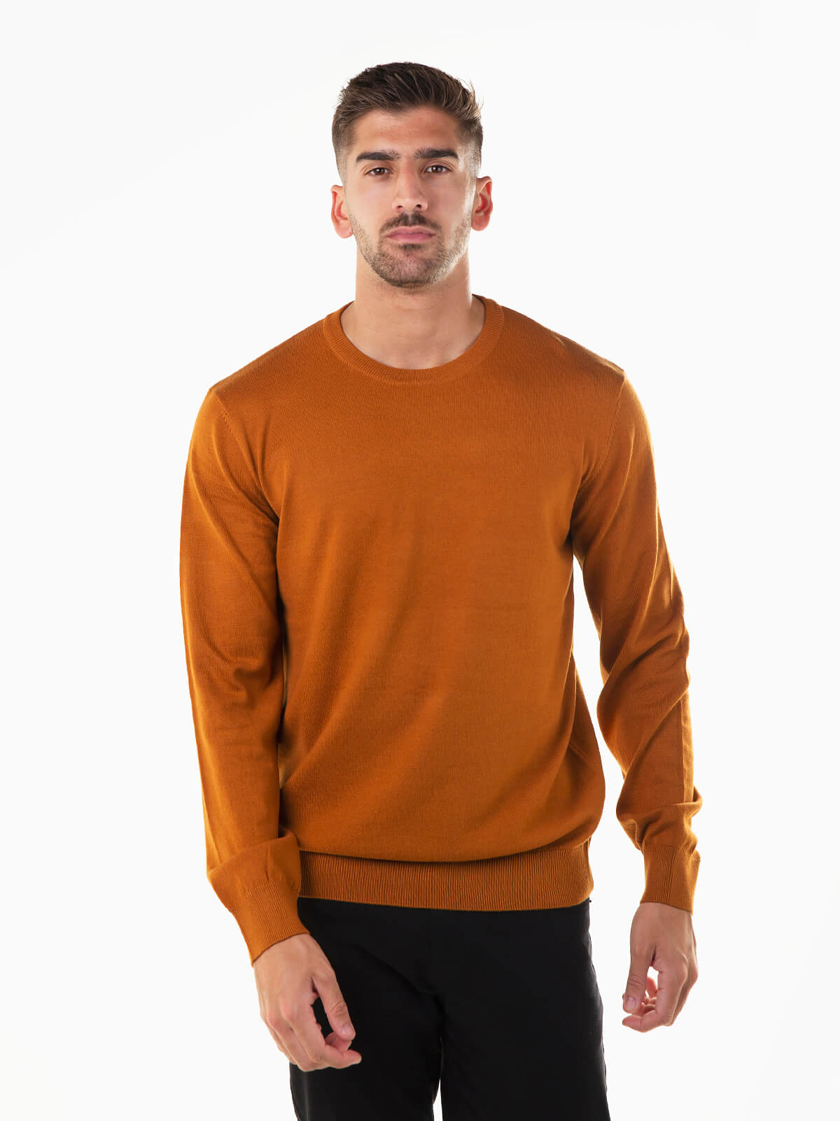 Camisola em malha fina com mistura de algodão para maior conforto. Camisola de manga comprida para homem com gola redonda e acabamentos canelados.