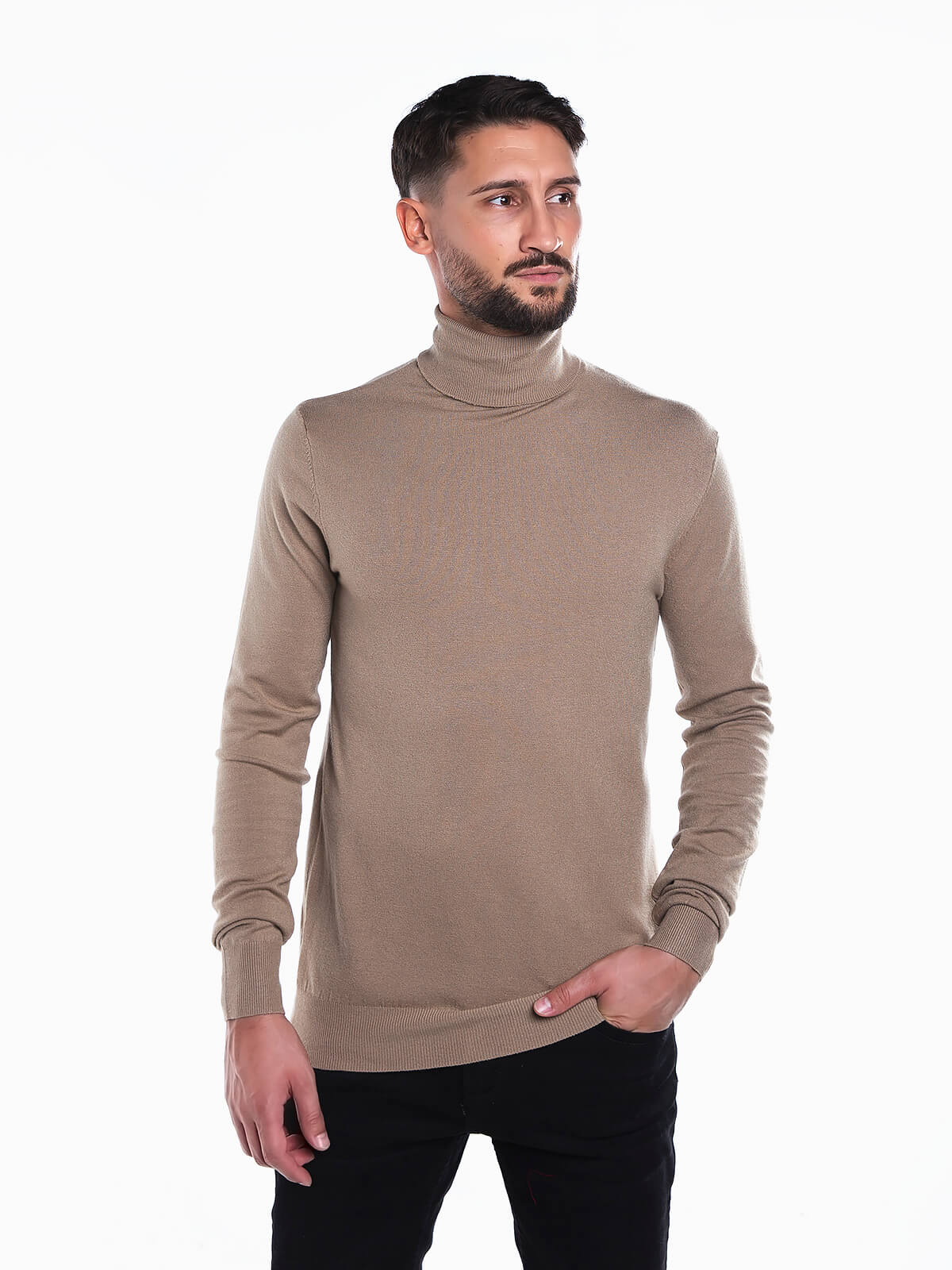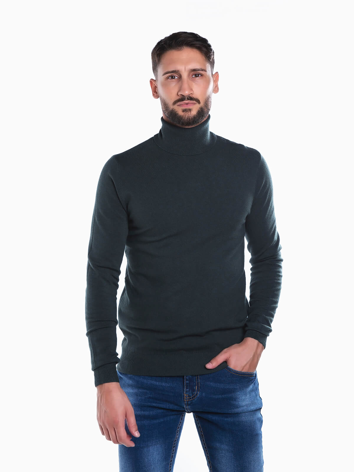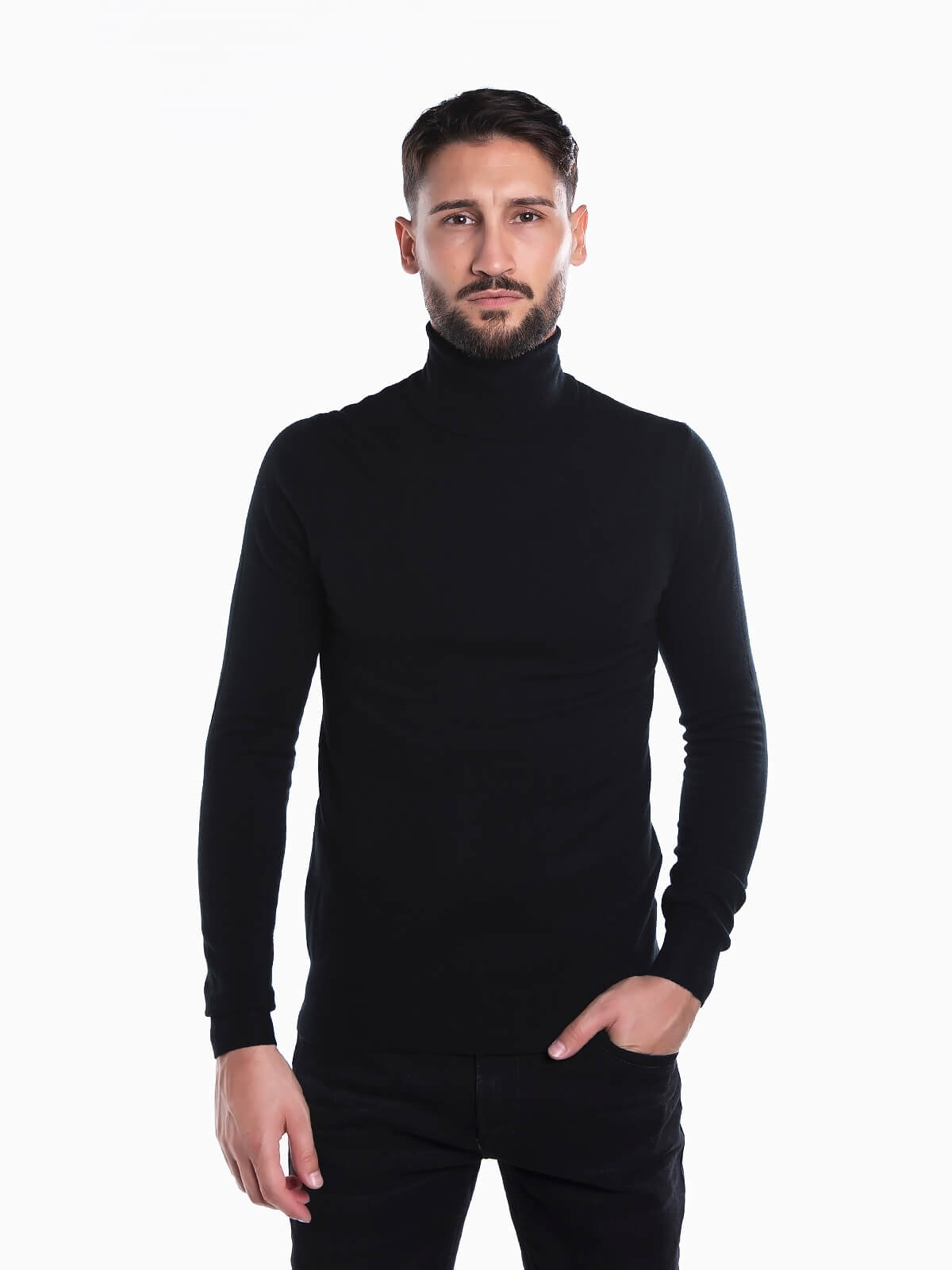 Camisola de malha com gola alta para homem. Camisola de corte slim com acabamentos canelados. Manga comprida.