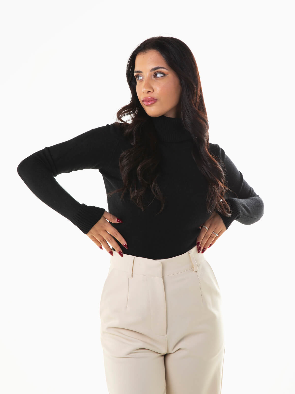 Início Mulher Malhas Camisolas Camisola malha gola alta canelada