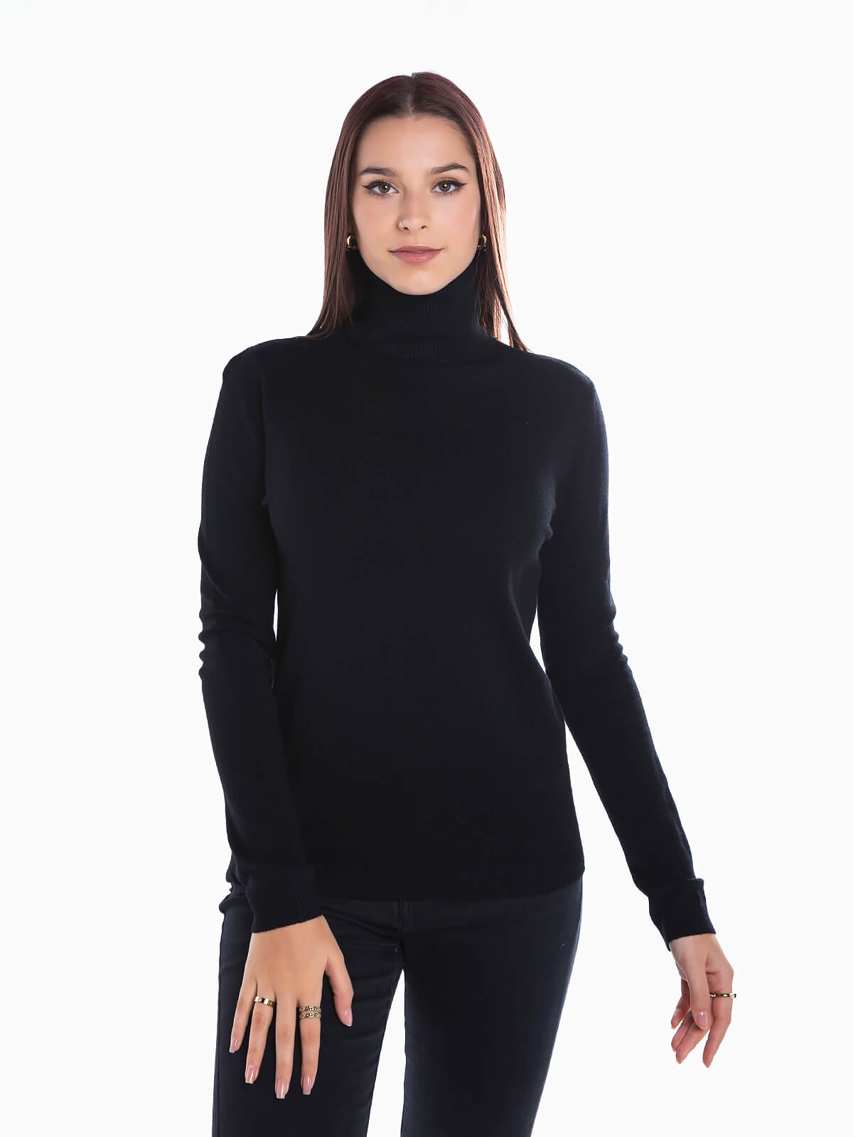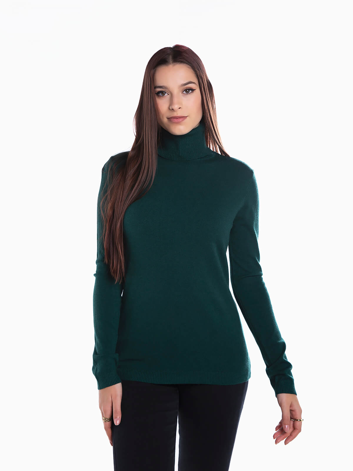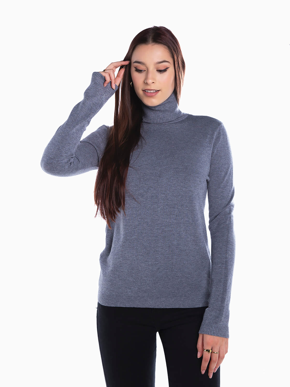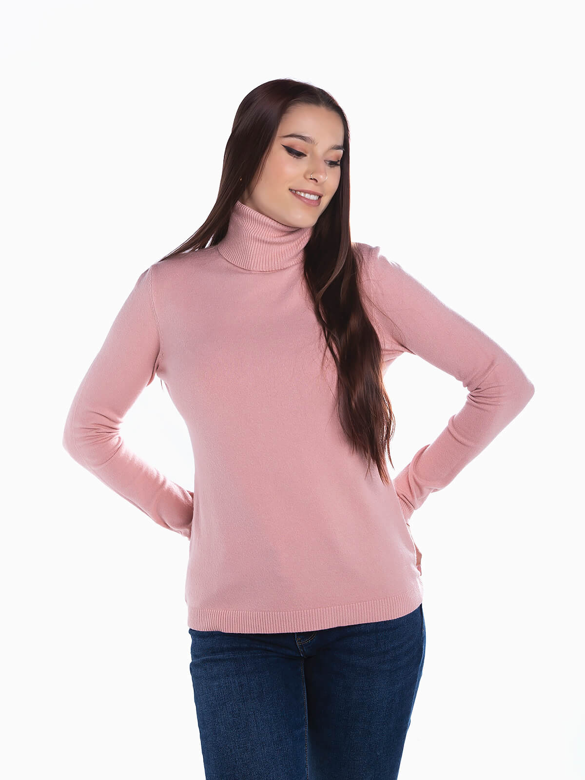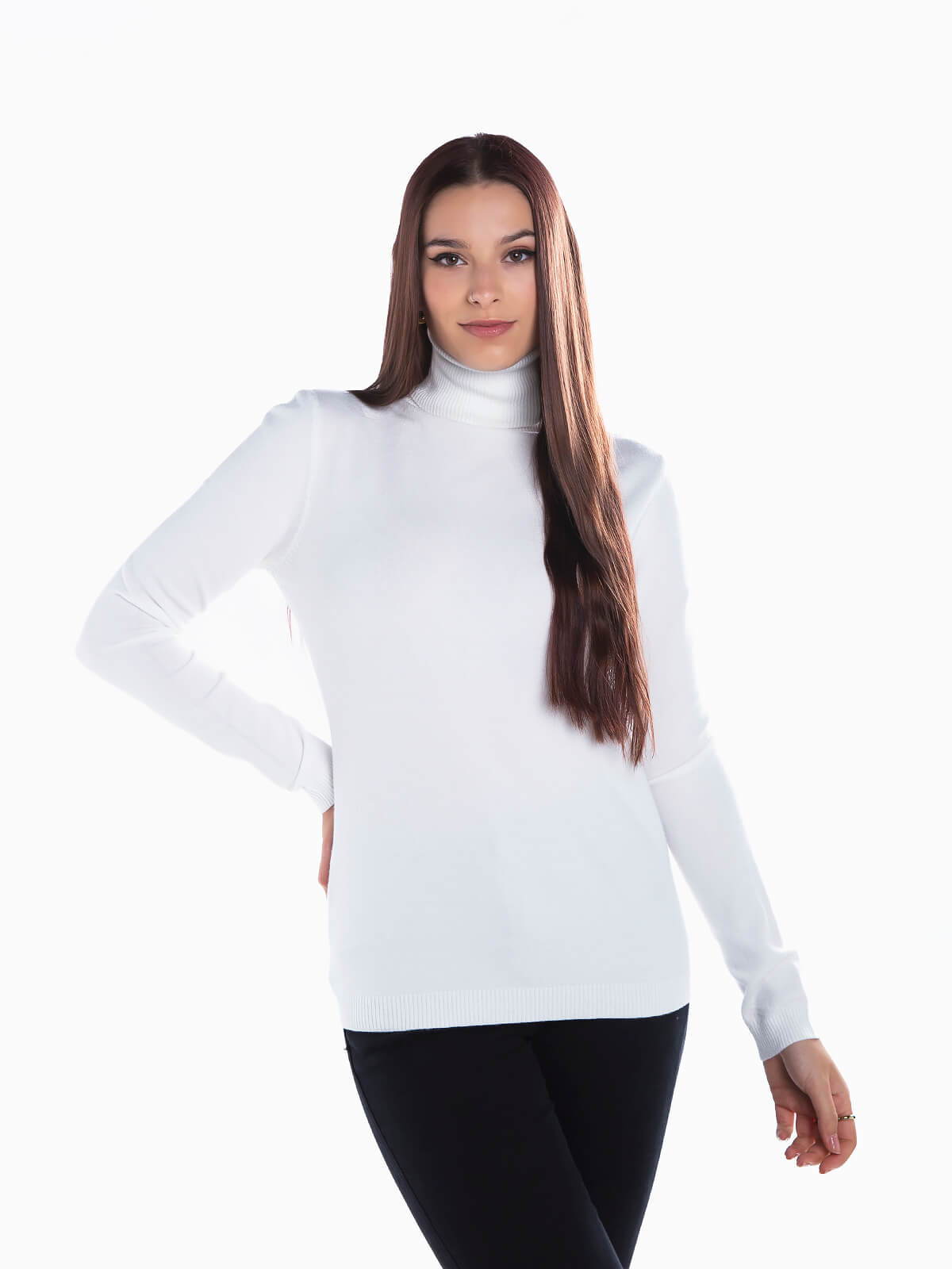 Camisola de malha com gola alta, punhos e base canelados. Camisola lisa de manga comprida ultrasuave para senhora.