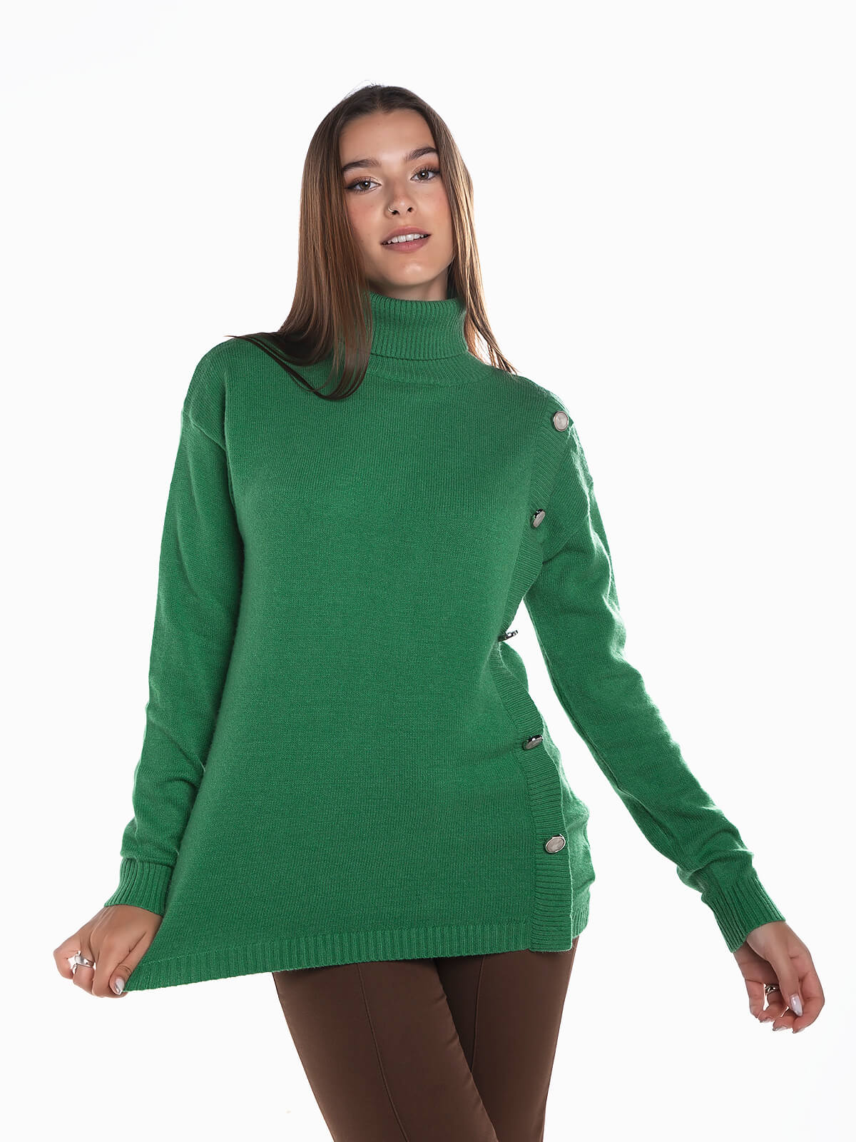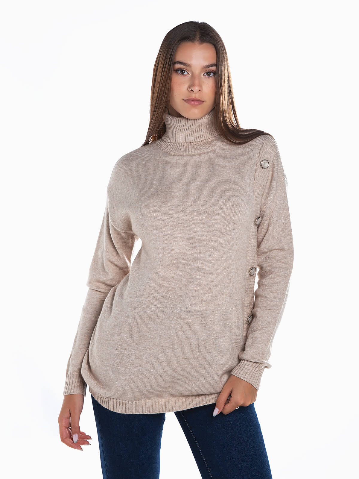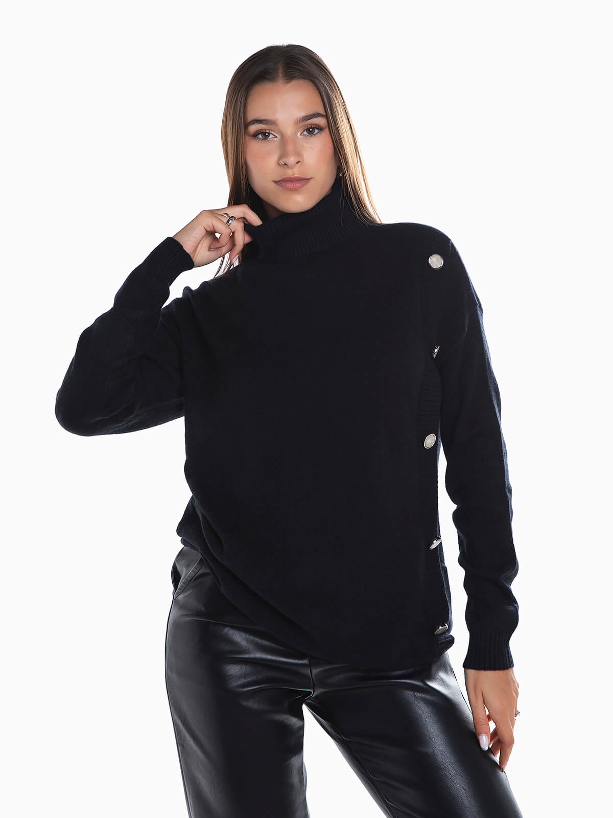 Camisola malha gola alta com botões