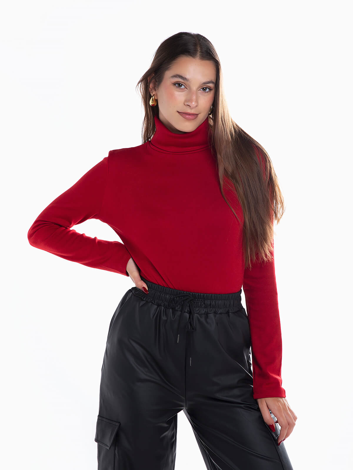 Camisola malha gola alta dobrada