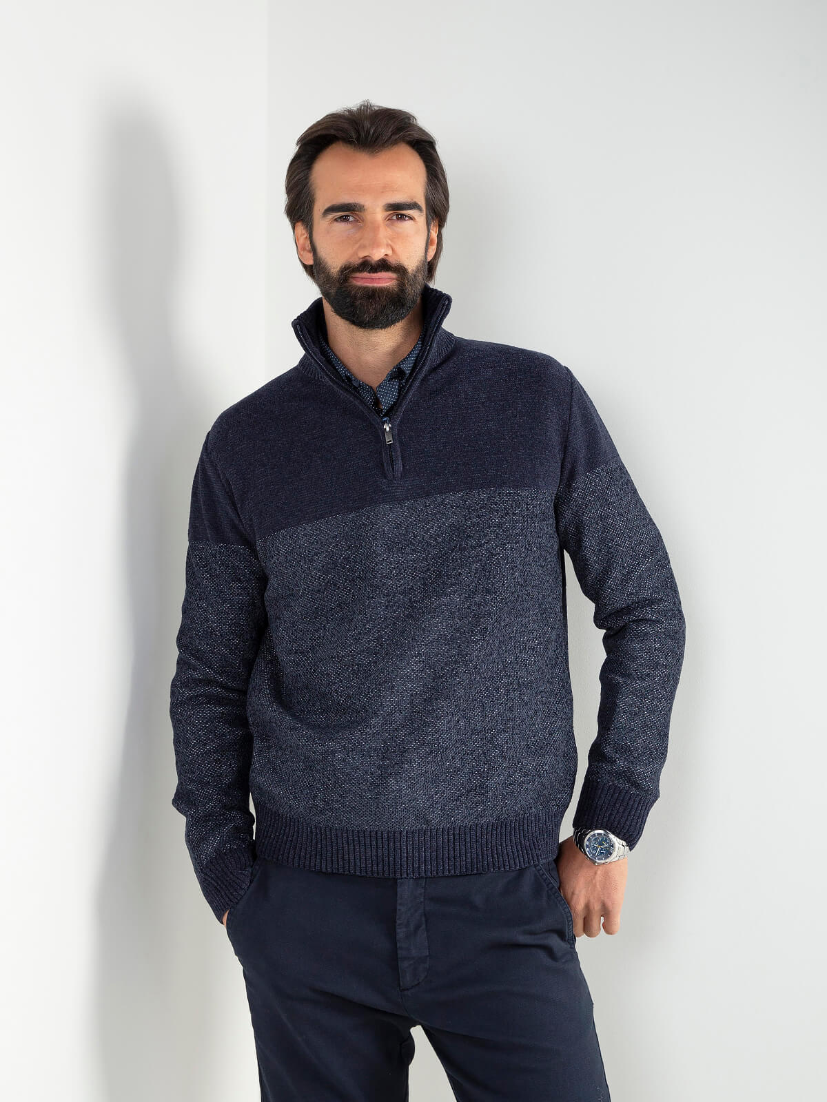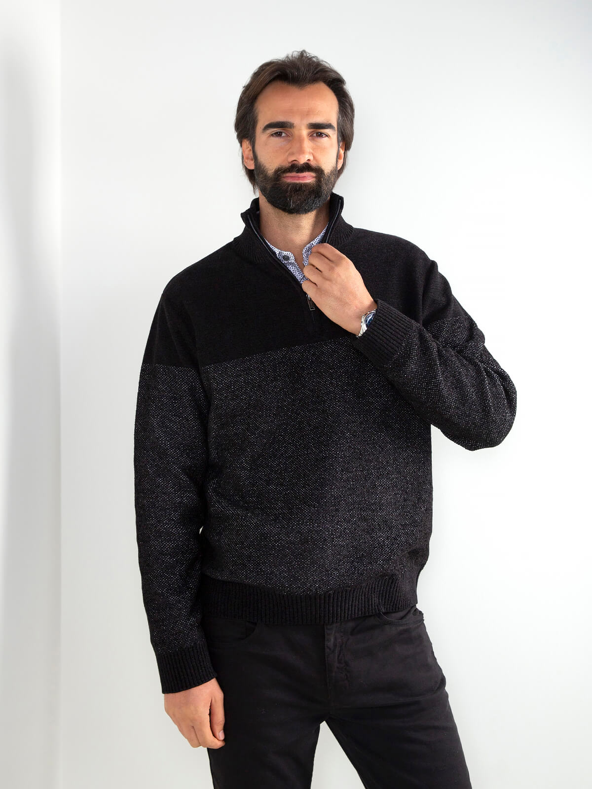 Início Homem Malhas Camisola malha mesclada com fecho