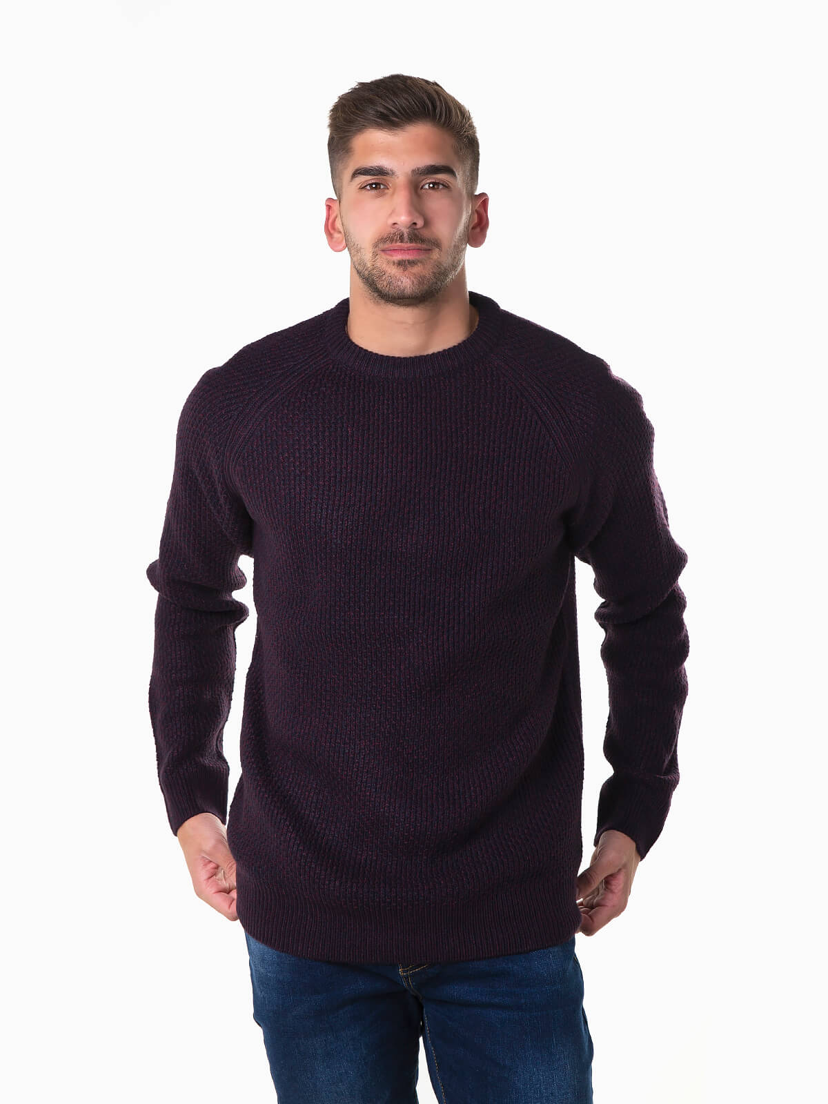 Camisola malha mesclada com manga comprida raglan. Camisola para homem com gola redonda e acabamentos canelados.