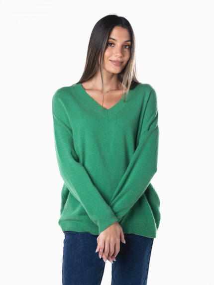 Camisola malha com mistura de lã para maior conforto térmico. Camisola de manga comprida com decote em bico. Costura reforçada à frente.
