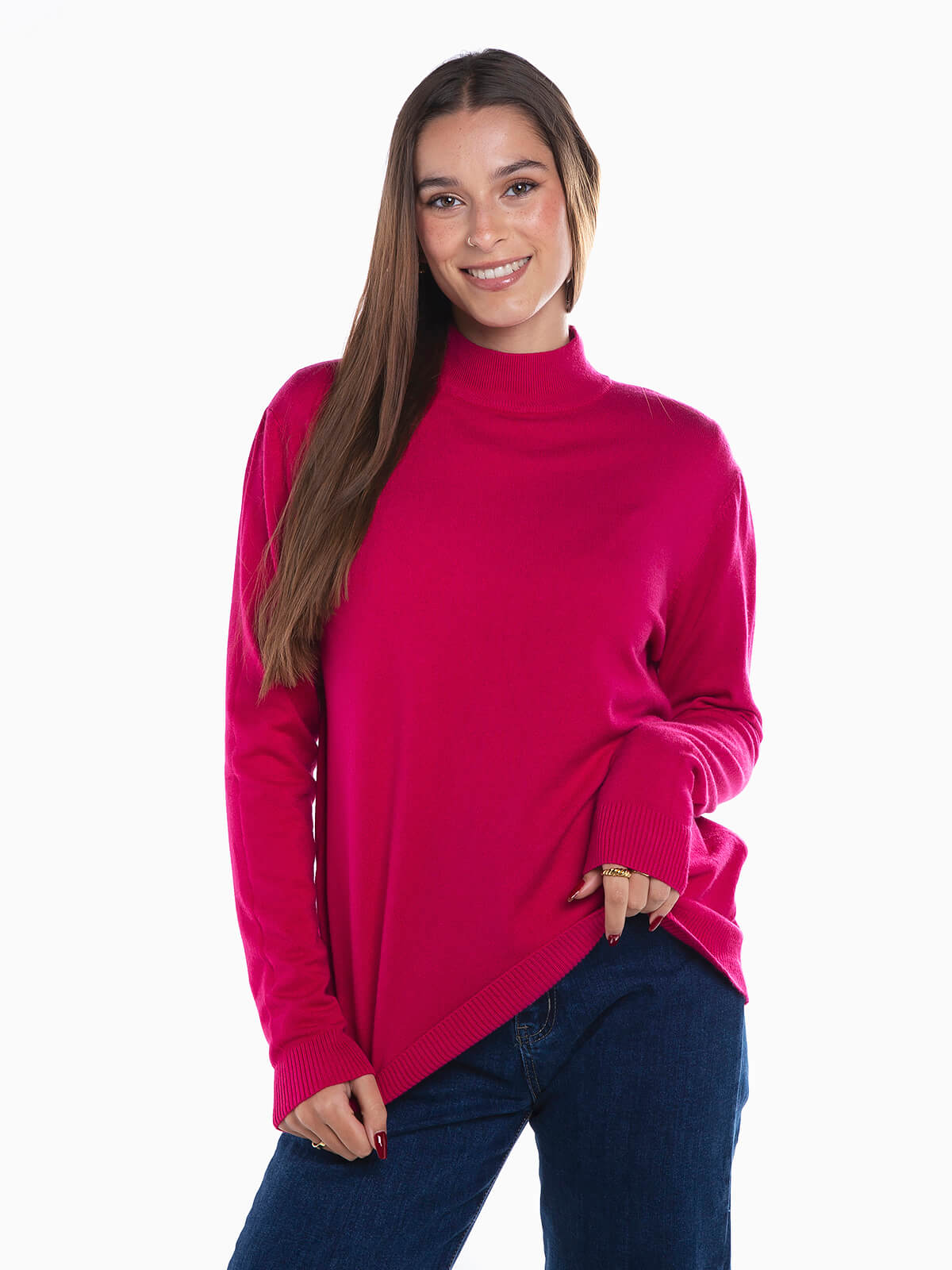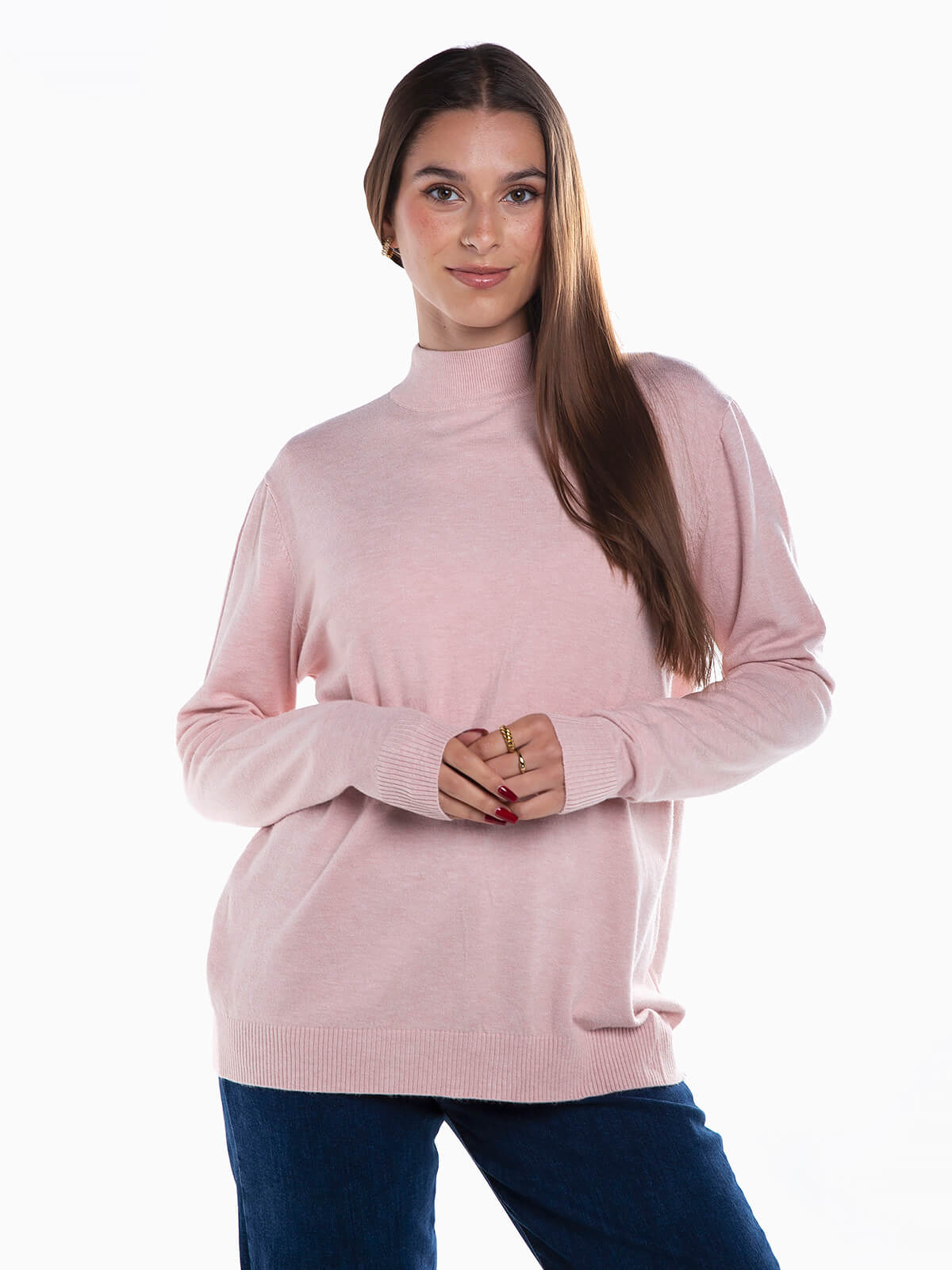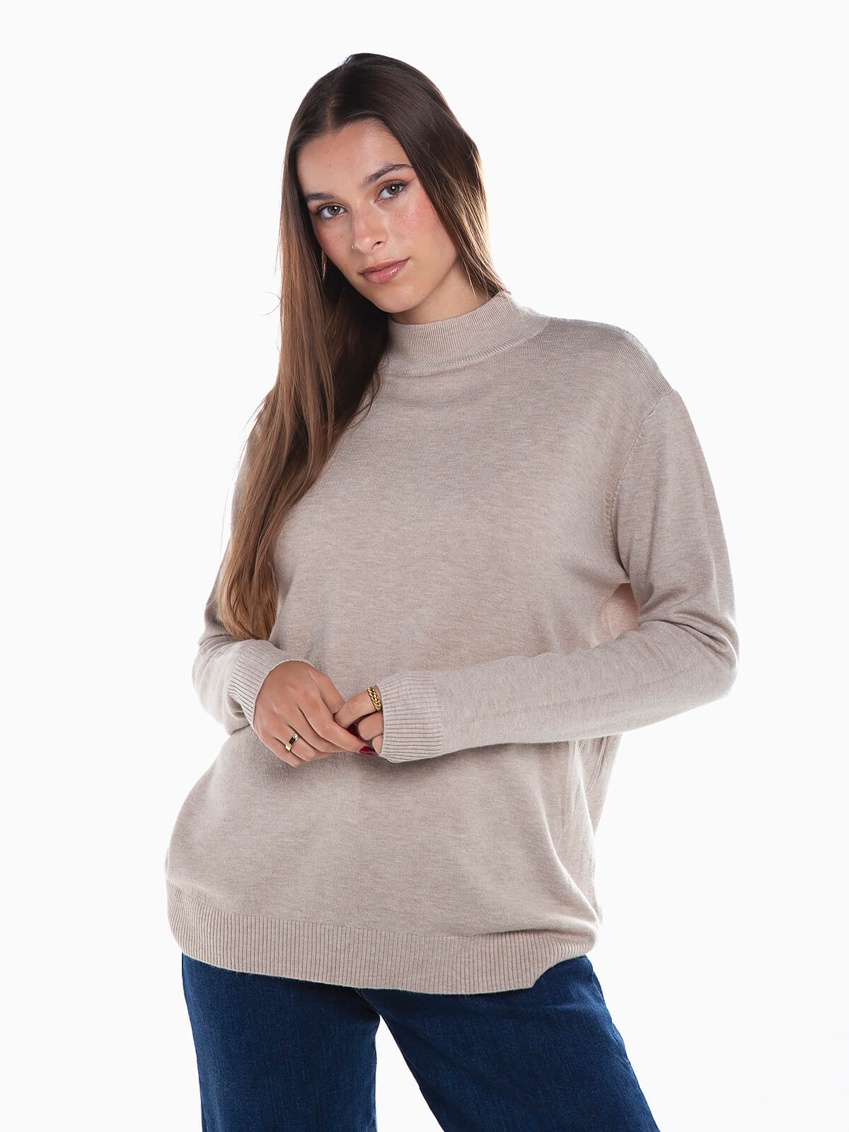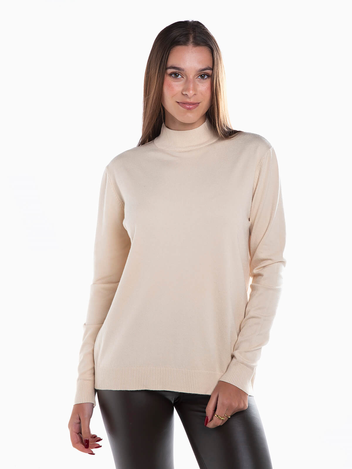 Camisola em malha com mistura de viscose para maior conforto. Camisola manga comprida com gola perkins.
