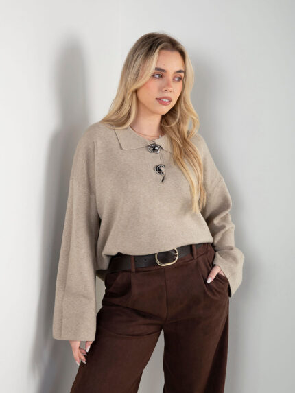 Camisola de malha para senhora, em modelo oversized, com padrão de losangos em contraste. Gola alta e manga comprida, ideal para looks de outono/inverno com um toque urbano e atual. Um modelo confortável, de inspiração preppy, perfeito para combinar com calças de alfaiataria, ganga ou leggings.